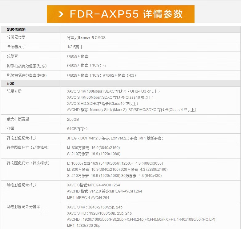 Sony (SONY) FDR-AXP55 HD 4K camera travel conference wedding live broadcast AXP35AX30 camera AXP35 package one