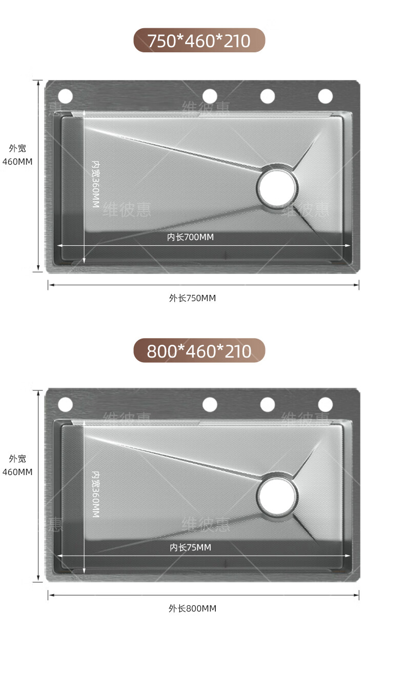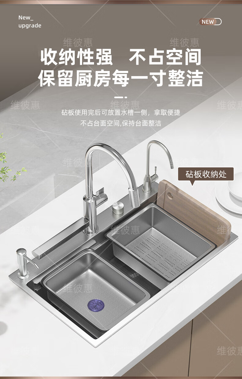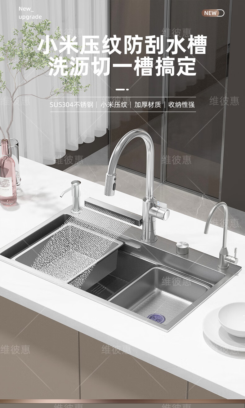 Webex thickened 5.0 uncoated kitchen sink SUS304 stainless steel large single-slot under-counter vegetable sink multi-functional Raindance simple package without faucet 60*46