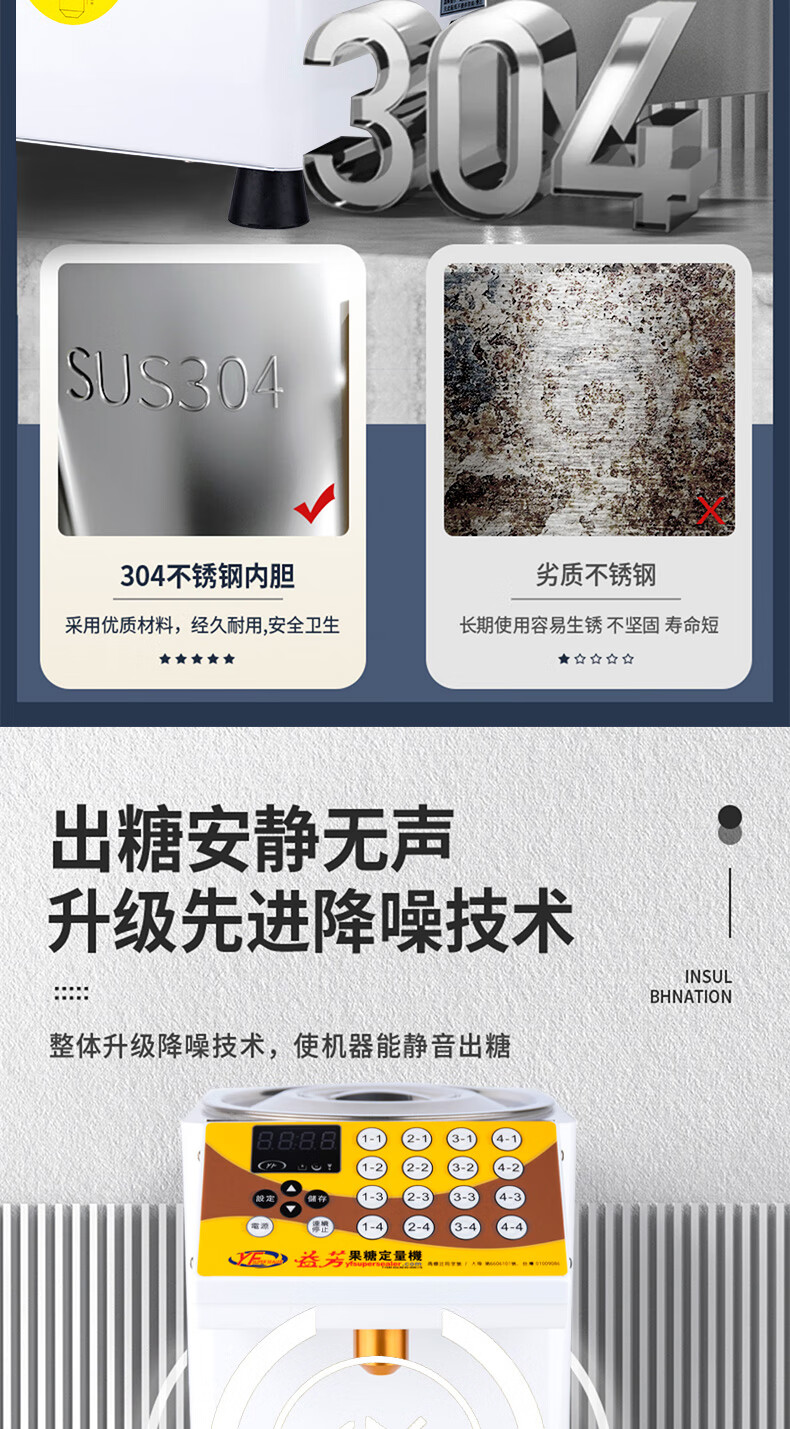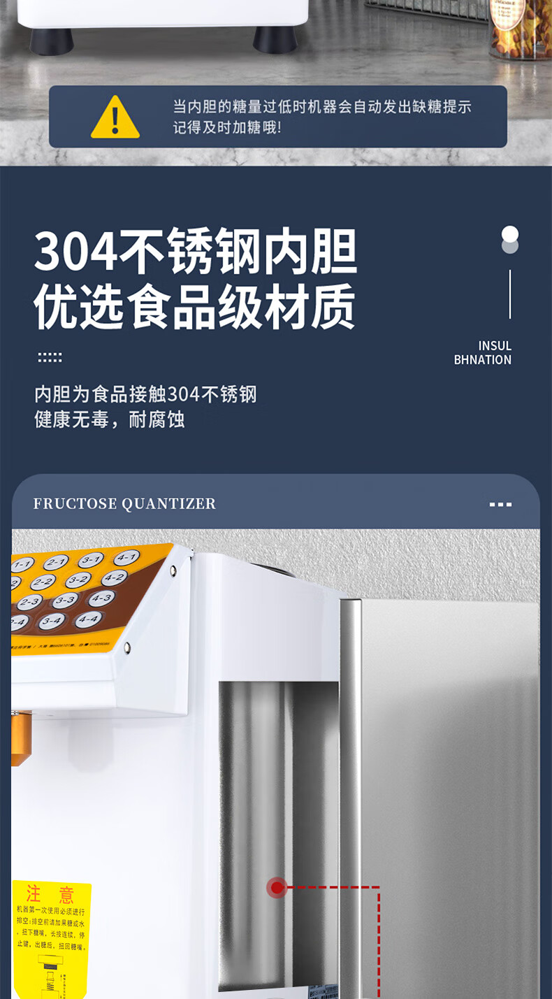 Yifang fructose machine commercial milk tea shop special equipment microcomputer automatic fructose machine 16 keys white pure copper sugar spout 304 stainless steel barrel