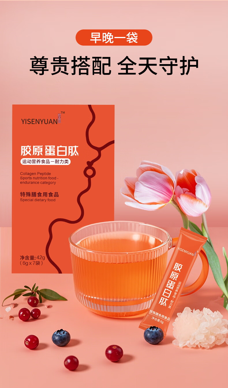 Yisenyuan Collagen Peptide Powder Bird's Nest Niacinamide Cranberry Powder Small Molecular Peptide Women's Skin Nutrition Oral New Taste 1 Bag Get 1 Bag Free 2 Bags in Hand