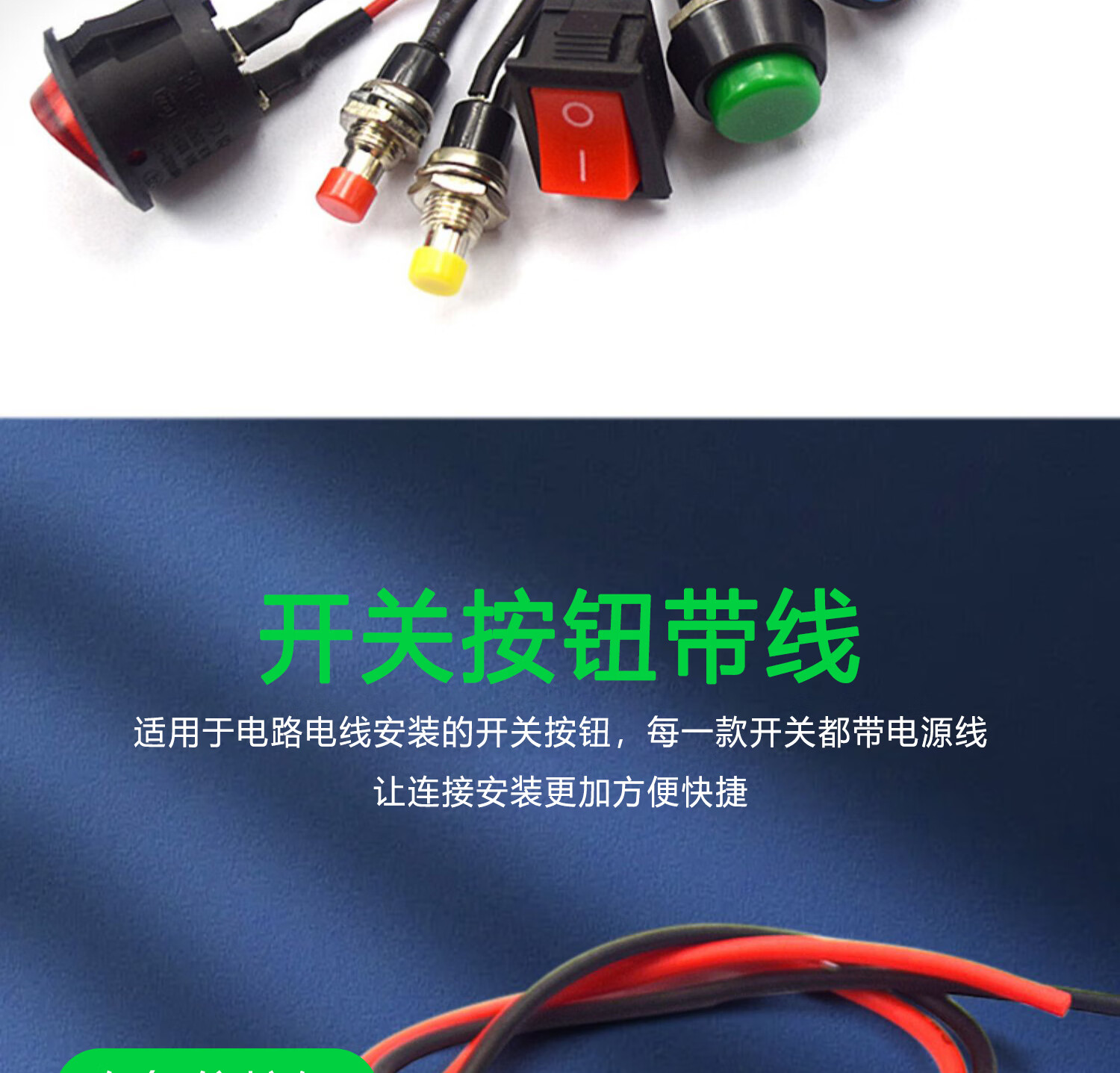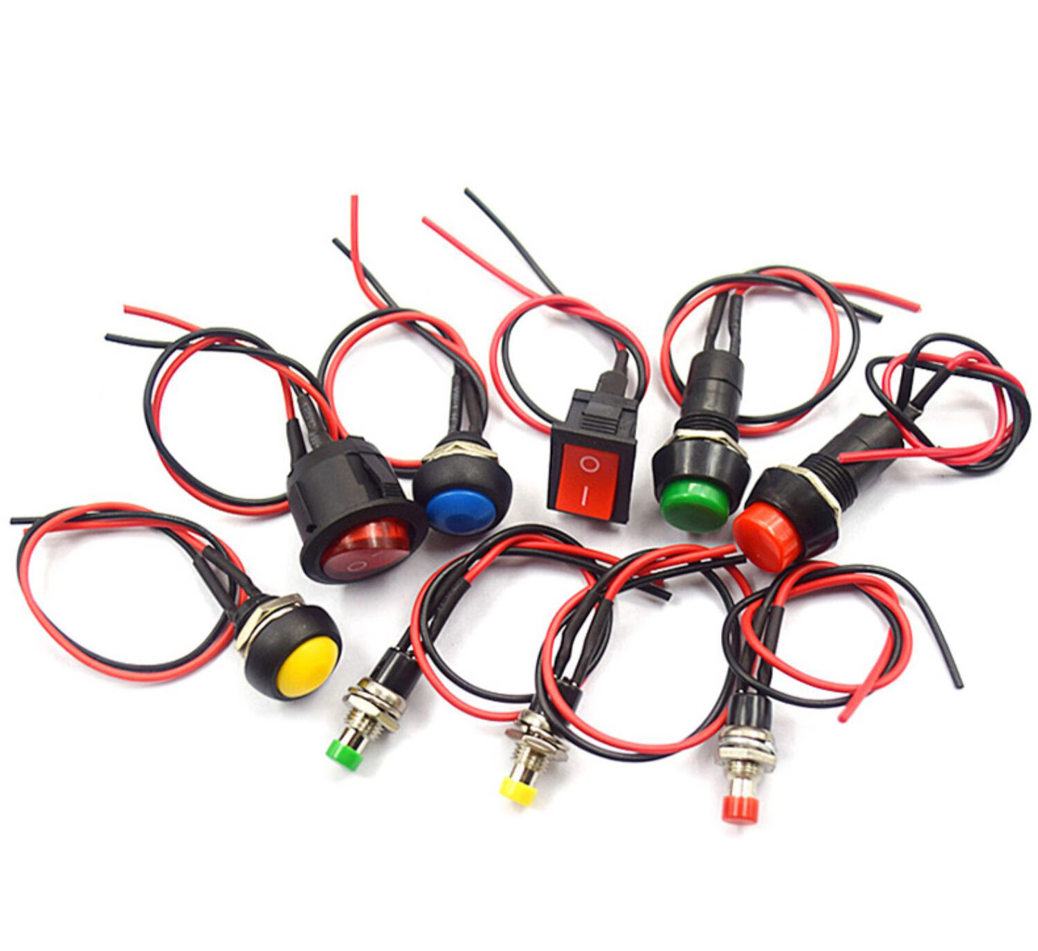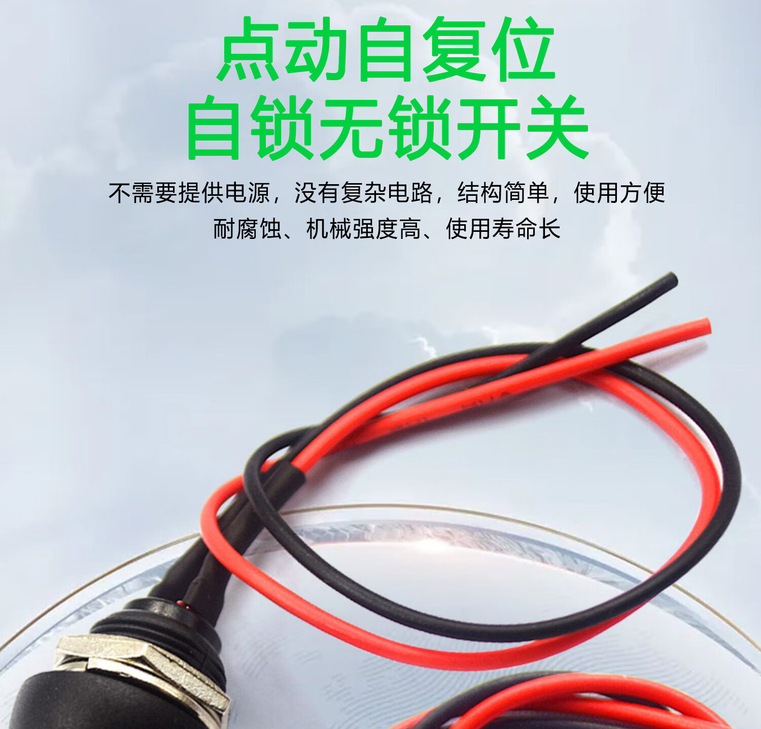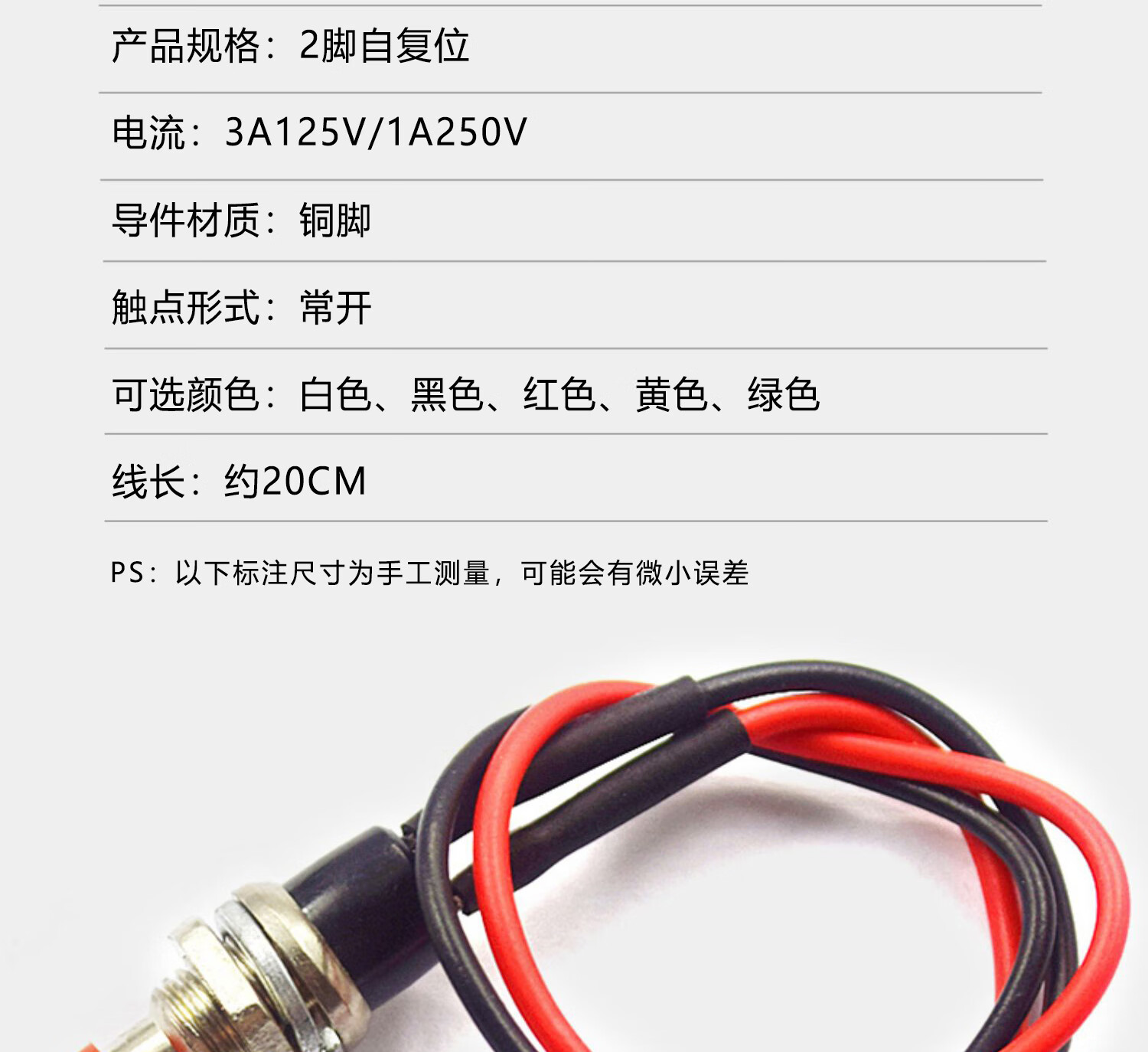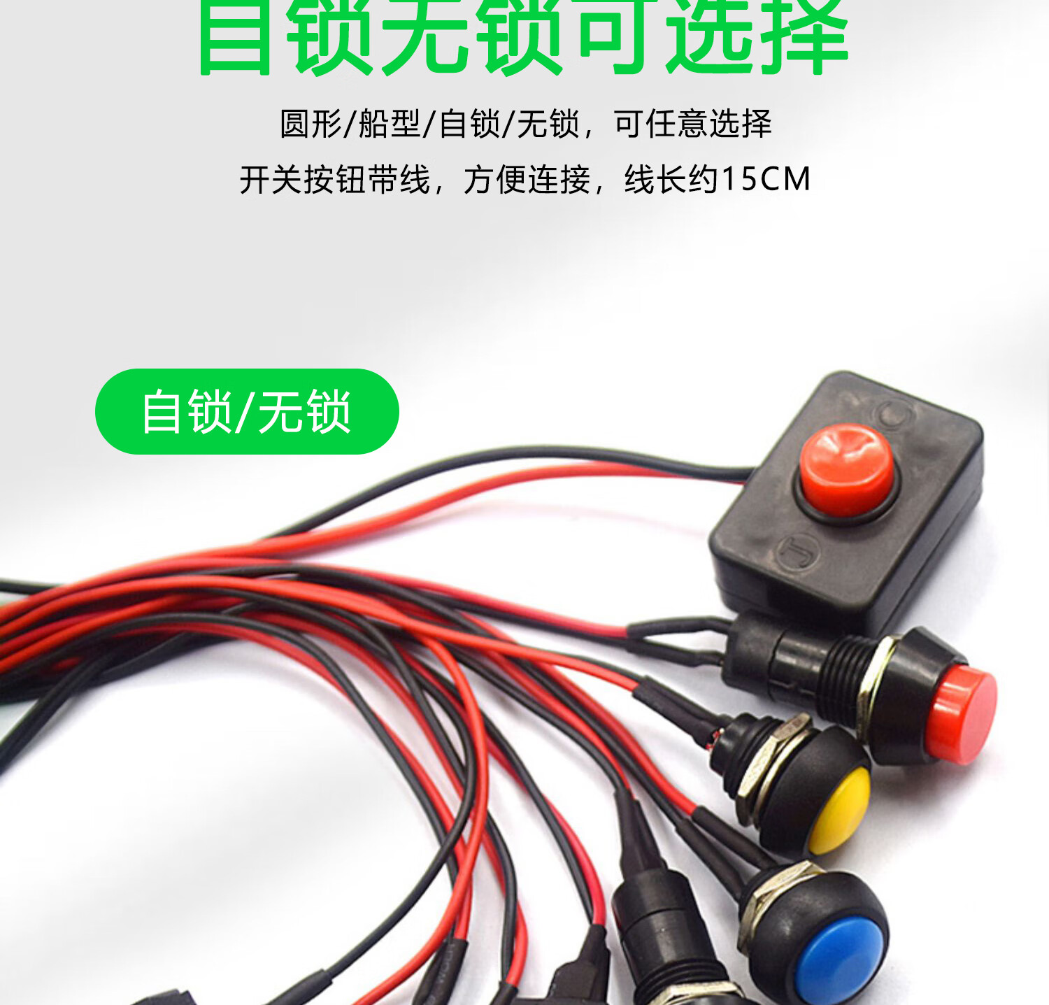 Switch button, small switch, small button, car self-locking, lock-free, self-resetting, mini round, micro-ship type with cable, round unblocked belt cable (1 piece), no specification