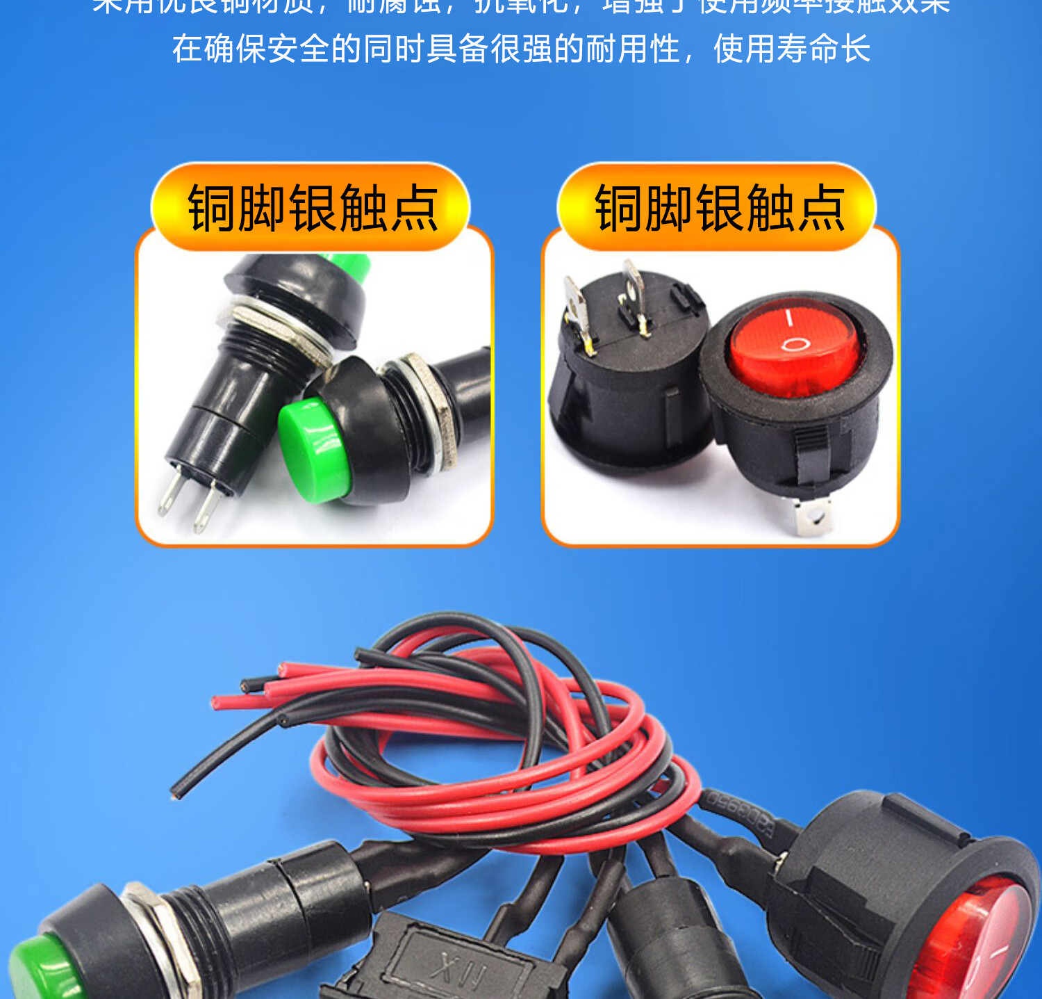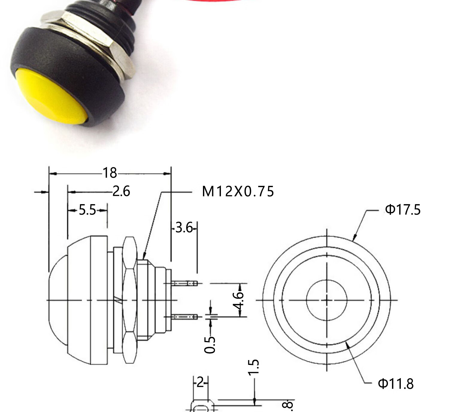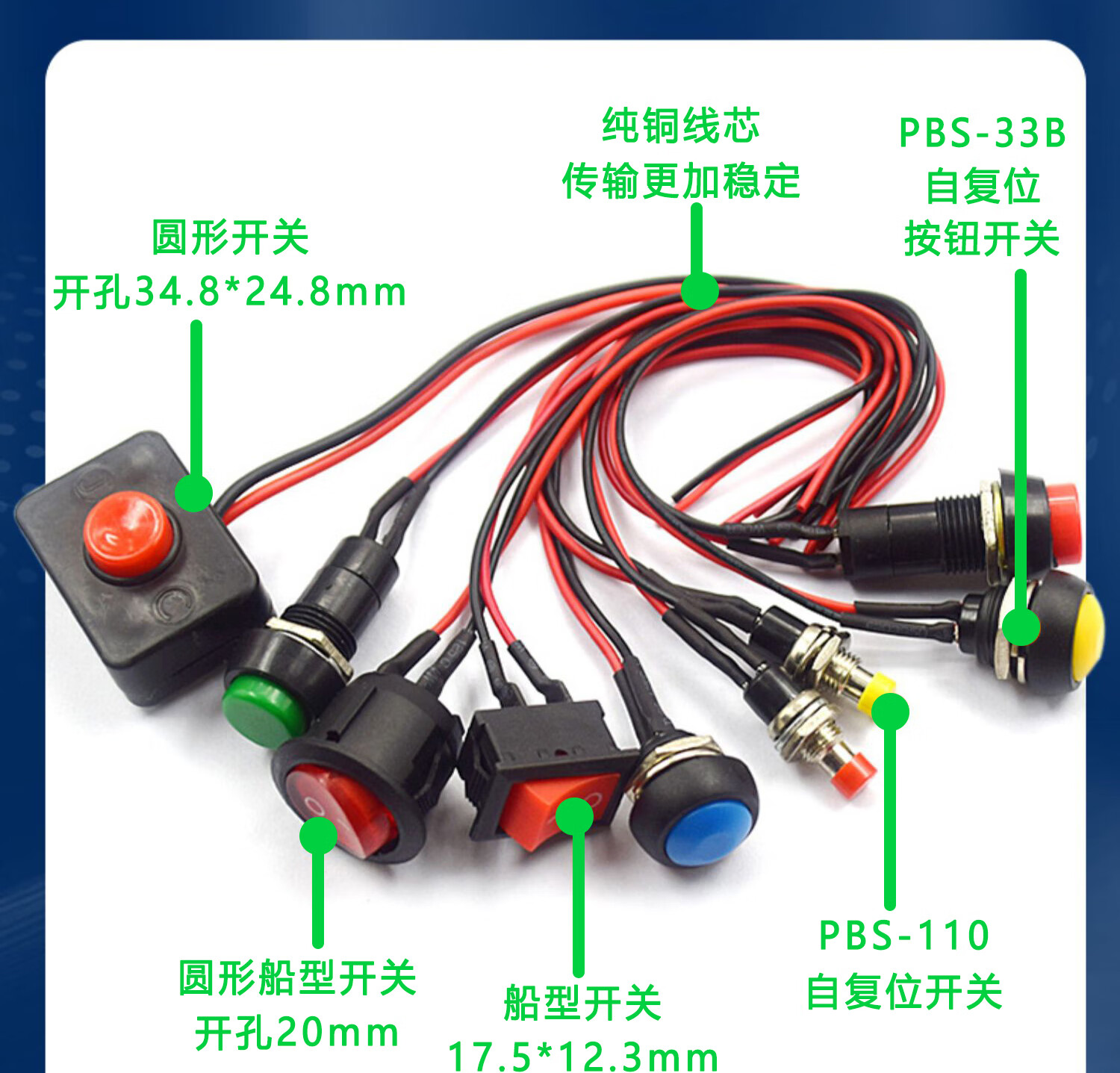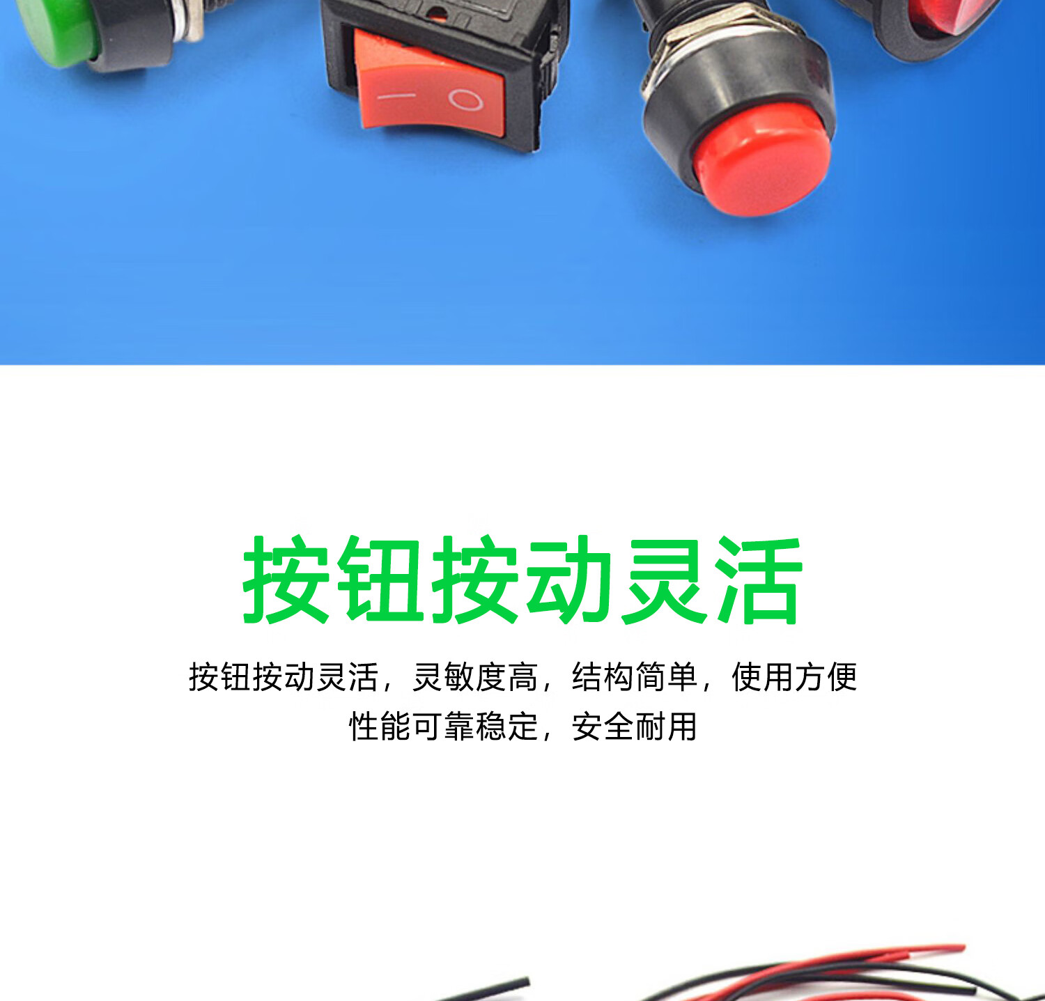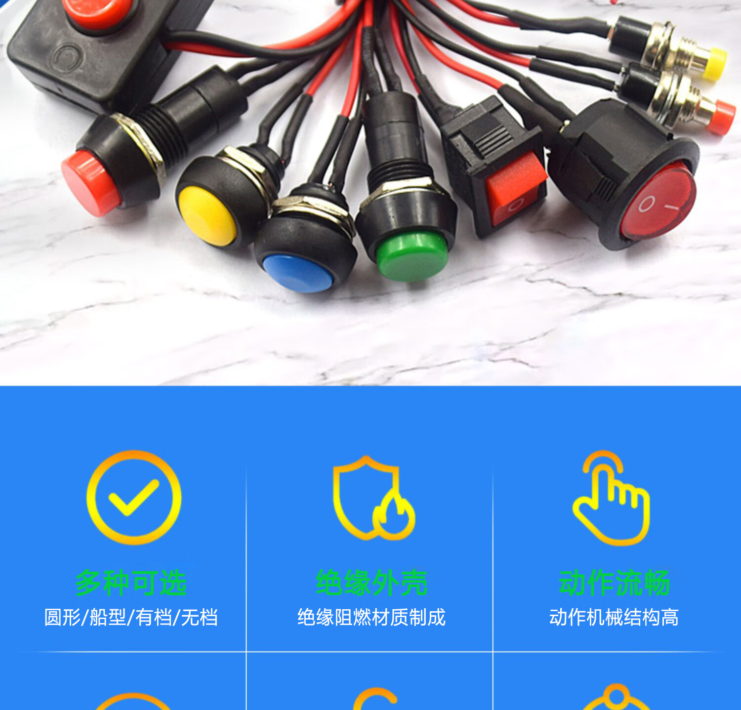 Switch button, small switch, small button, car self-locking, lock-free, self-resetting, mini round, micro-ship type with cable, round unblocked belt cable (1 piece), no specification