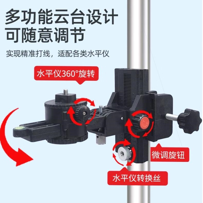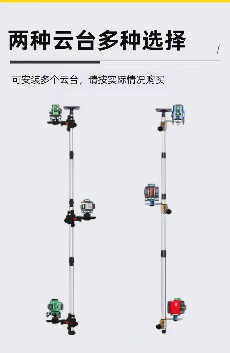 XMSJ infrared level bracket telescopic rod lifting support rod adjustable fine-tuning pan-tilt woodworking ceiling lifting rod! Double lock 3.5 meters thickened rod + iron cloud