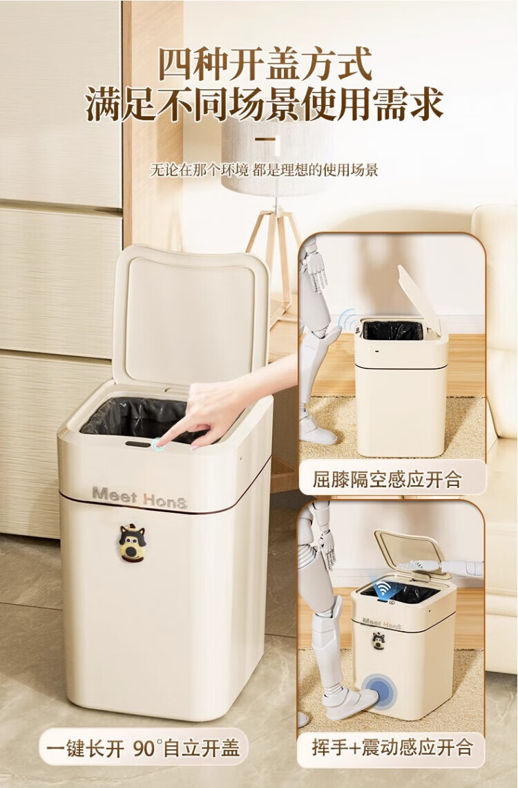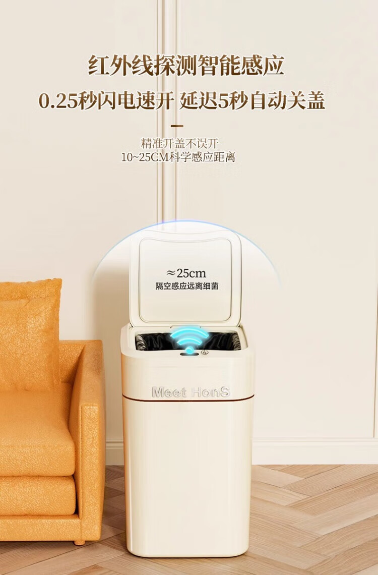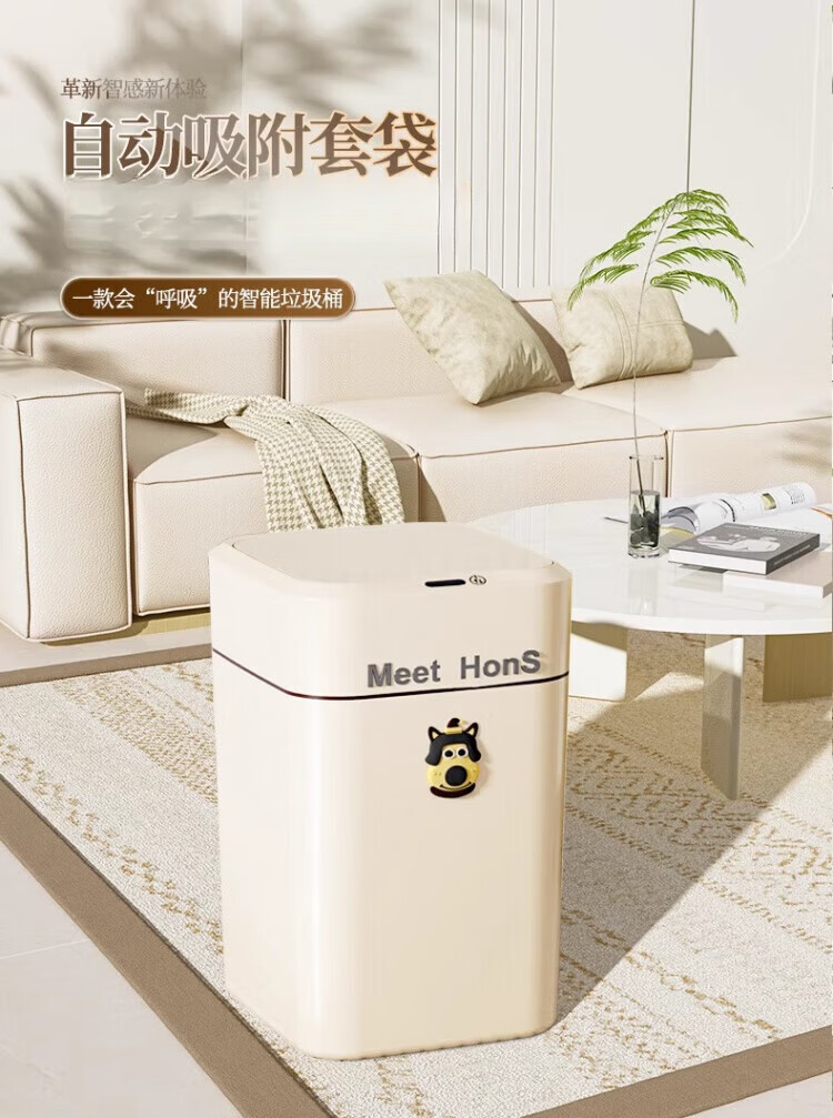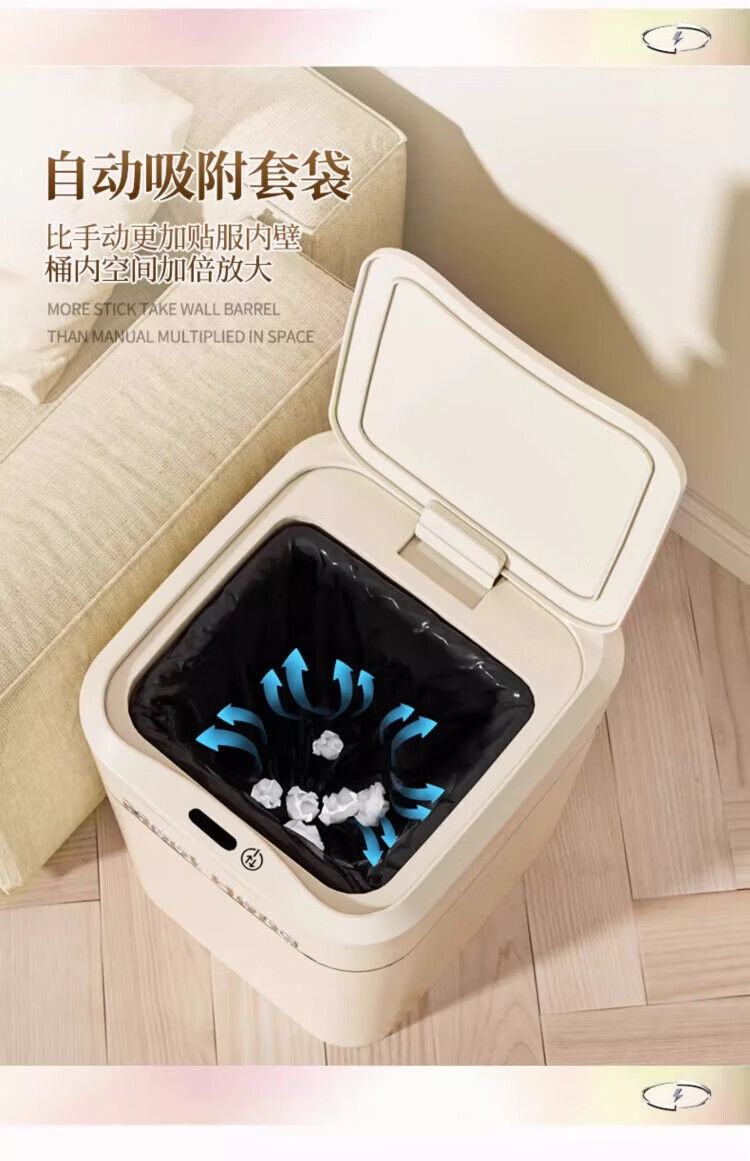 WCZ German Smart Trash Can Home Living Room Induction Toilet Automatic Packing Bag Adsorption Changing Packing Suction Bag Lithium Battery Charging Blue Light +4 Mode +2 Roll Bags 20L