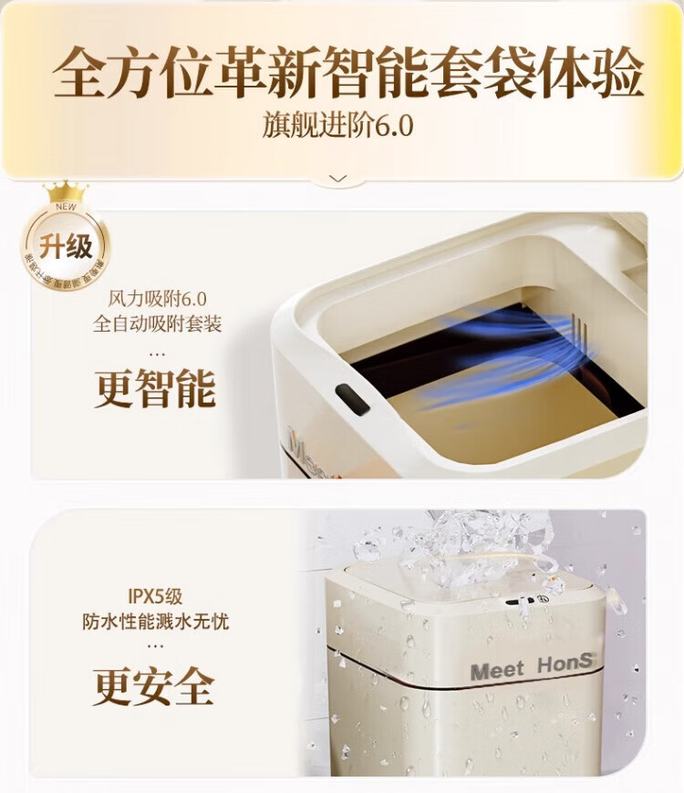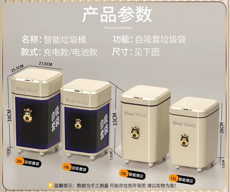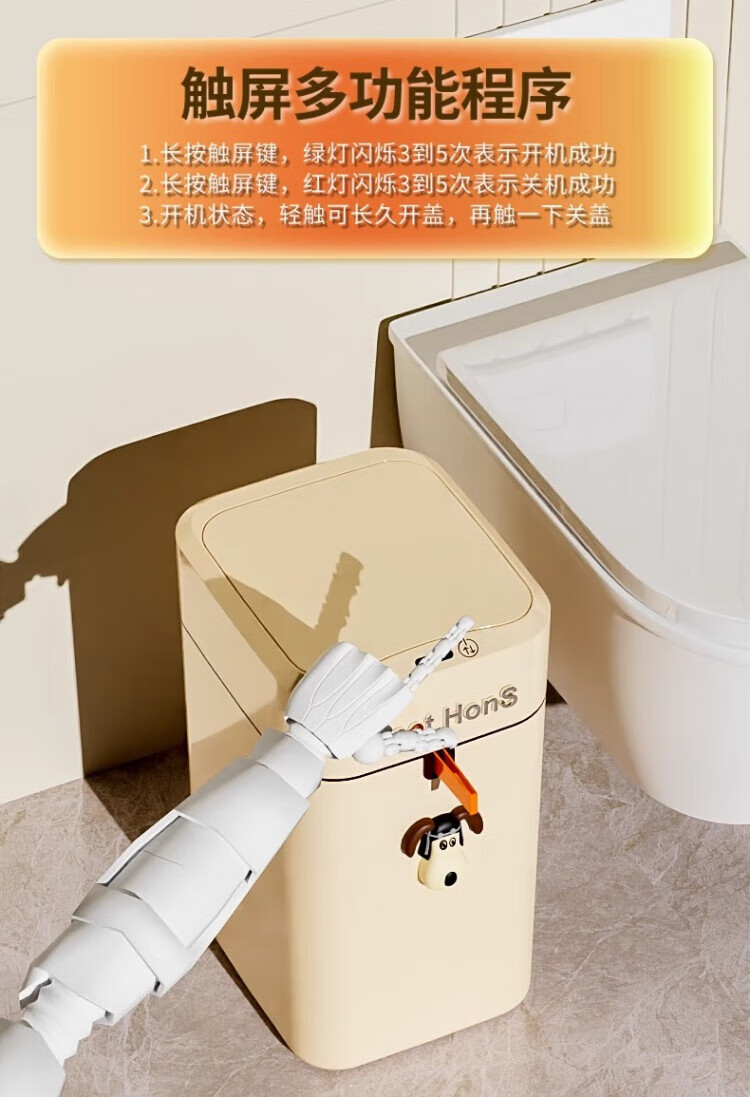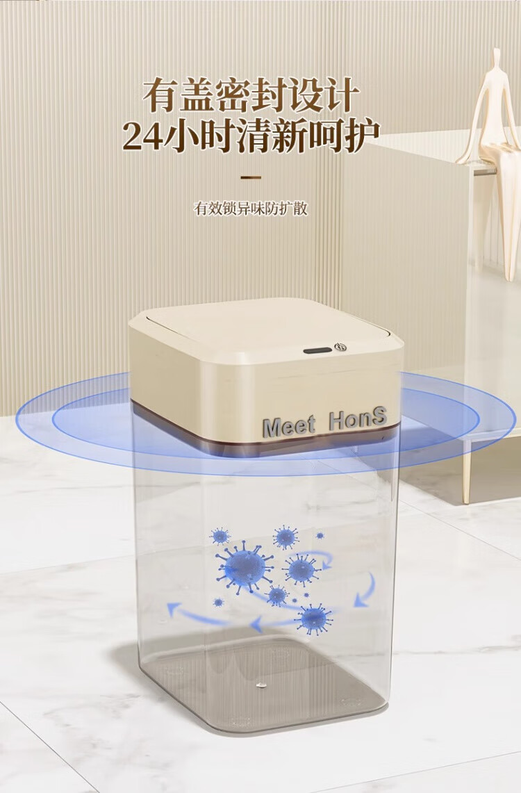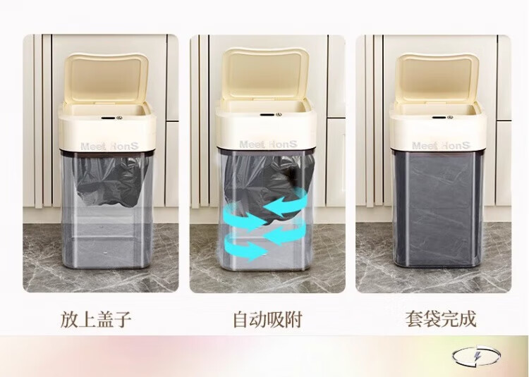 WCZ German Smart Trash Can Home Living Room Induction Toilet Automatic Packing Bag Adsorption Changing Packing Suction Bag Lithium Battery Charging Blue Light +4 Mode +2 Roll Bags 20L