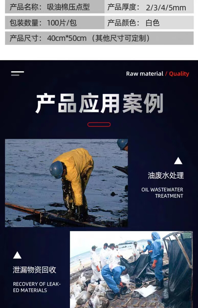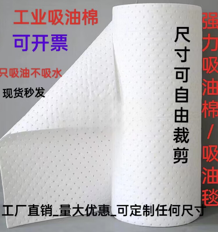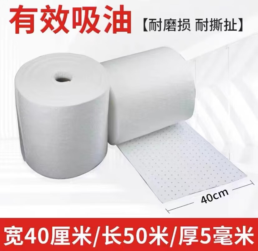 Composite pressure point oil-absorbing cotton industrial oil-absorbing cotton sheet 5mm strong adsorption PP oil-absorbing felt roll for gas station water surface width 80 cm * length 50 meters * thickness 5mm