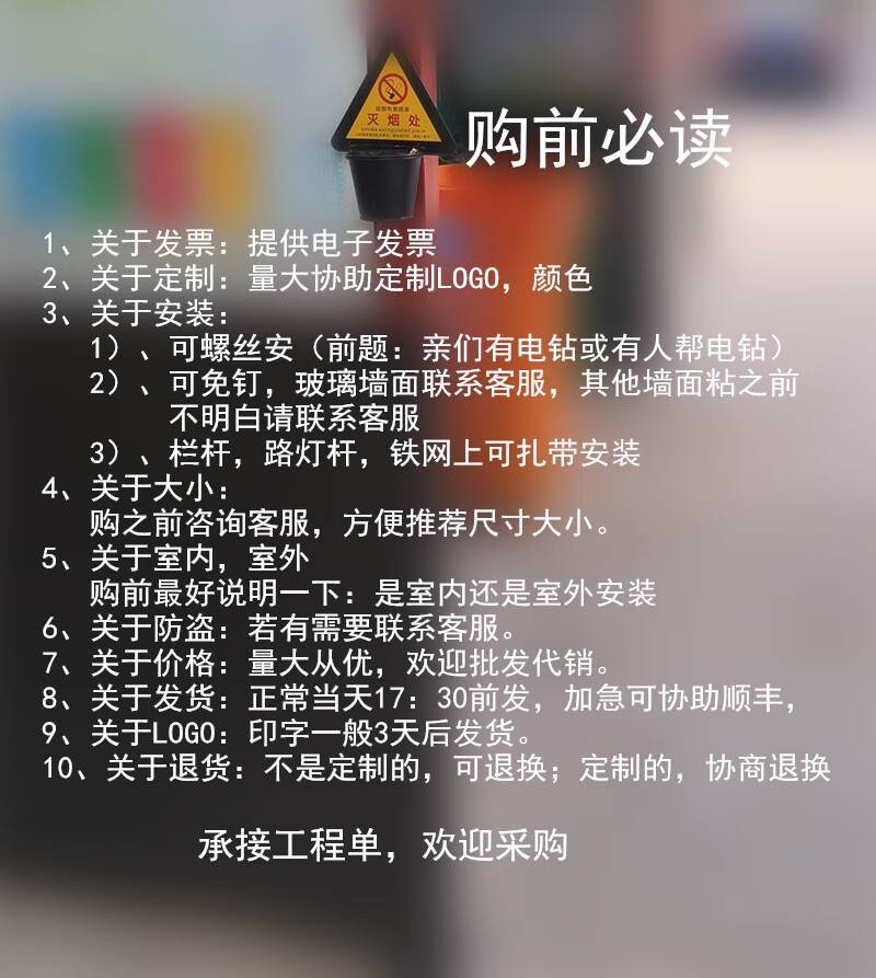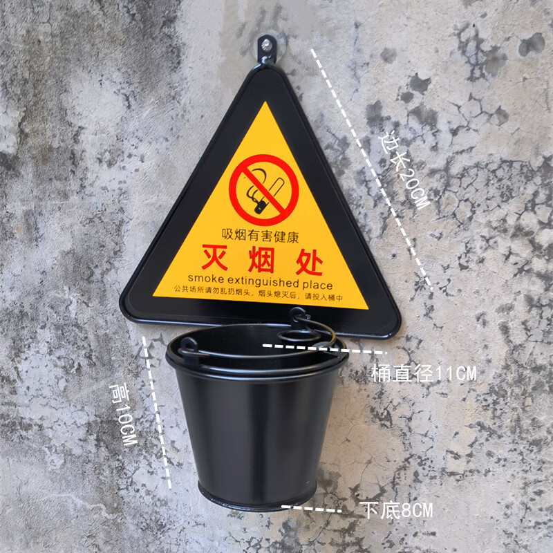 Wall-mounted ashtray construction site large cigarette butt bucket outdoor smoking area smoke extinguishing column public wall nail-free cigarette extinguishing bucket yellow extra large yellow card (bucket 20)
