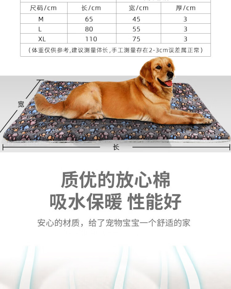 Dimple Dog Mat Pet Cat Mat Blanket Cat Sleeping Mat Warm Nest Dog Mat Winter Thickened Cat Mat Sleeping Mat * L size 80*55cm (milk white footprints) *