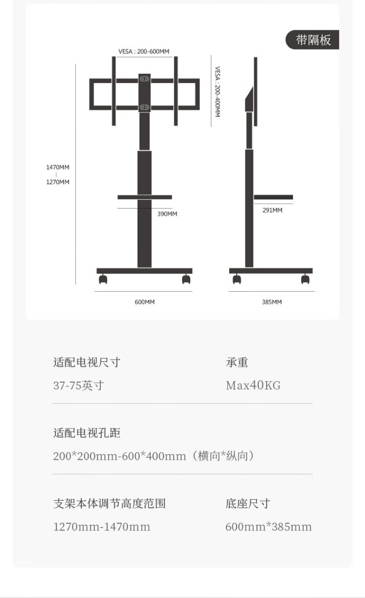 FITUEYES mobile floor-standing TV stand 43/55/65/75 inches Sony Xiaomi Hisense Huawei Skyworth TV universal TV hanging stand mobile TV simple version black 32-65 inches