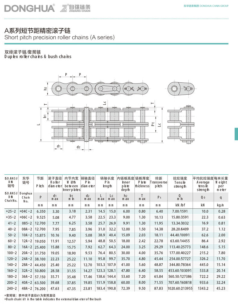 Ziqiang chain box-packed Donghua 08B10A12A16A20A24A28A transmission single and double row industrial roller chain Ziqiang chain double row 16A-2-60L