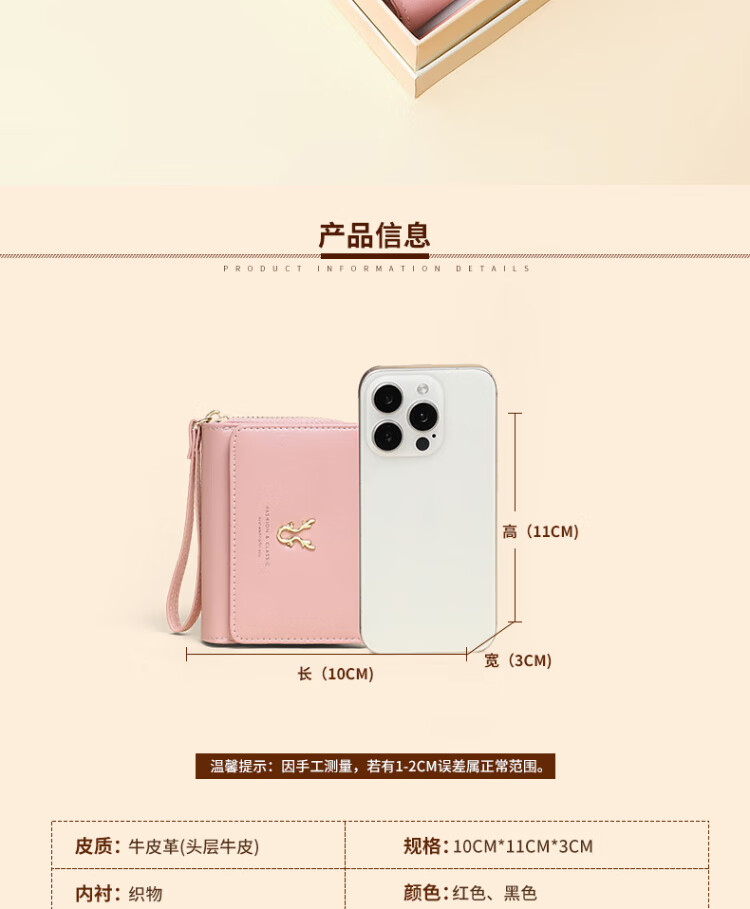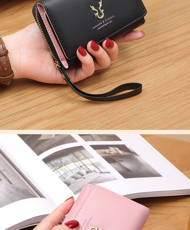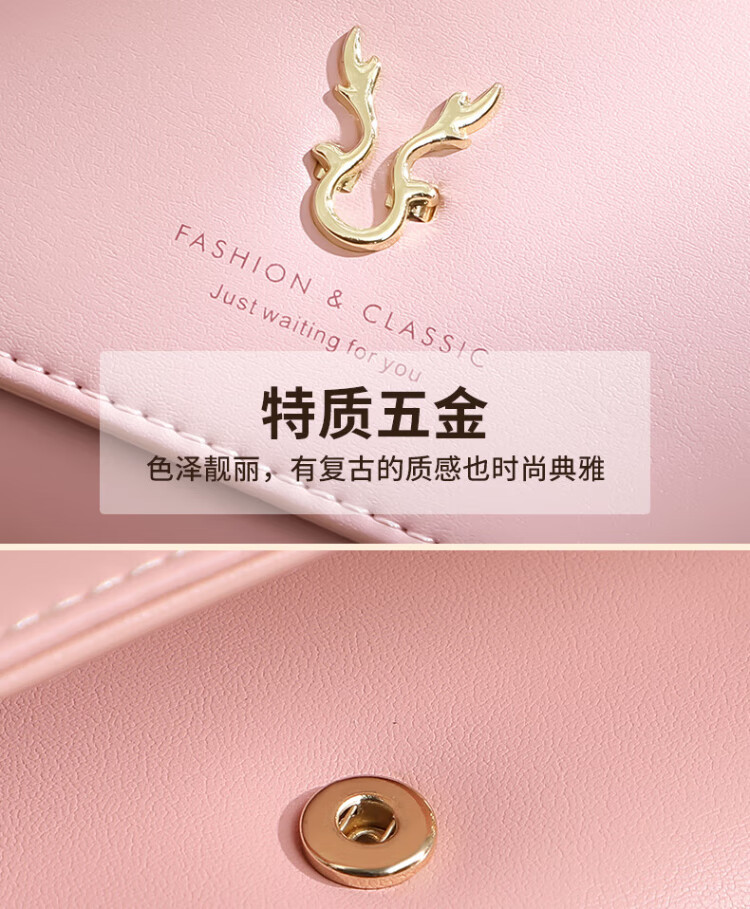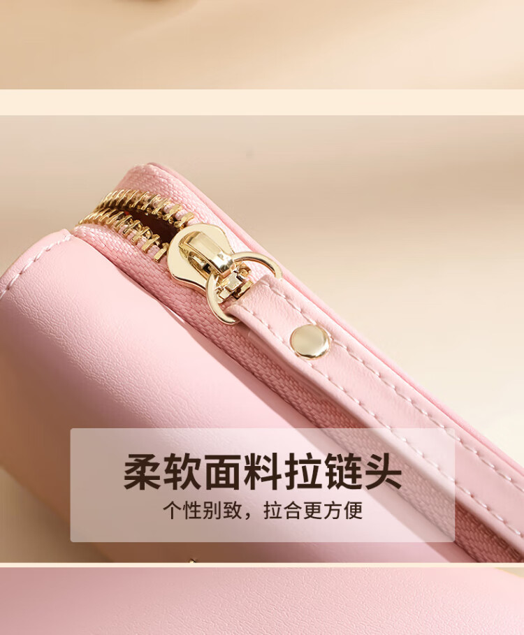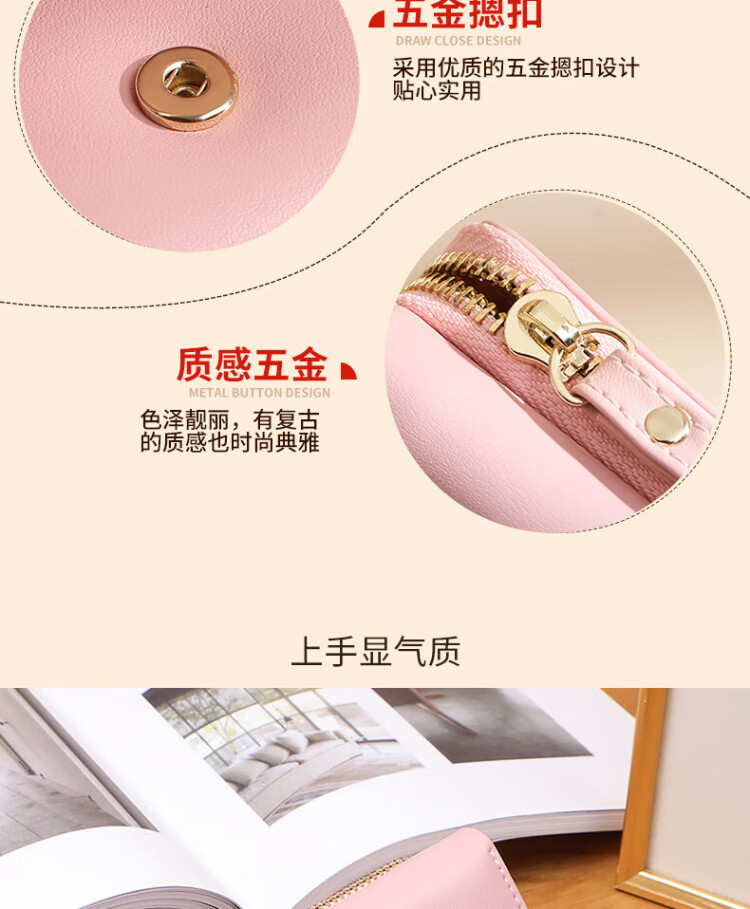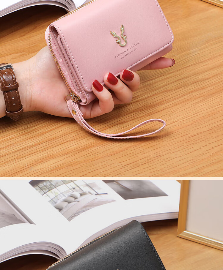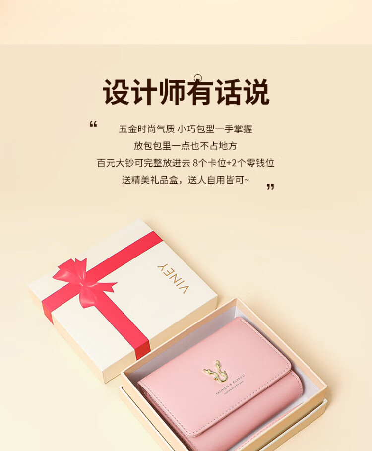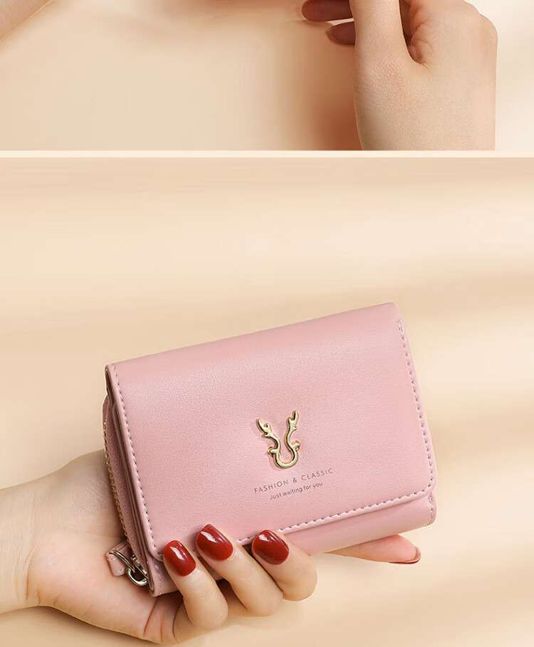 Viney cowhide short wallet female mini zipper coin purse folding wallet multi-card slot large capacity student wallet card bag pink