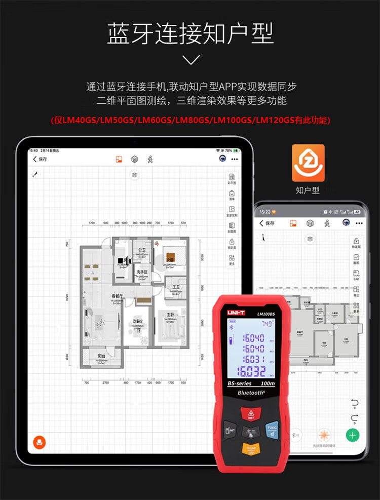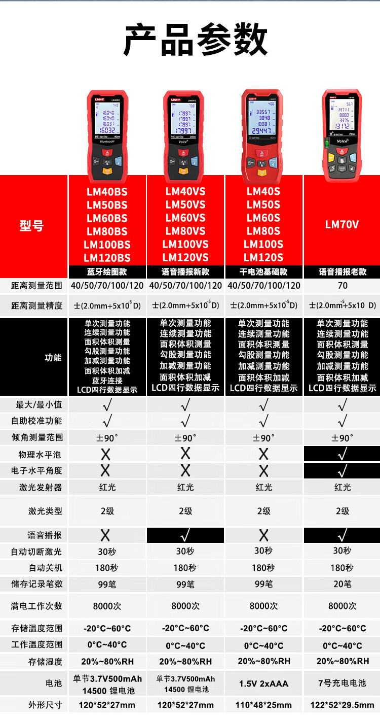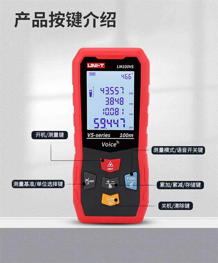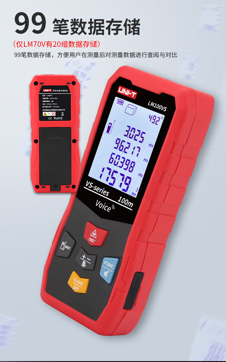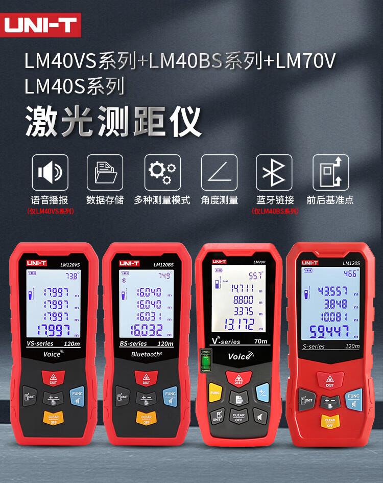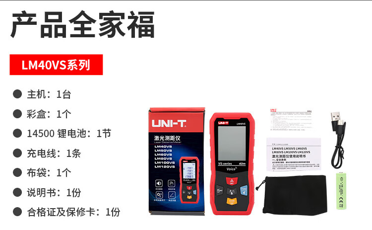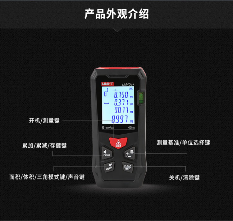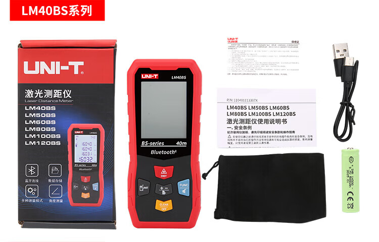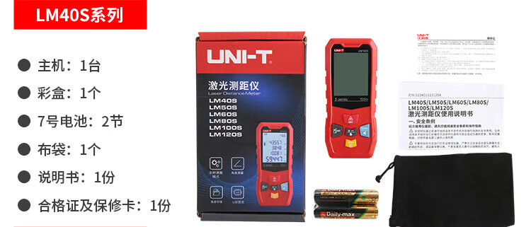 UNI-T laser range finder, high-precision infrared electronic ruler, indoor room measuring instrument, handheld measuring tool, house inspector LM40S (dry battery 40 meters/storage 99 sets)