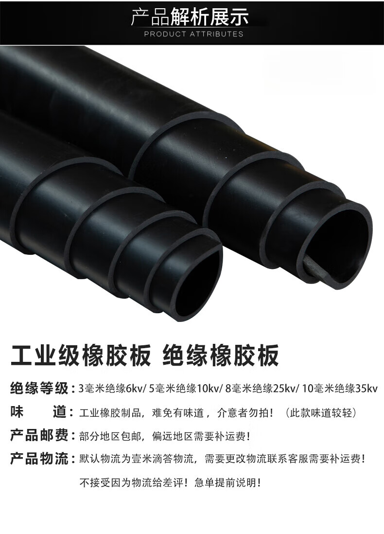 FHJQB insulating rubber pad rubber pad shock-absorbing rubber plate wear-resistant anti-slip pad customized for high-voltage power distribution room black rubber specifications customized non-returnable length
