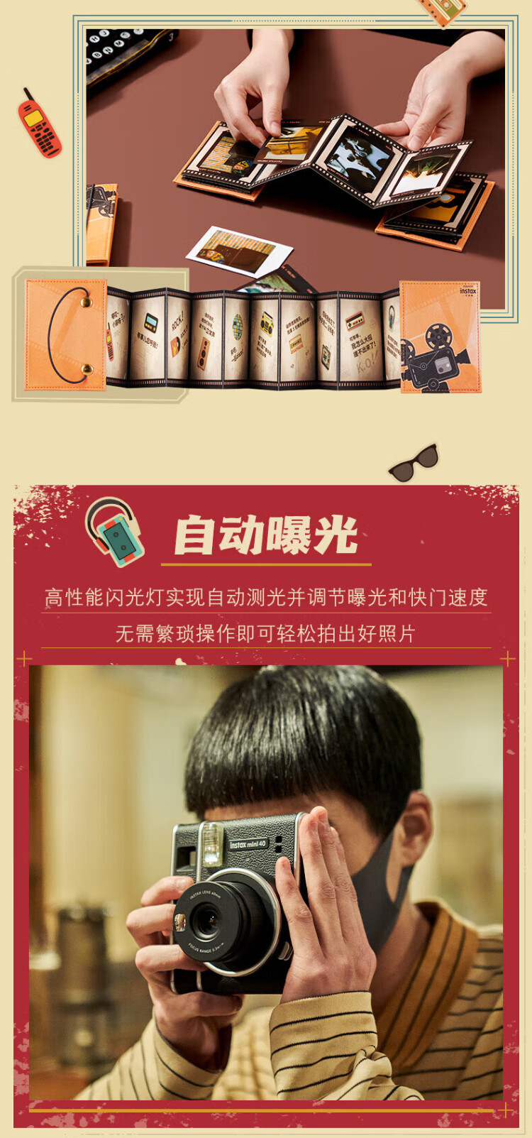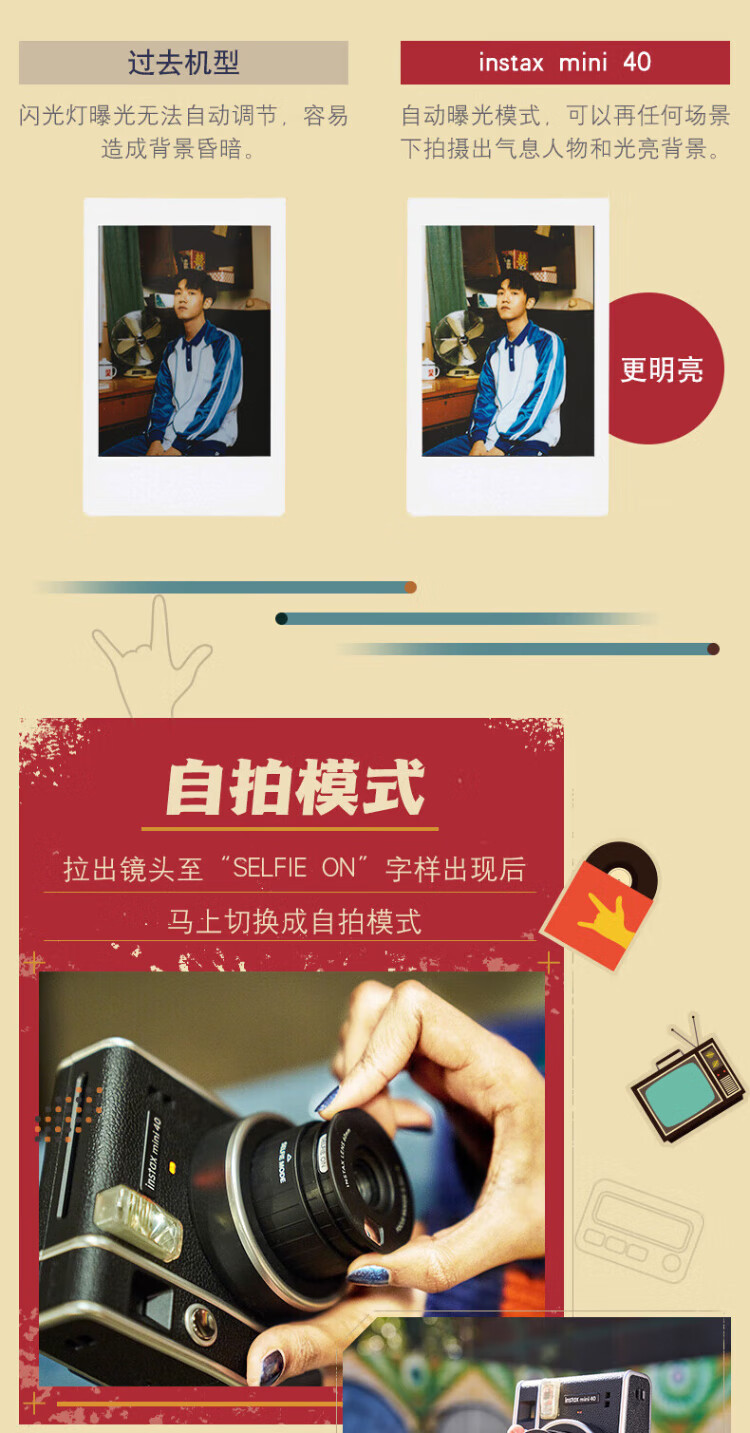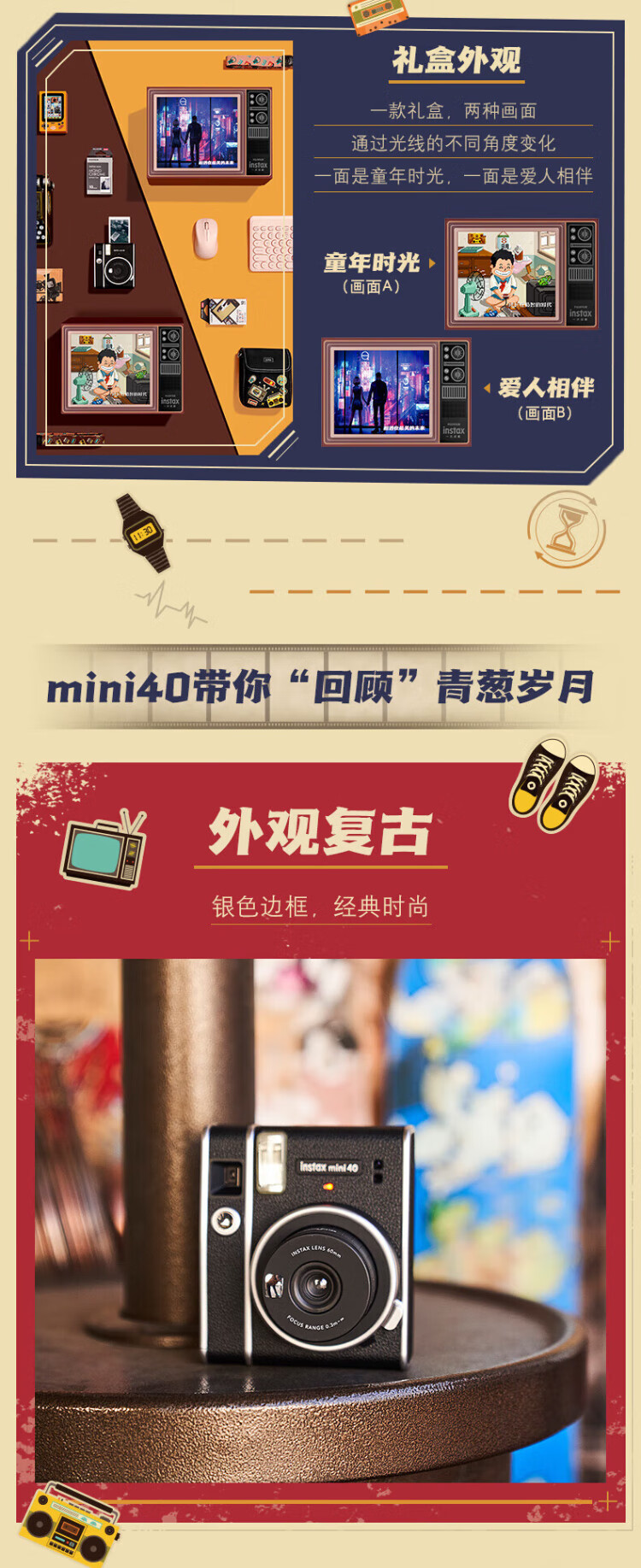 Polaroid New Year's gift mini40 one-time imaging camera Polaroid mini40 popular gift box student boyfriend and girlfriend birthday anniversary Valentine's Day gift mini40 gift box version + 20 pieces of photo paper
