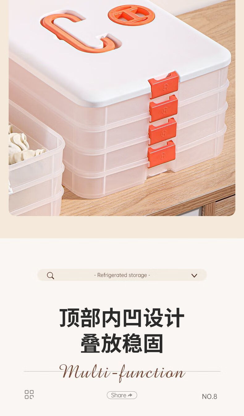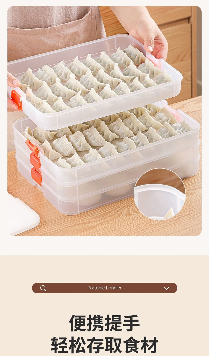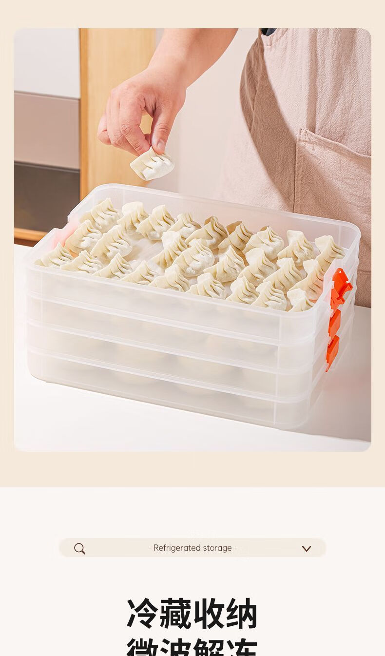 FANCYCHIC Dumpling Box Special Frozen Dumpling Box Refrigerator Storage Box Household Large Capacity Quick Frozen Chaos Frozen Fresh-keeping Box Multi-layer Snow White Material (Thick Sealed Fresh-Sealing) (1 layer zero cover. Holds 32 dumplings