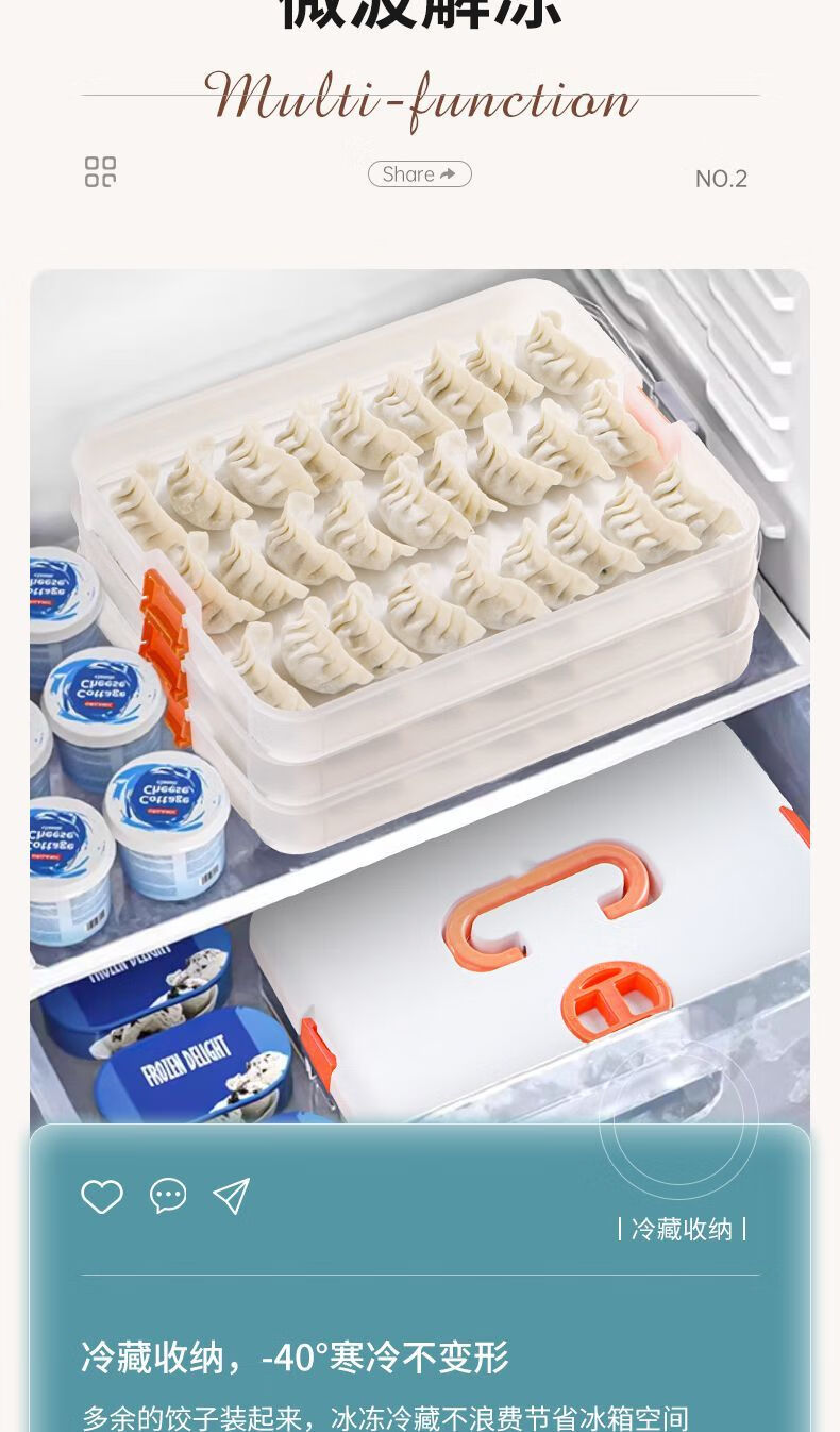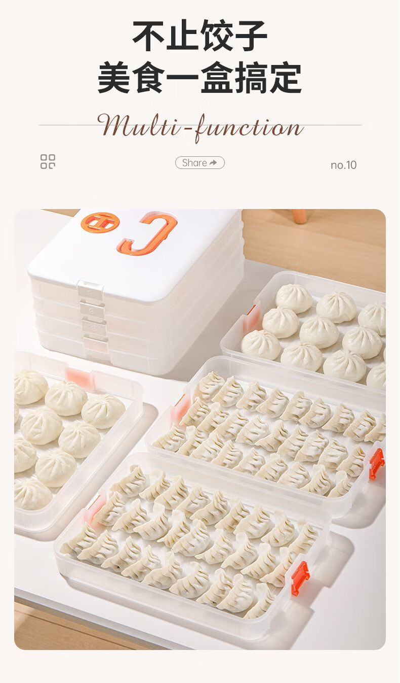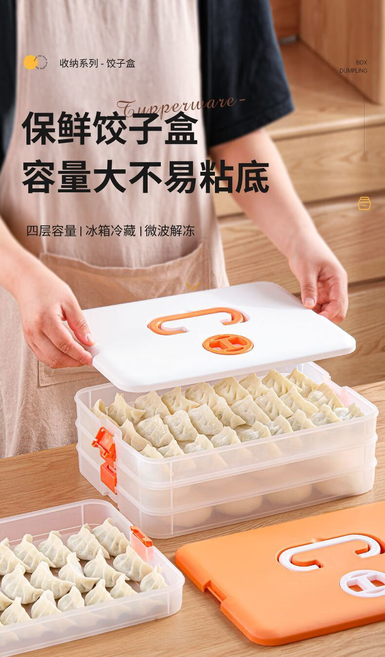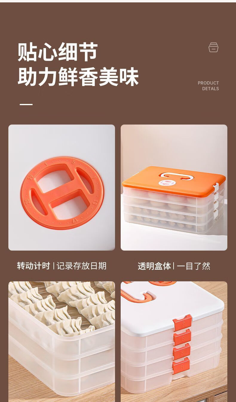 FANCYCHIC Dumpling Box Special Frozen Dumpling Box Refrigerator Storage Box Household Large Capacity Quick Frozen Chaos Frozen Fresh-keeping Box Multi-layer Snow White Material (Thick Sealed Fresh-Sealing) (1 layer zero cover. Holds 32 dumplings