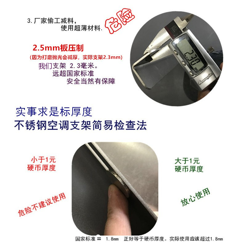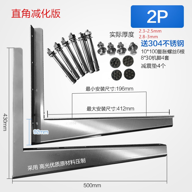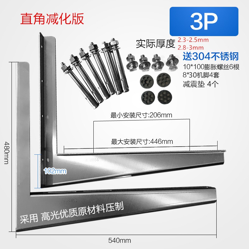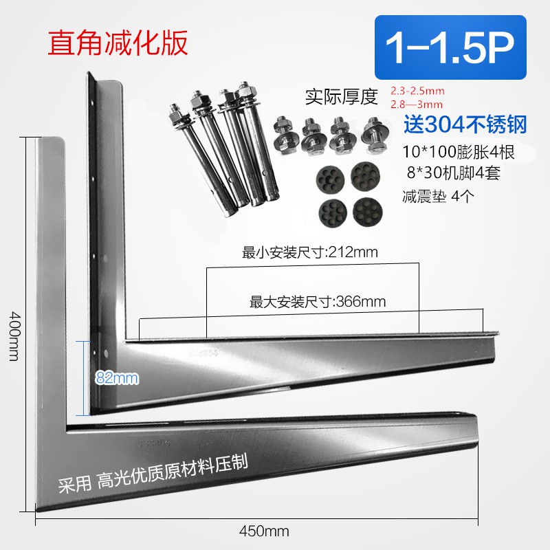 Beijing Times 304 stainless steel air conditioning bracket Midea Gree Haier large 1.5p 2 horses 3P overall universal outer frame thickened 2P2.5mm bracket + M10 expansion bag 304 right angle