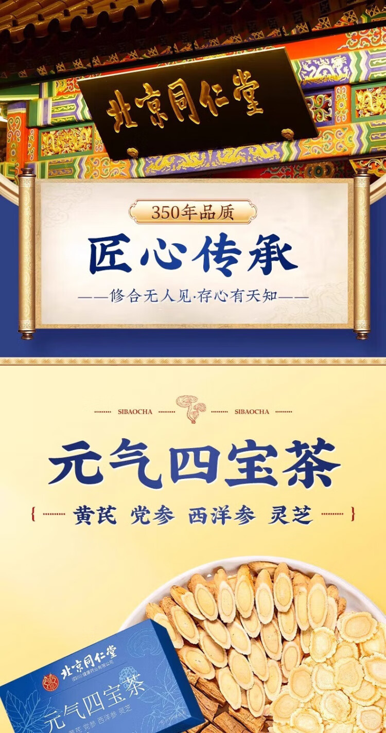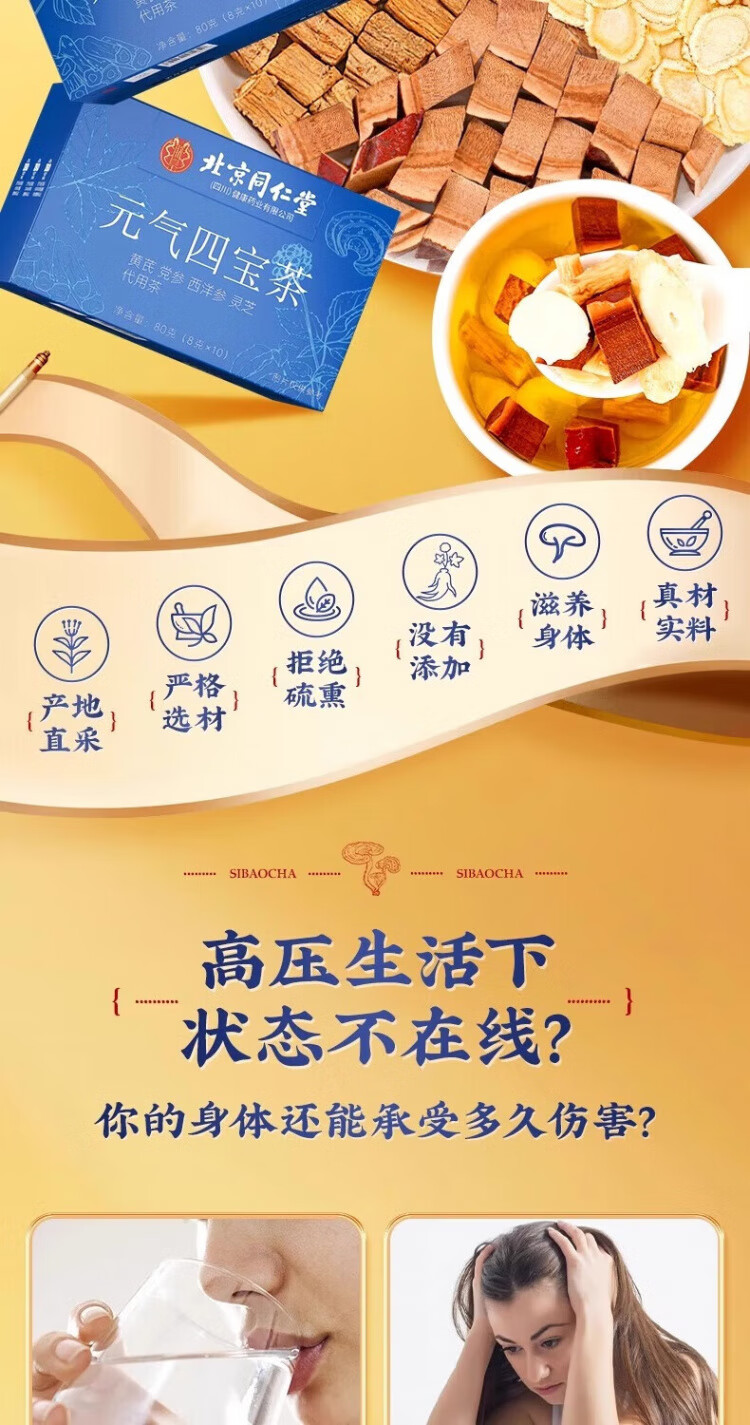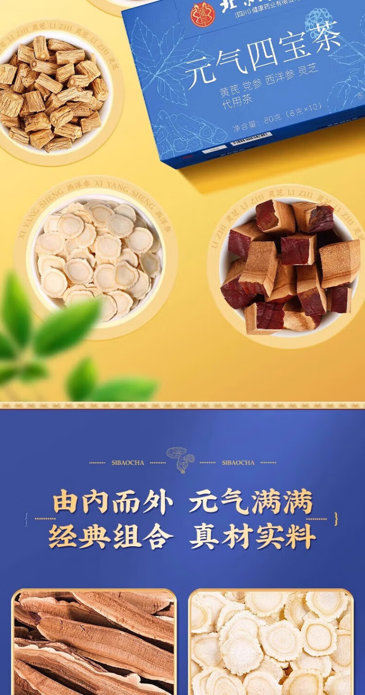 Beijing Tongrentang Vitality Four Treasures Tea nourishes the kidneys and double ginseng Ganoderma lucidum vitality tea nourishes the liver and nourishes qi and blood tea aphrodisiac tea American ginseng men's special long-lasting hardness 1 pack 5g 60 packs standing pack
