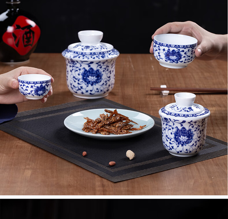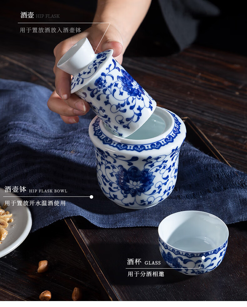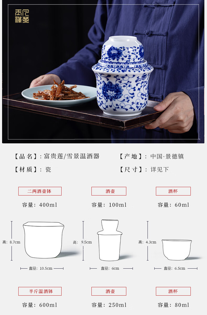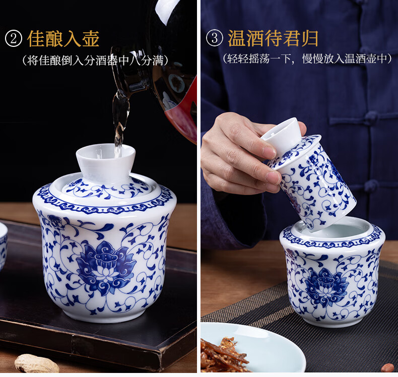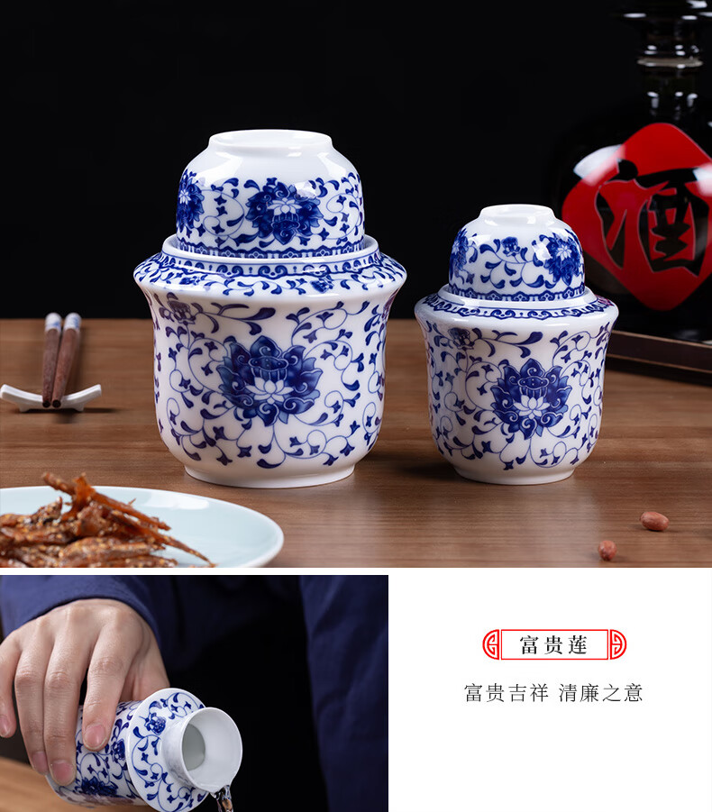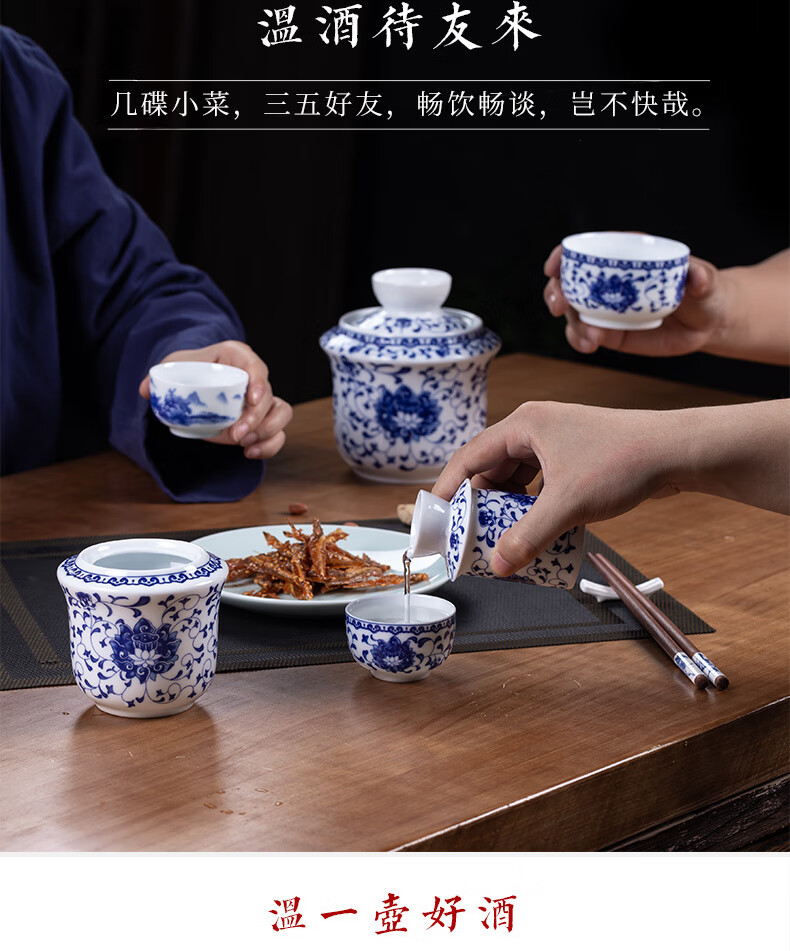 Jingdezhen Jingdezhen ceramic old-fashioned wine warmer household household hot wine pot 2 liang white wine yellow wine wine warmer set Fuguilian wine kettle 2 liang + 1 wine glass