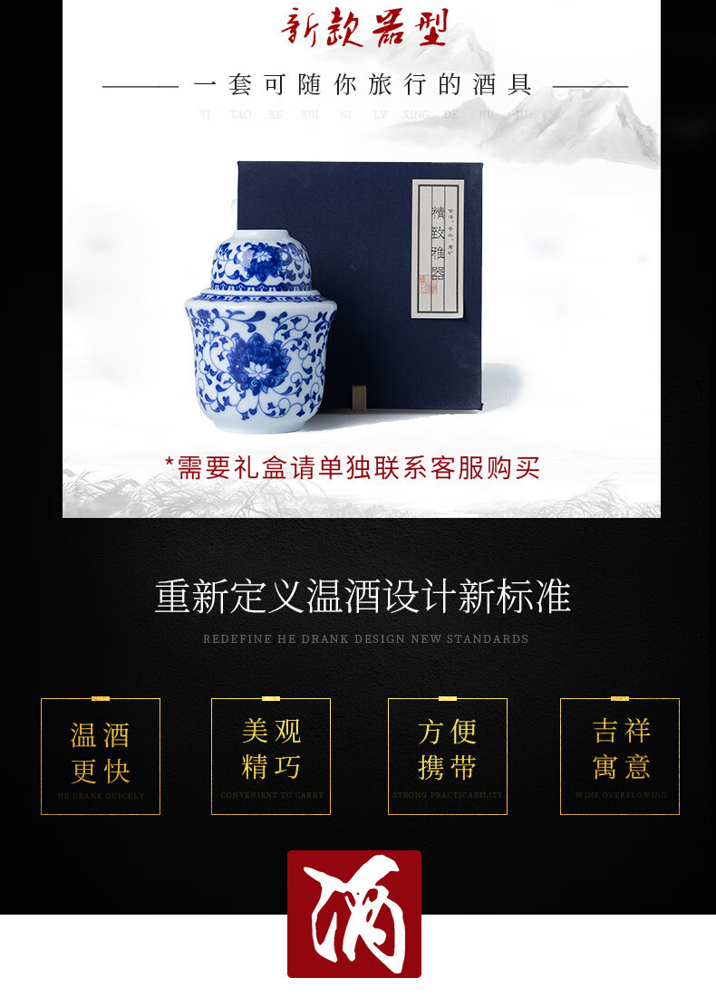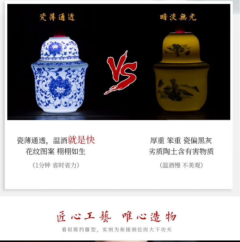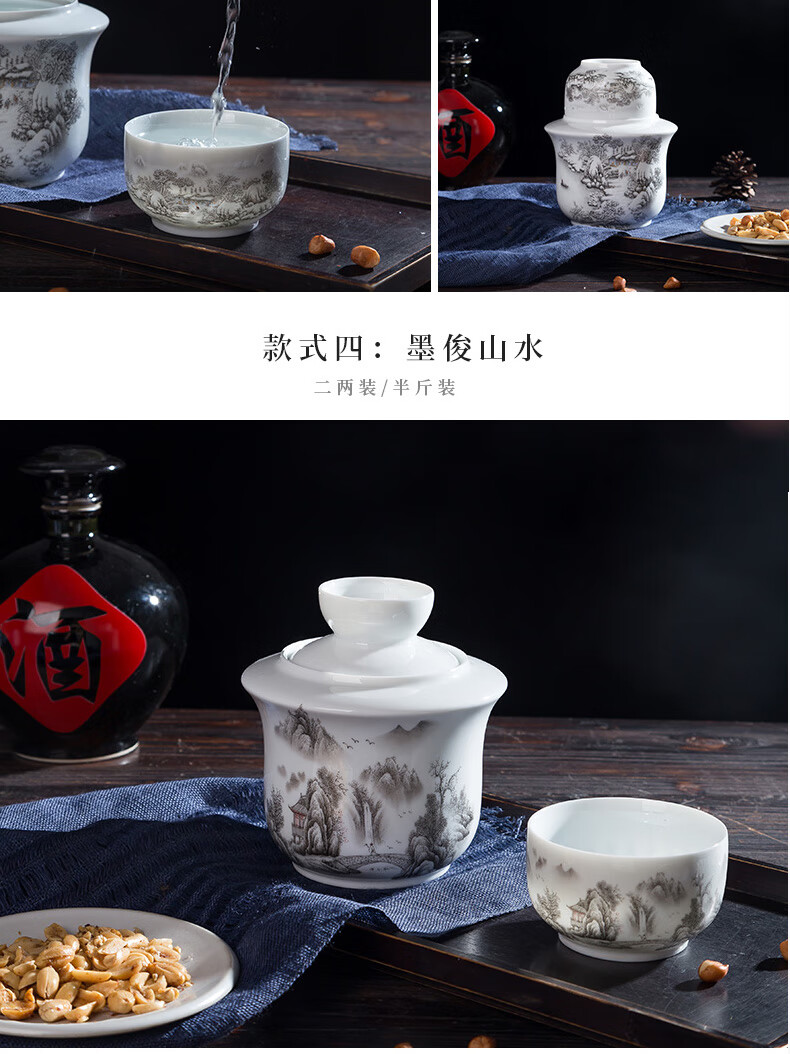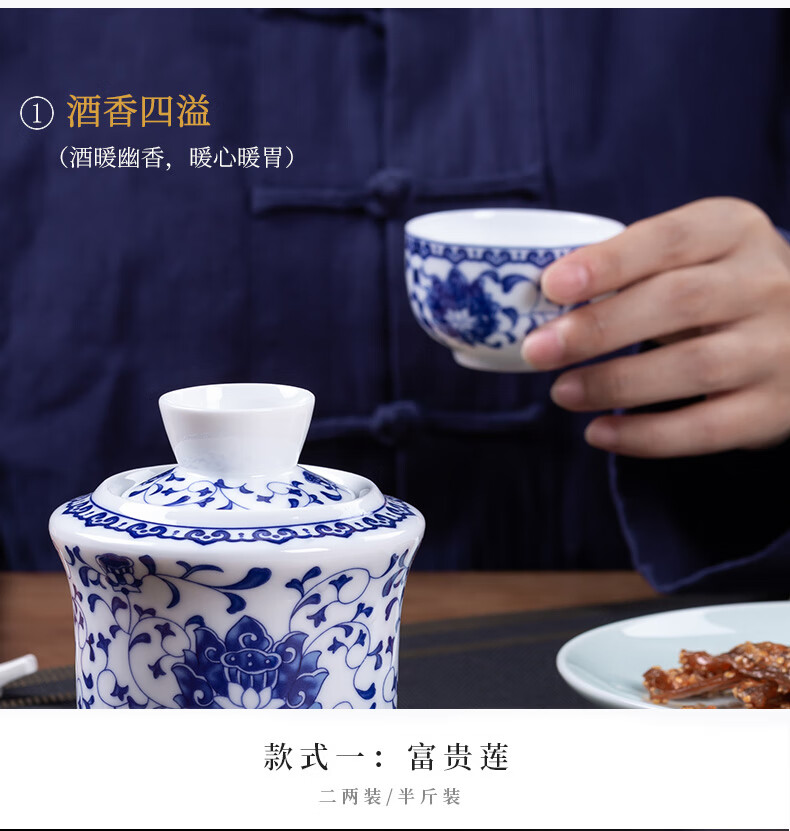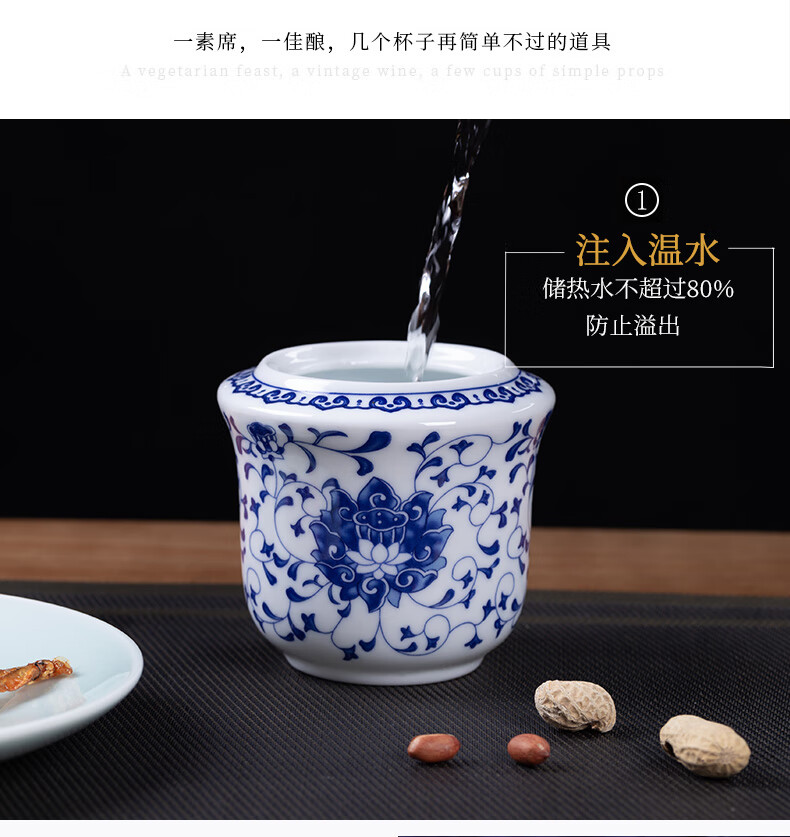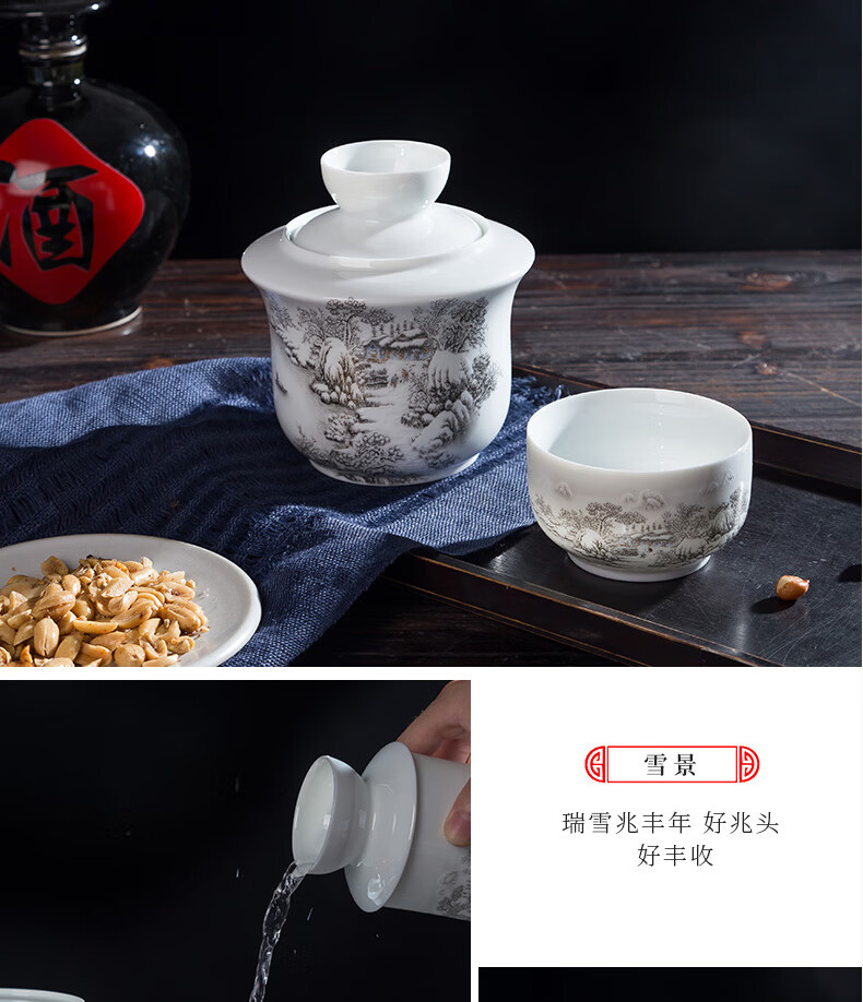 Jingdezhen Jingdezhen ceramic old-fashioned wine warmer household household hot wine pot 2 liang white wine yellow wine wine warmer set Fuguilian wine kettle 2 liang + 1 wine glass