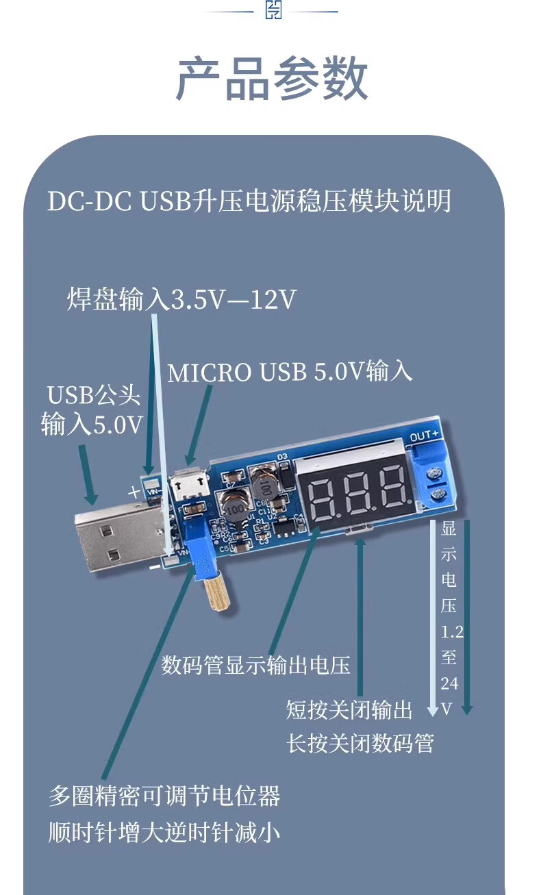 Green Shen USB boost power supply voltage stabilizing module 5V to 3.3V9V12V24V desktop power supply USB boost power supply voltage stabilizing module