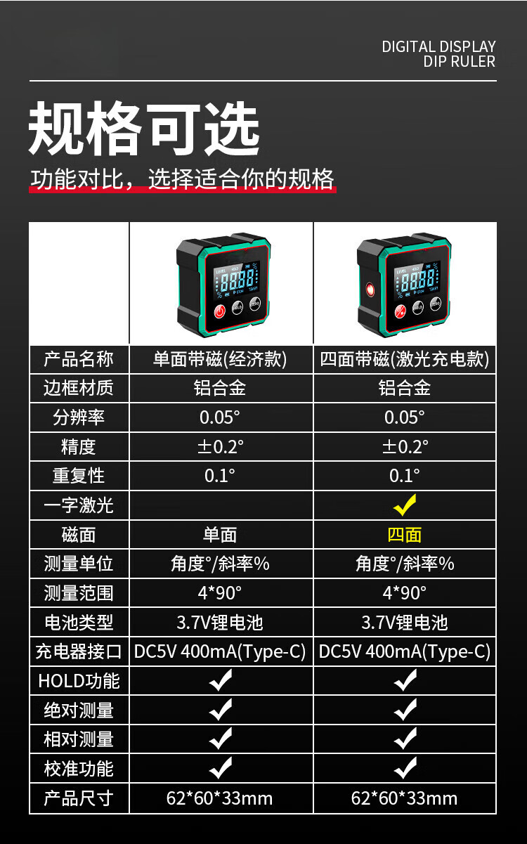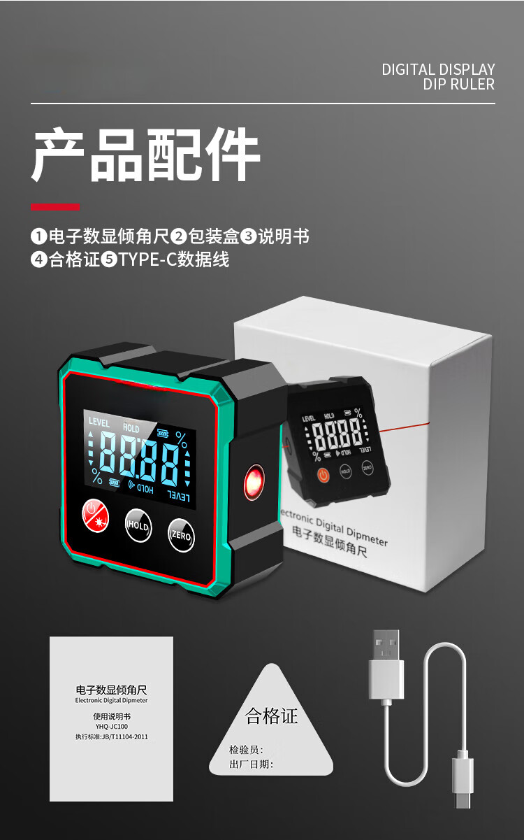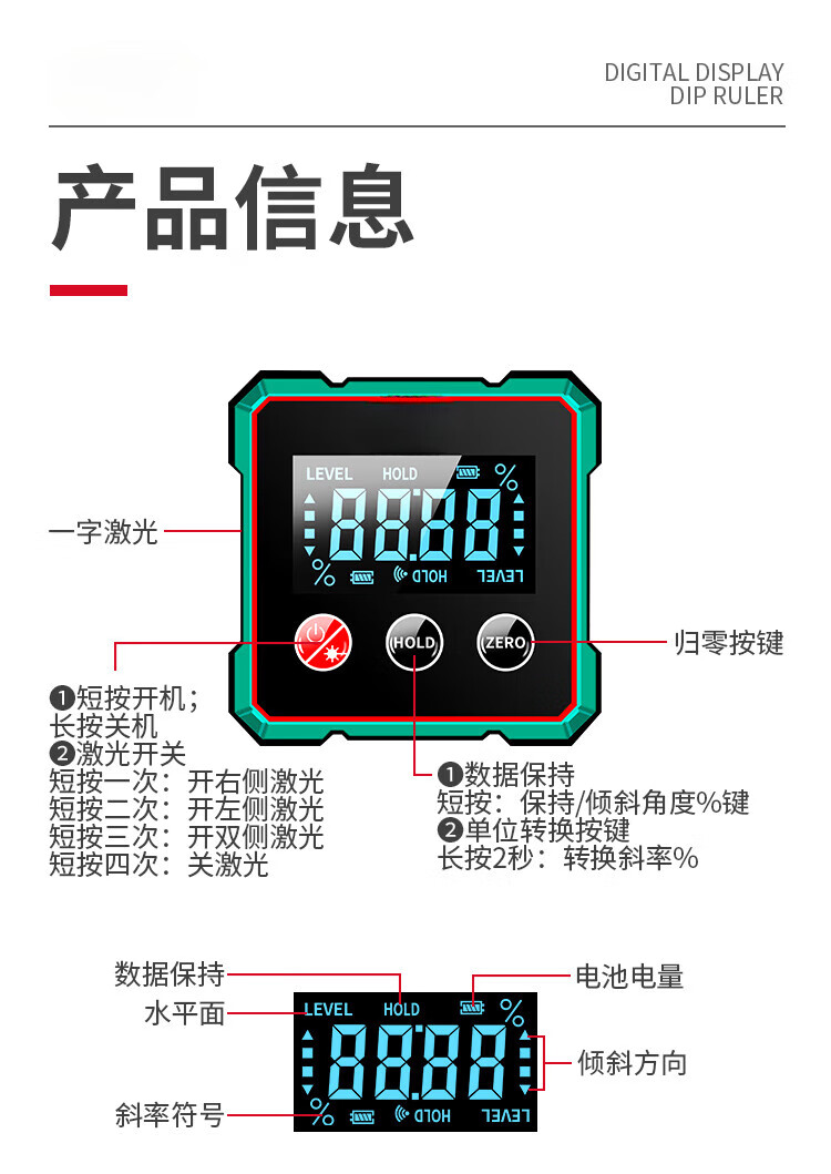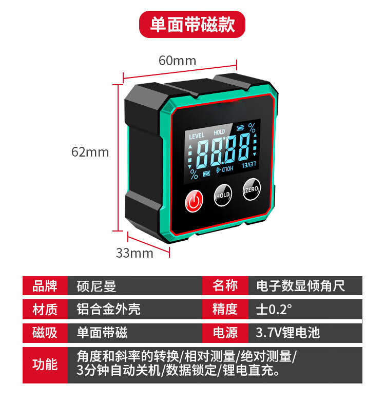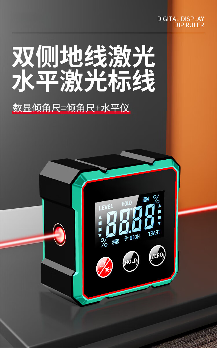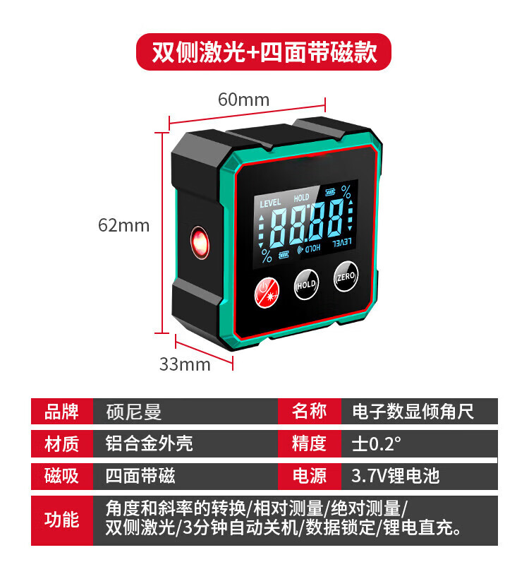 Sonnemann Germany high-precision inclinometer box electronic digital display level meter with magnetic laser to measure slope slope economical model - black and green (without laser)