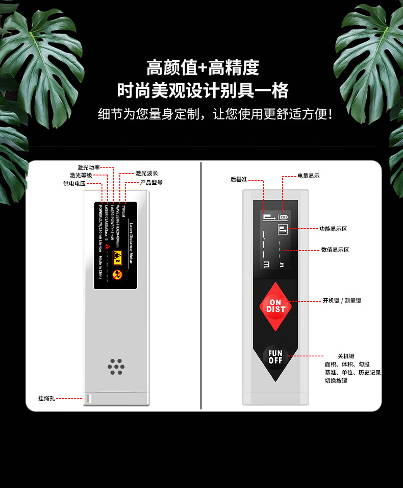Sonimann Germany Intelligent Laser Distance Meter High-Precision Measuring Instrument Mini Small Handheld Surveying Ruler Electronic 70 Meters Ivory White
