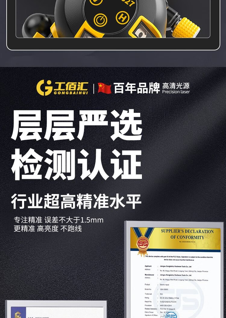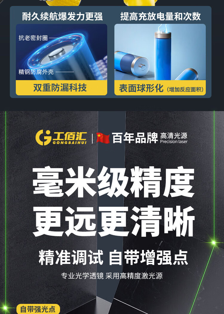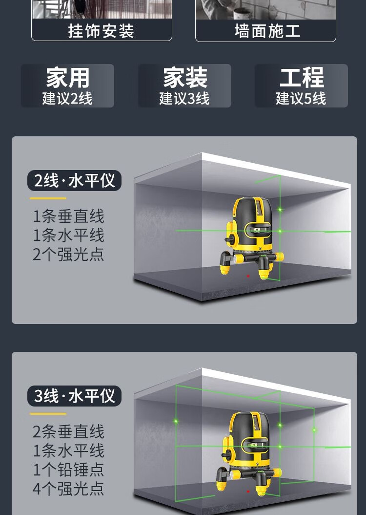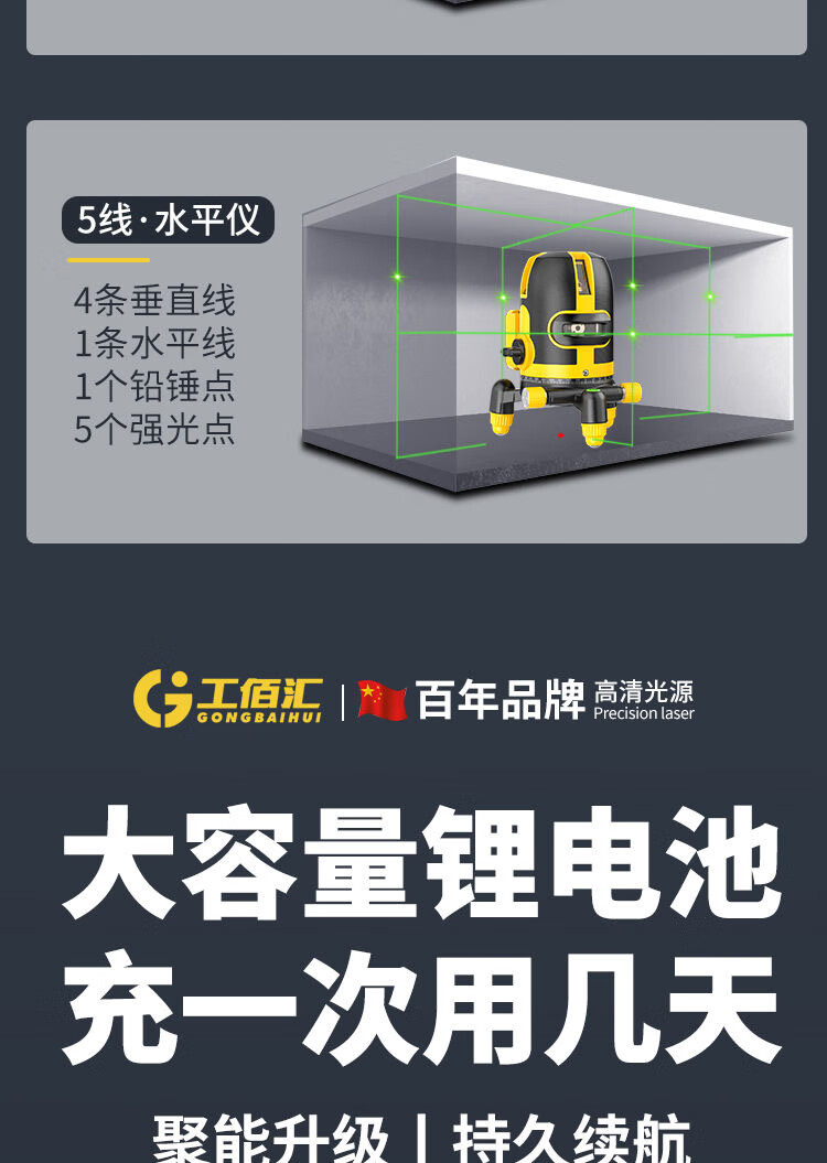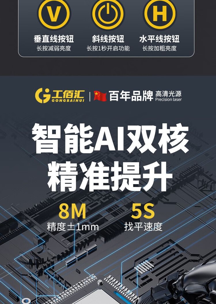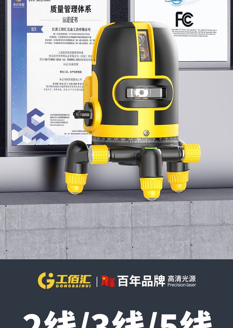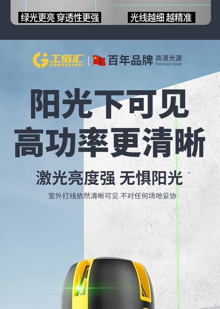 Gongbaihui level 235 line red light infrared level meter high precision automatic line casting meter wall ceiling woodworking high precision 2 line red light