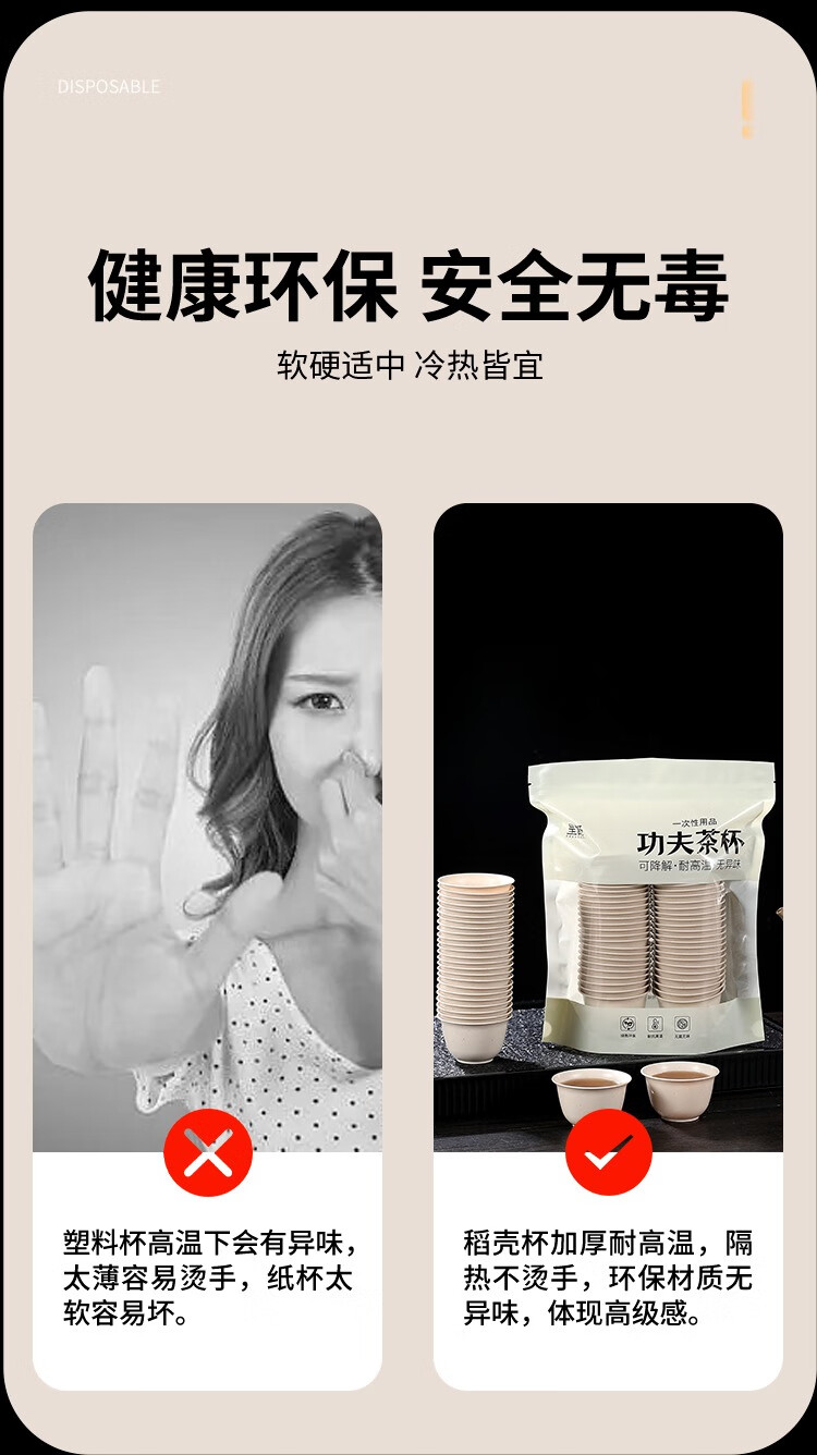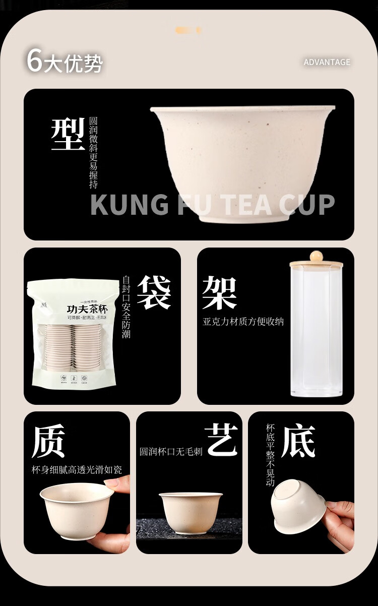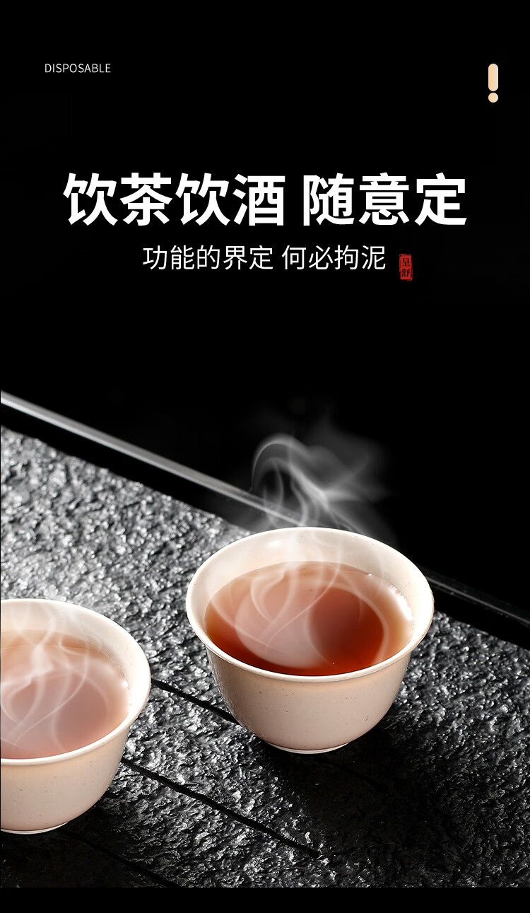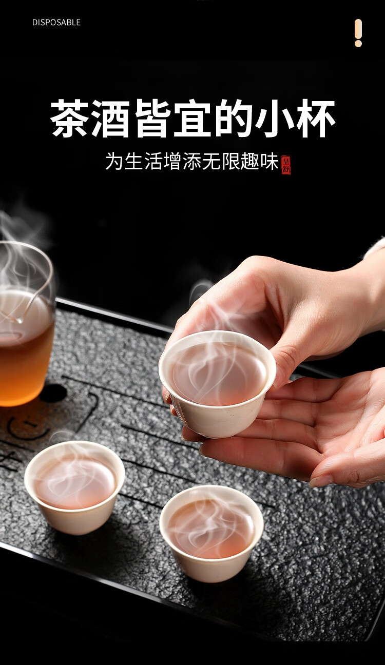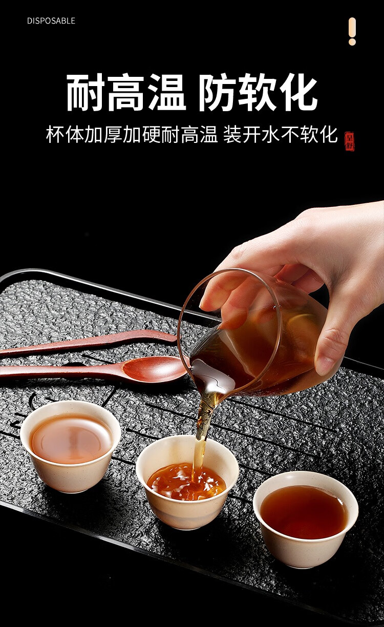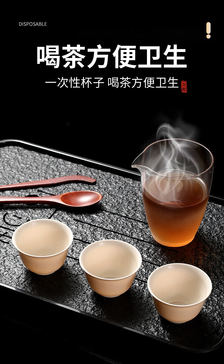 XZAN rice husk disposable tea cup thickened biodegradable kung fu tea cup home hospitality tea cup tasting tea cup high temperature resistance 4 packs (200 pieces) tea cup + 1 tea cup holder