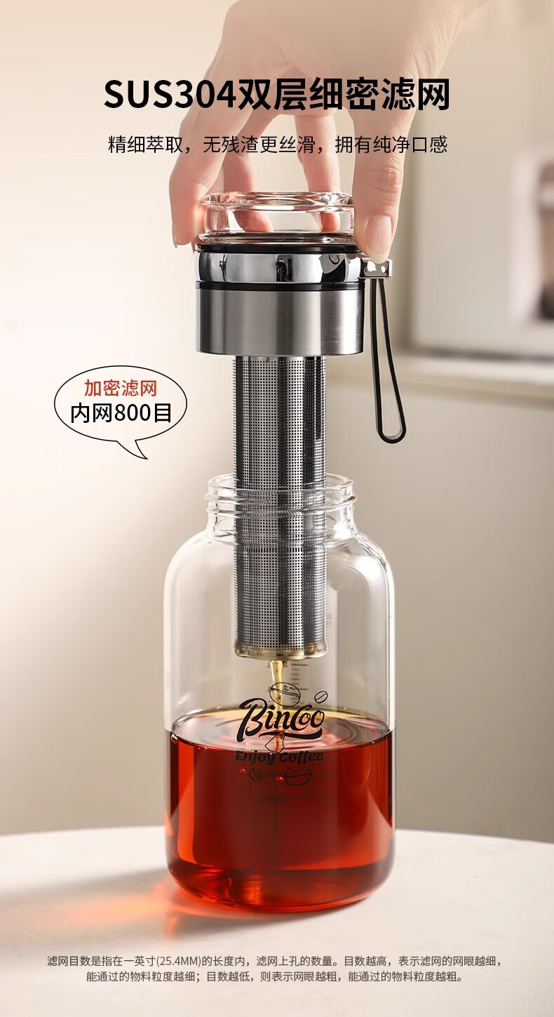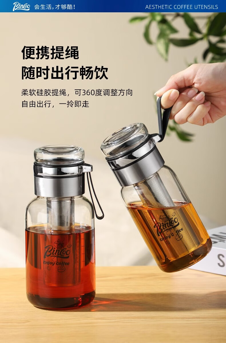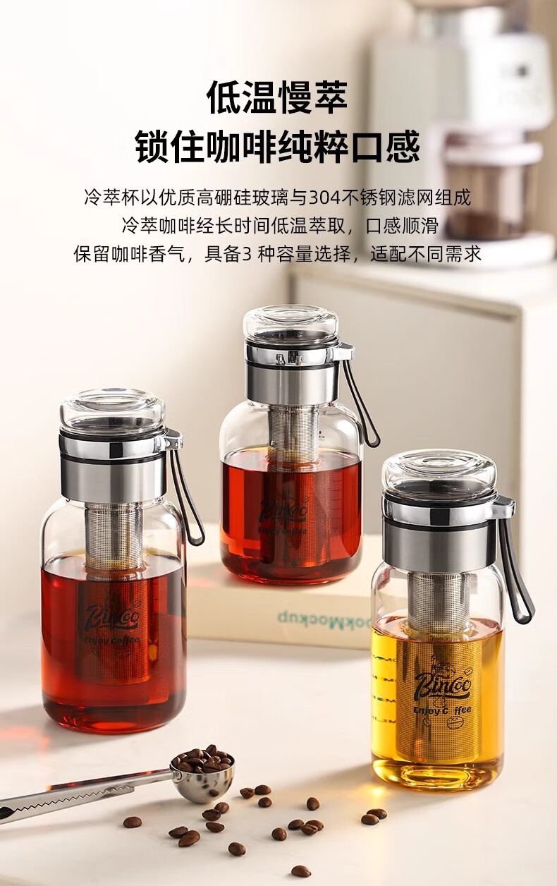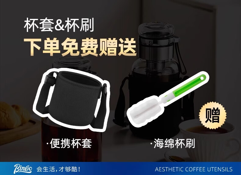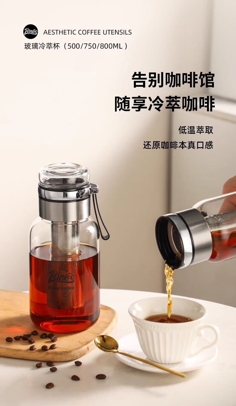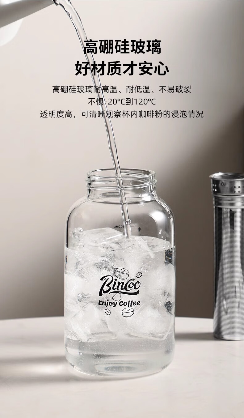 Bincoo cold brew cup coffee cup portable cold brew bottle cold brew cup glass water cup American large capacity cold brew pot Aoki portable cold brew cup-500ml