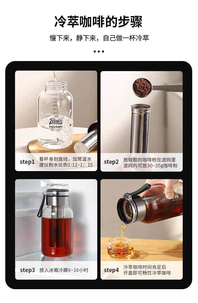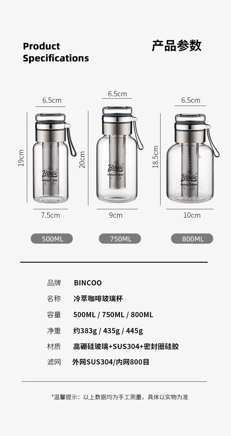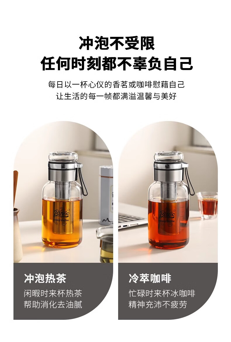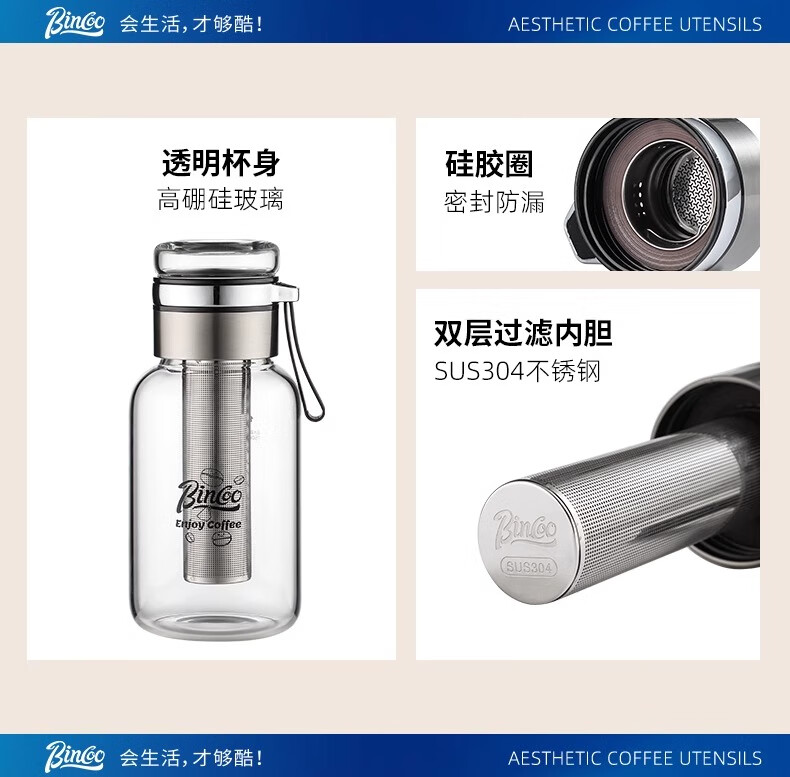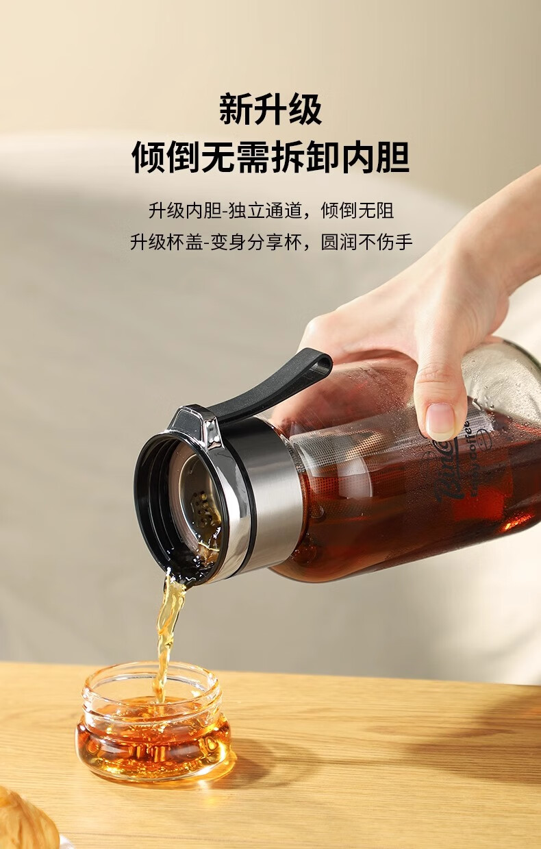 Bincoo cold brew cup coffee cup portable cold brew bottle cold brew cup glass water cup American large capacity cold brew pot Aoki portable cold brew cup-500ml