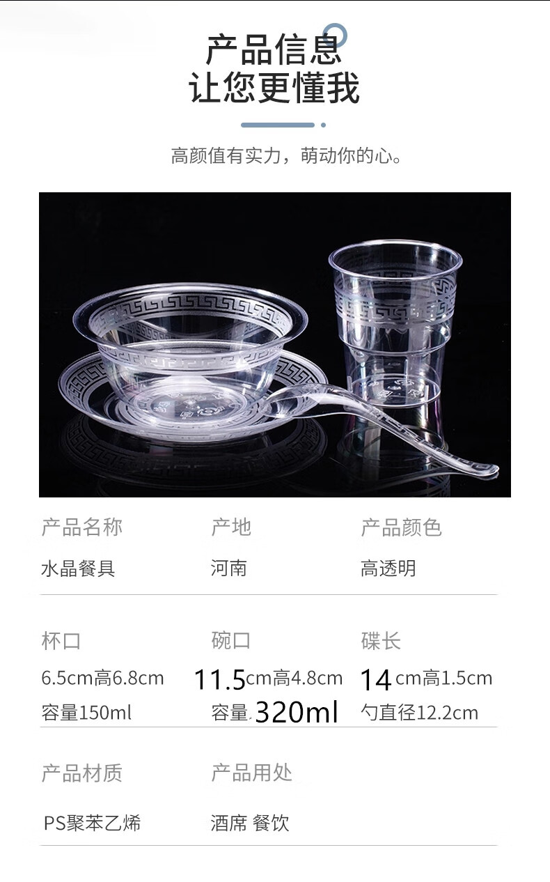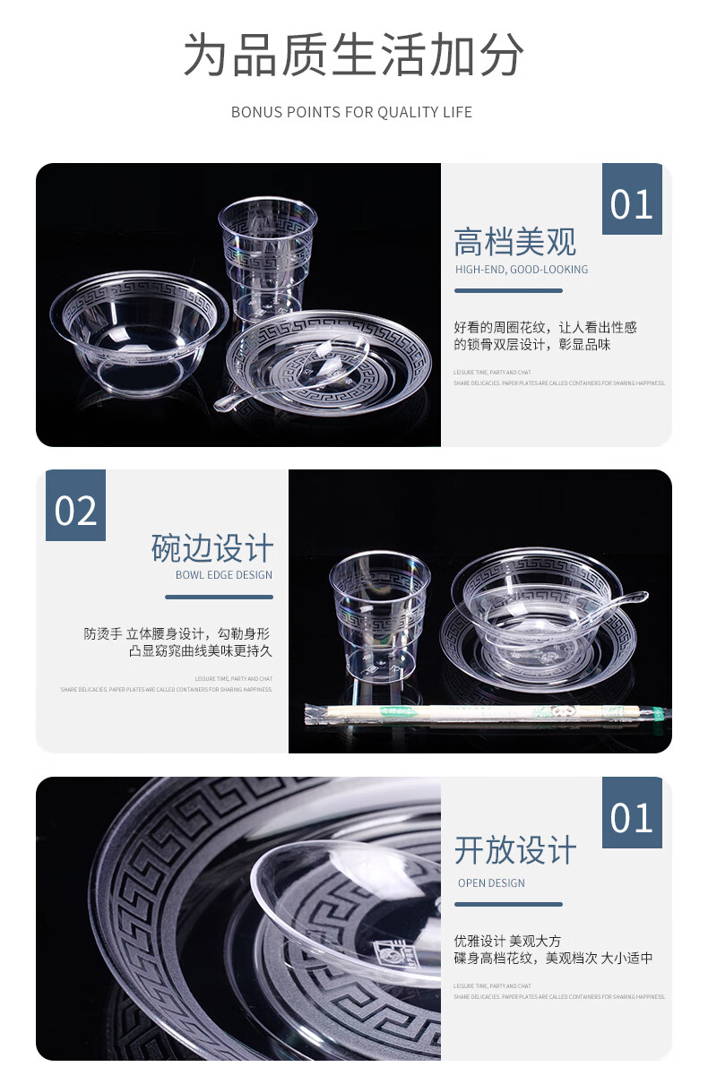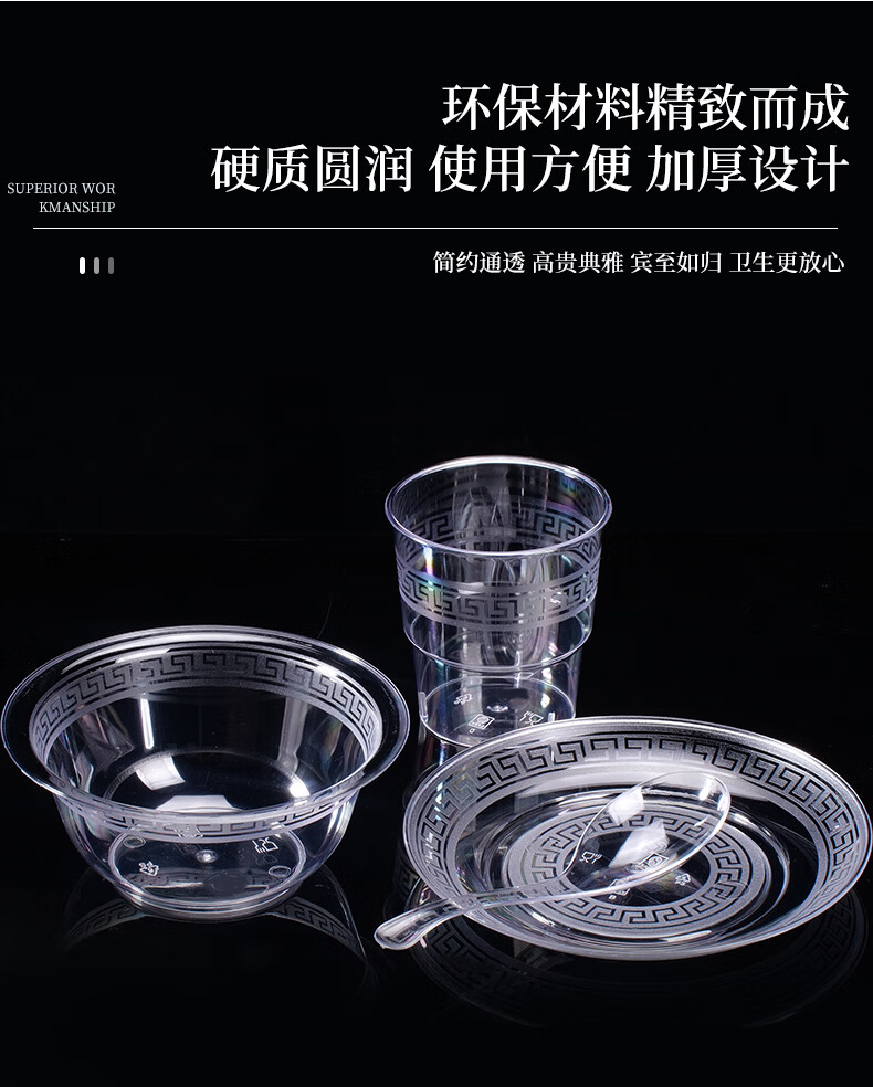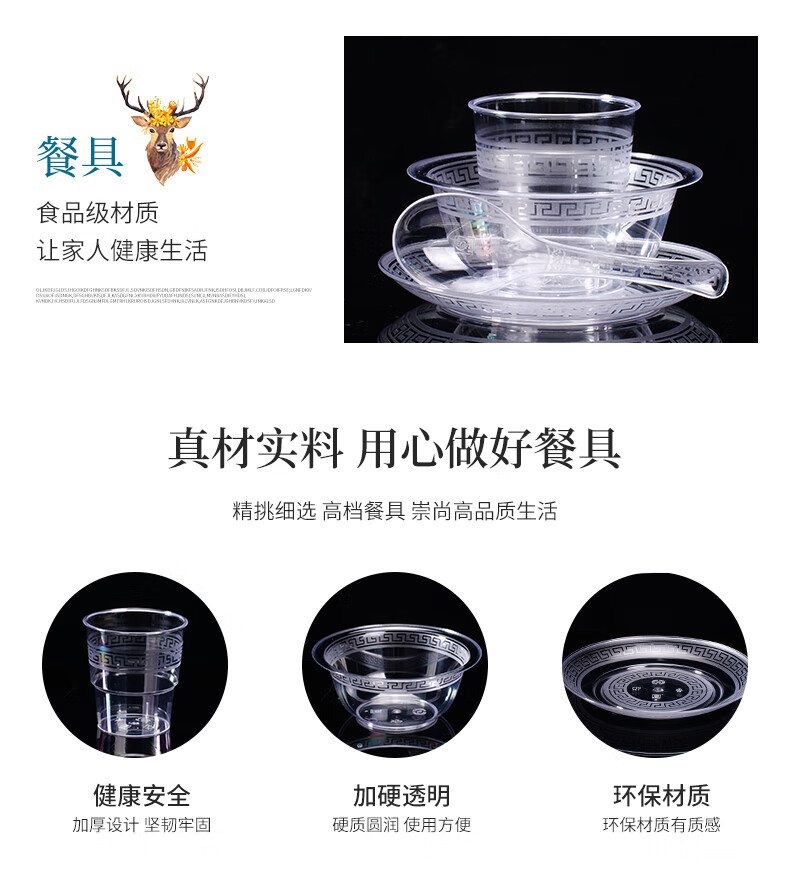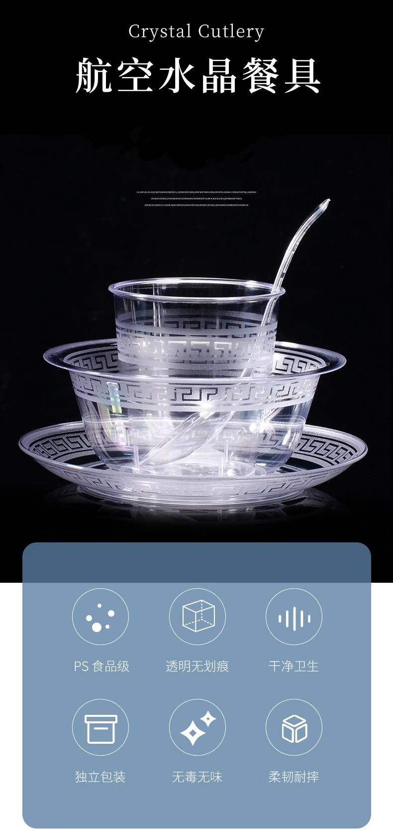 Disposable bowls, chopsticks, plates, cups and spoons set tableware thickened and hardened aviation environmental protection outdoor travel camping hotel banquet 20 sets free 20 pairs of disposable chopsticks