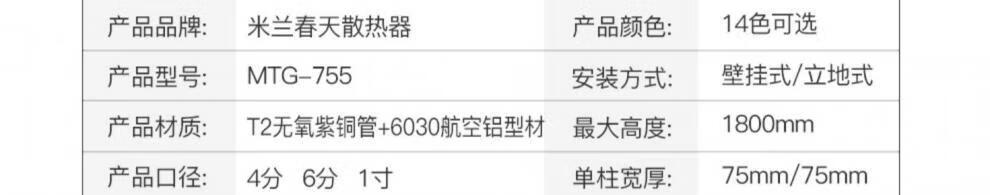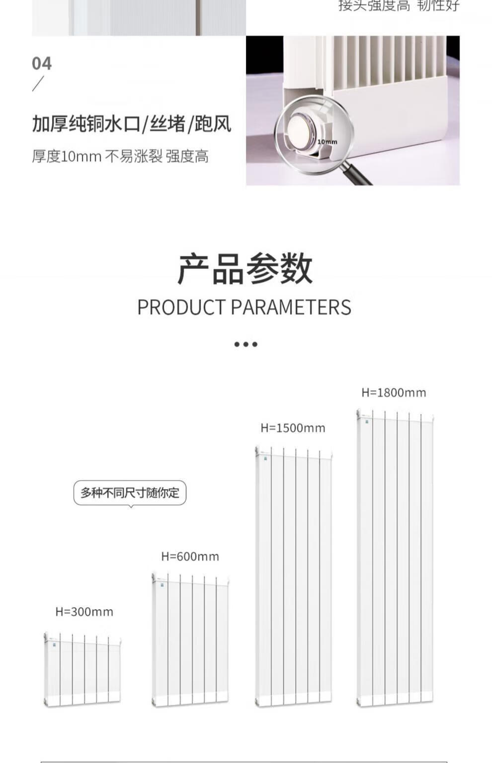 MILAN SPRING RADIATOR radiator household plumbing copper-aluminum composite bathroom small basket radiator wall-mounted central heating MTG-755 (minimum order of three pieces) 1.8m