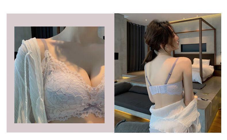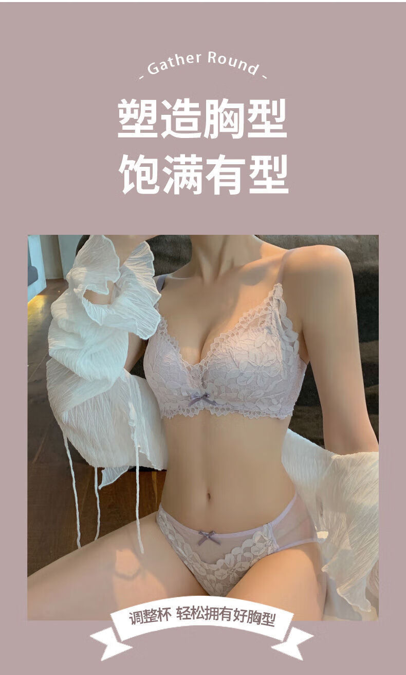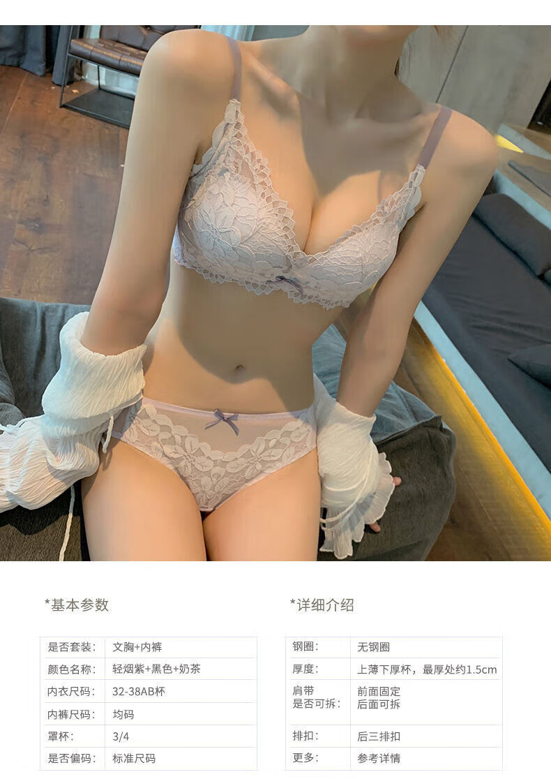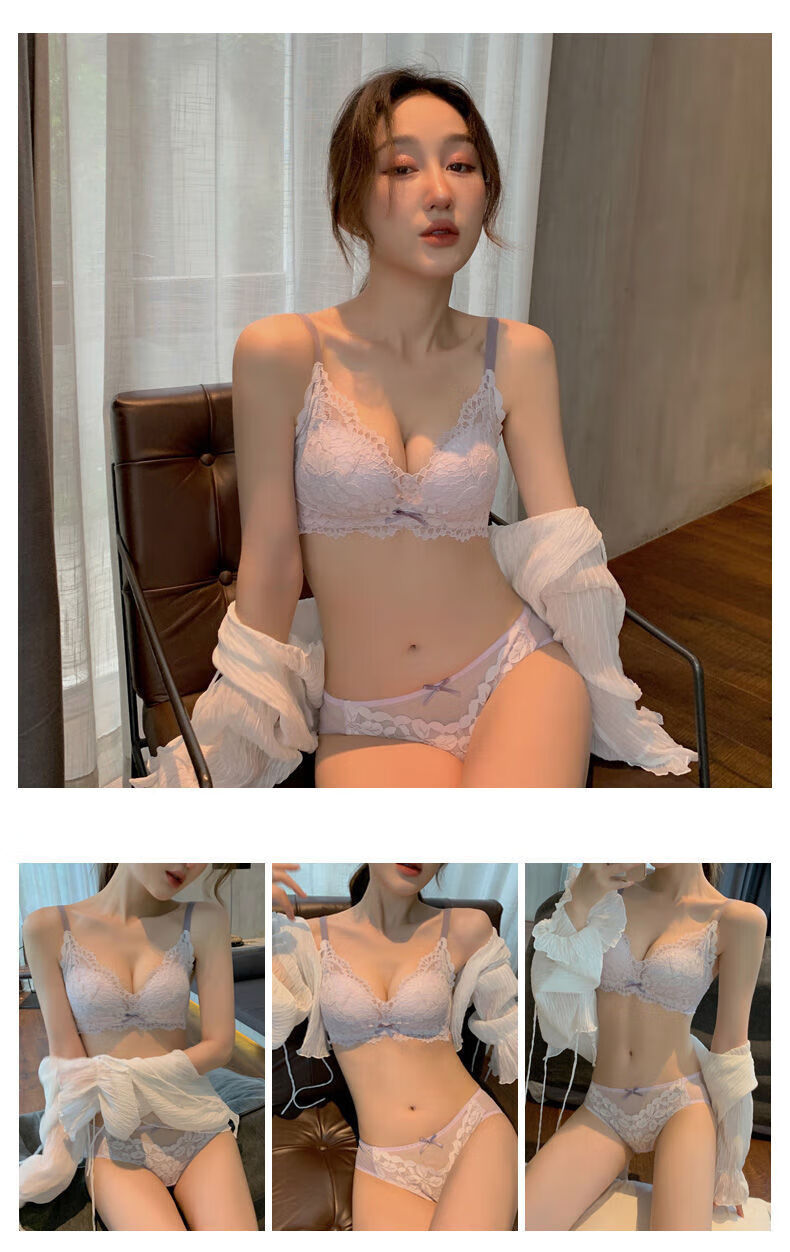 Victoria's Elegant New Lace Underwear Women's Bra Set Bra Without Wire Rings Girls Small Breast Gathering Secondary Breasts Breathable Bra Breast Smoke Purple Set (Set) 75B 34B