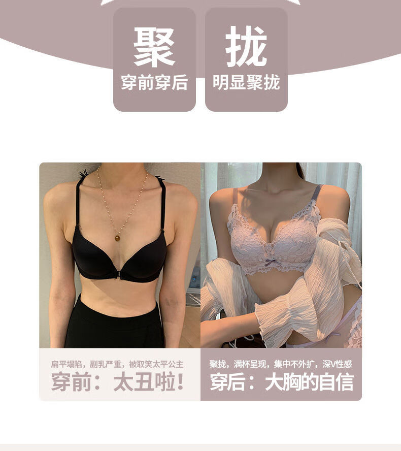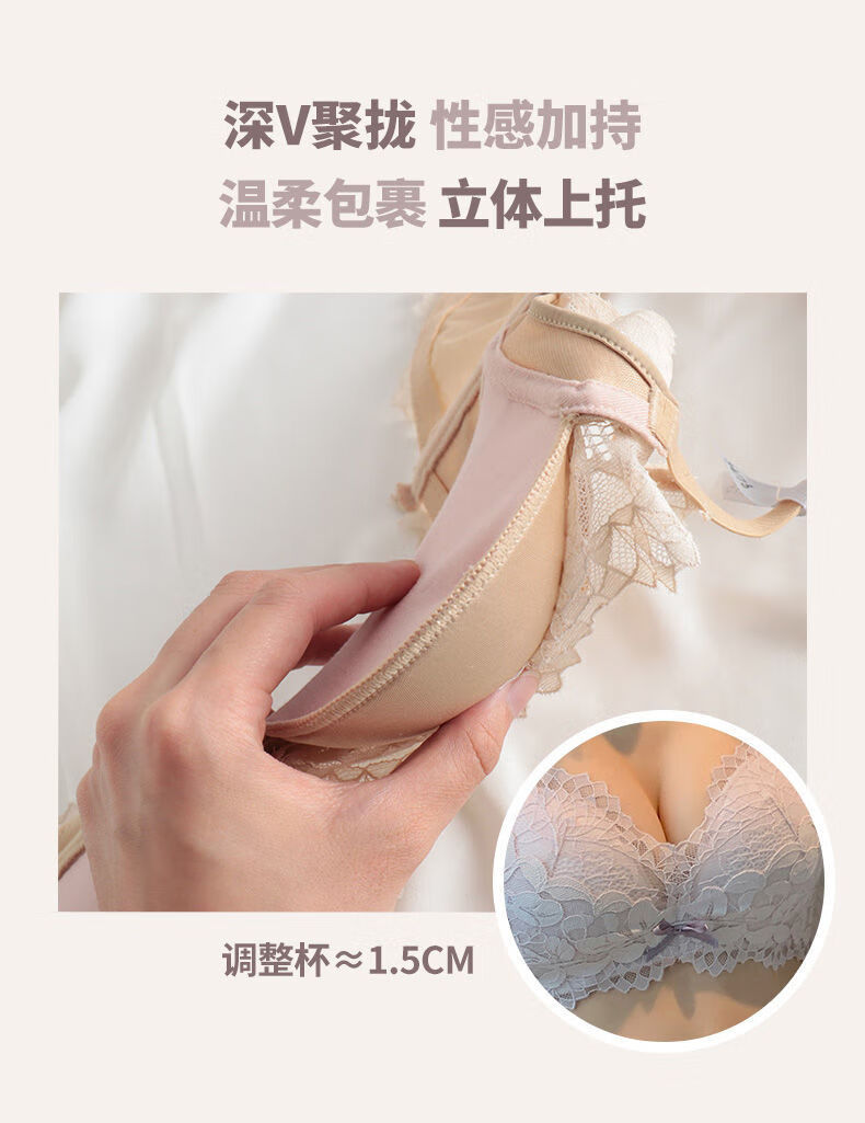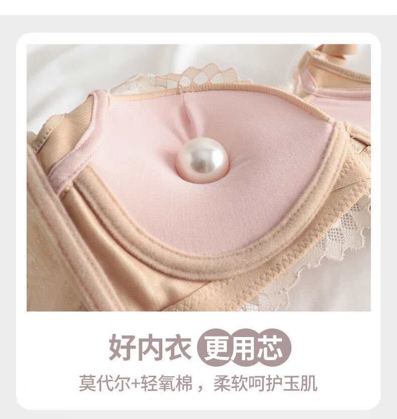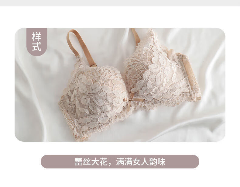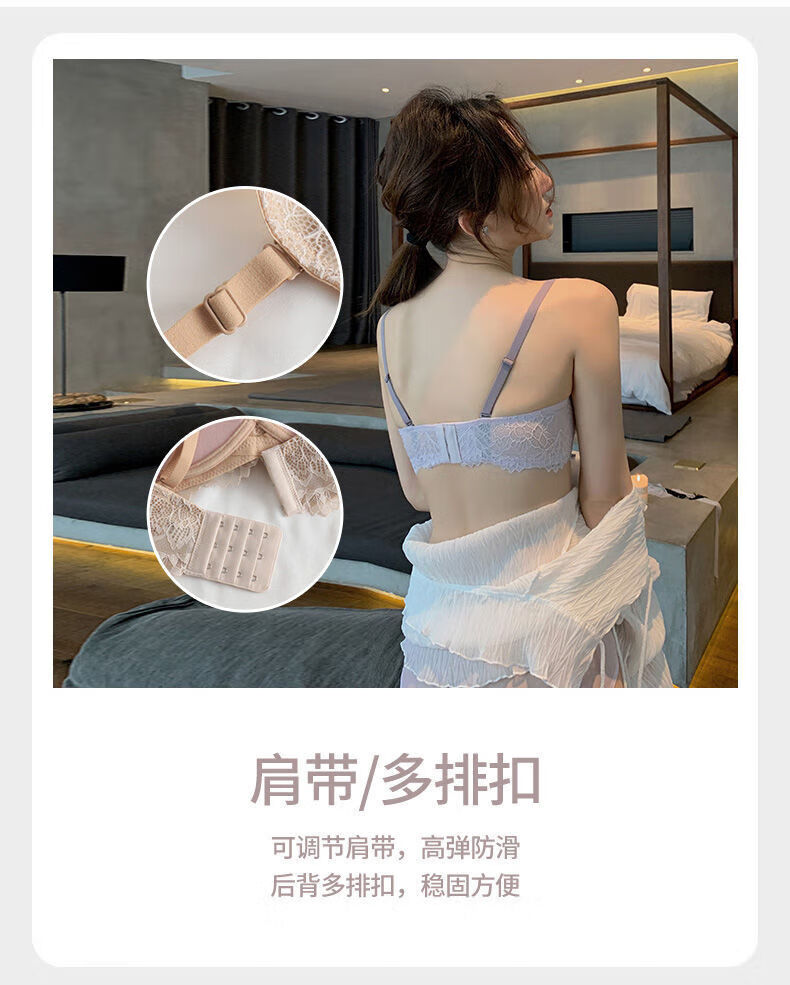Victoria's Elegant New Lace Underwear Women's Bra Set Bra Without Wire Rings Girls Small Breast Gathering Secondary Breasts Breathable Bra Breast Smoke Purple Set (Set) 75B 34B
