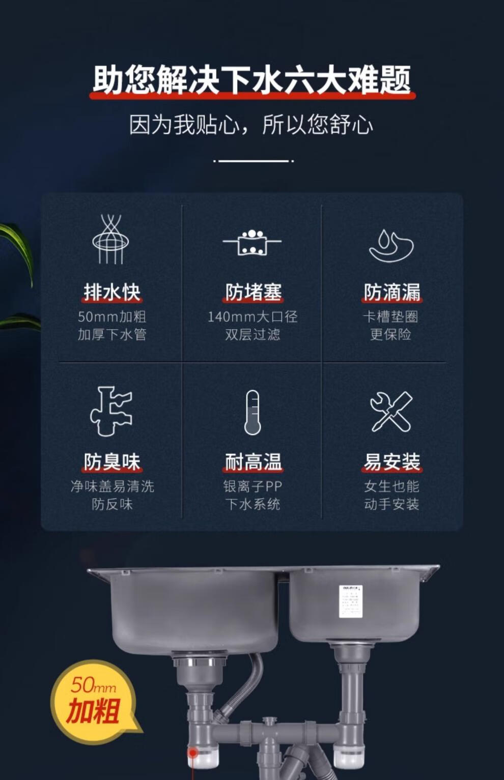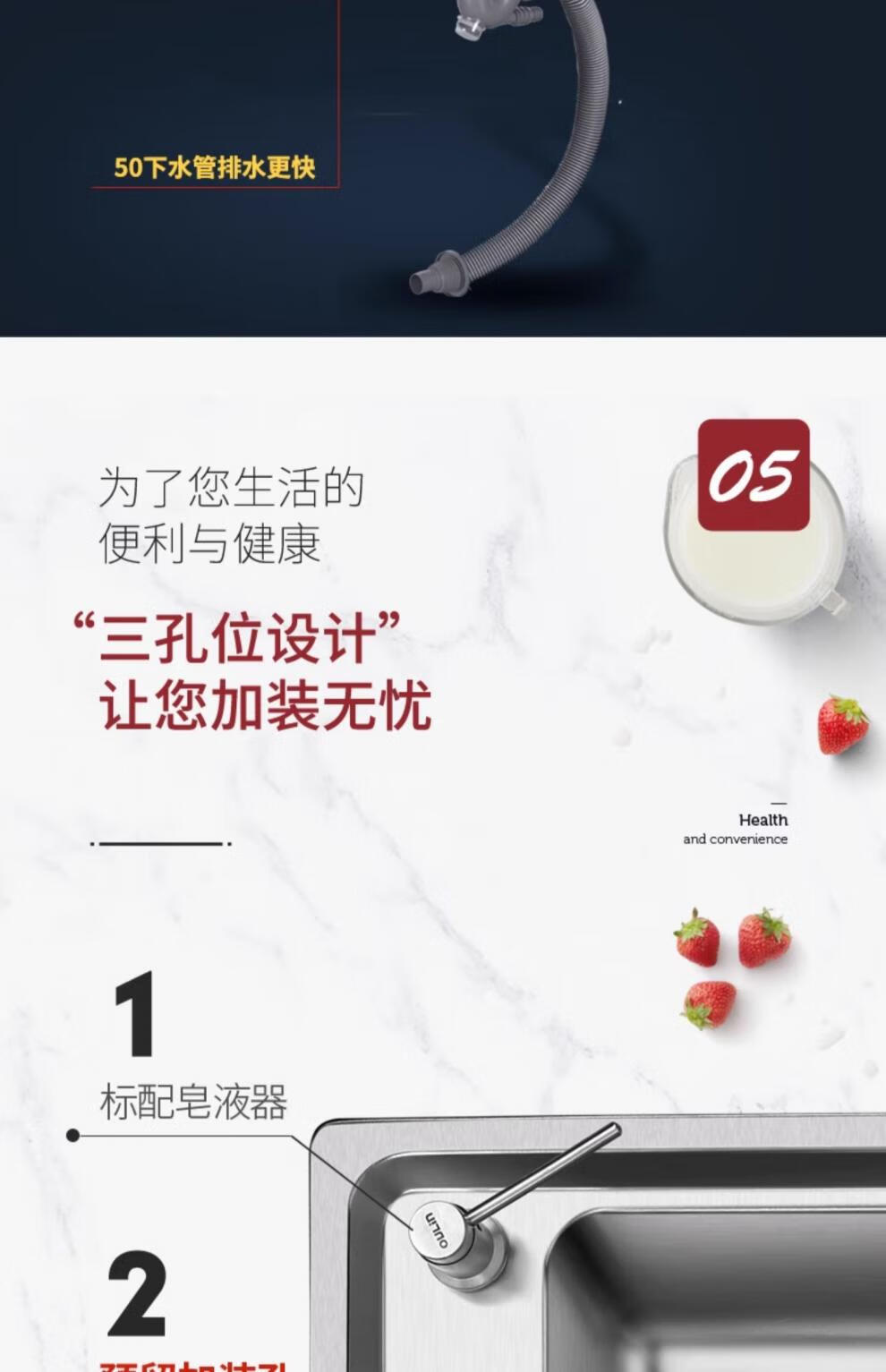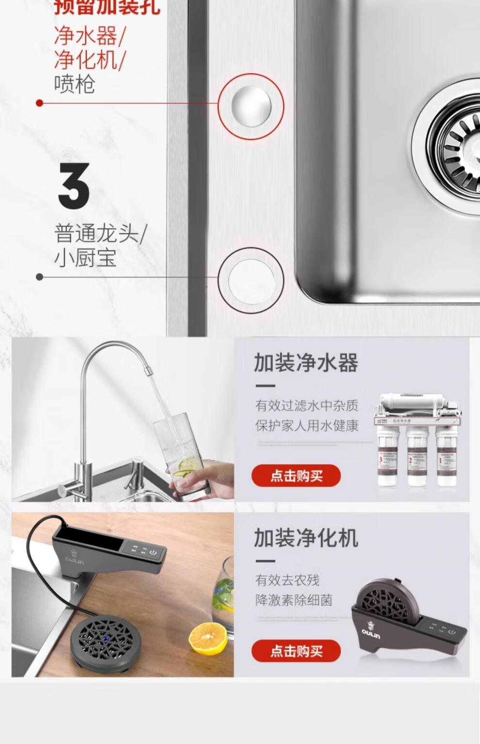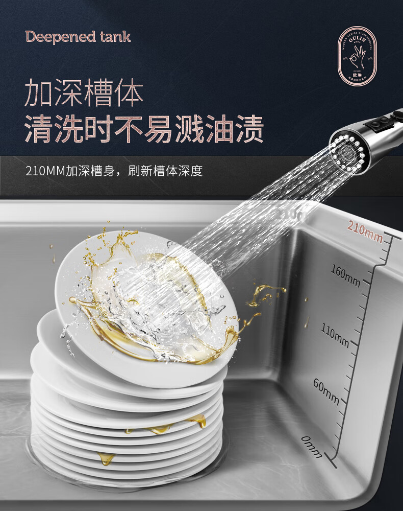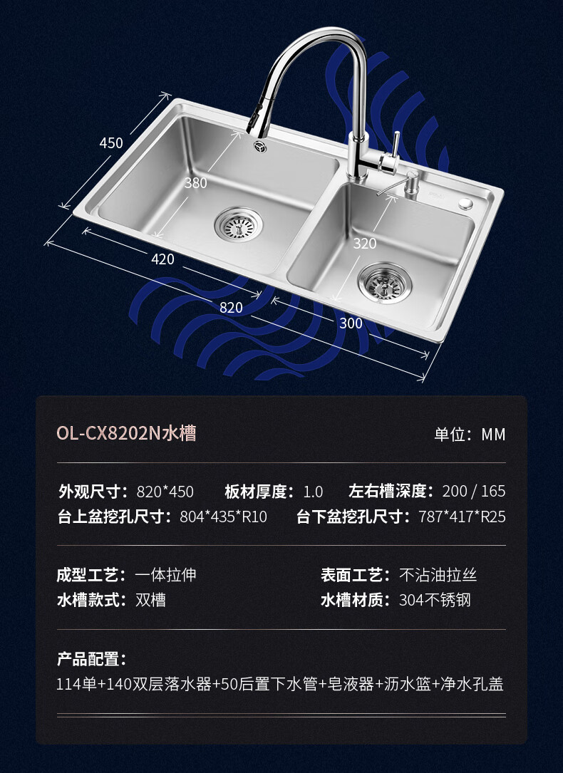 OULIN sink double basin package kitchen sink 304 stainless steel sink double basin thickened J006A / 820A 860x470+CFL101 brass pull-out faucet+drain