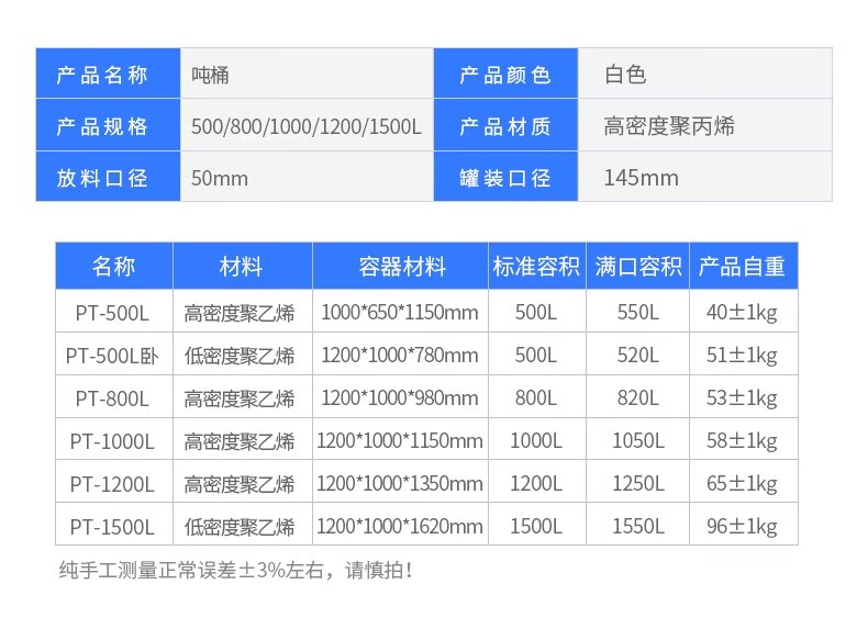 TLXT ton barrel 1000 liters new thickened ibc diesel barrel 1 ton square plastic barrel water tank chemical barrel 500L water storage tank new white thickened 1000 liters