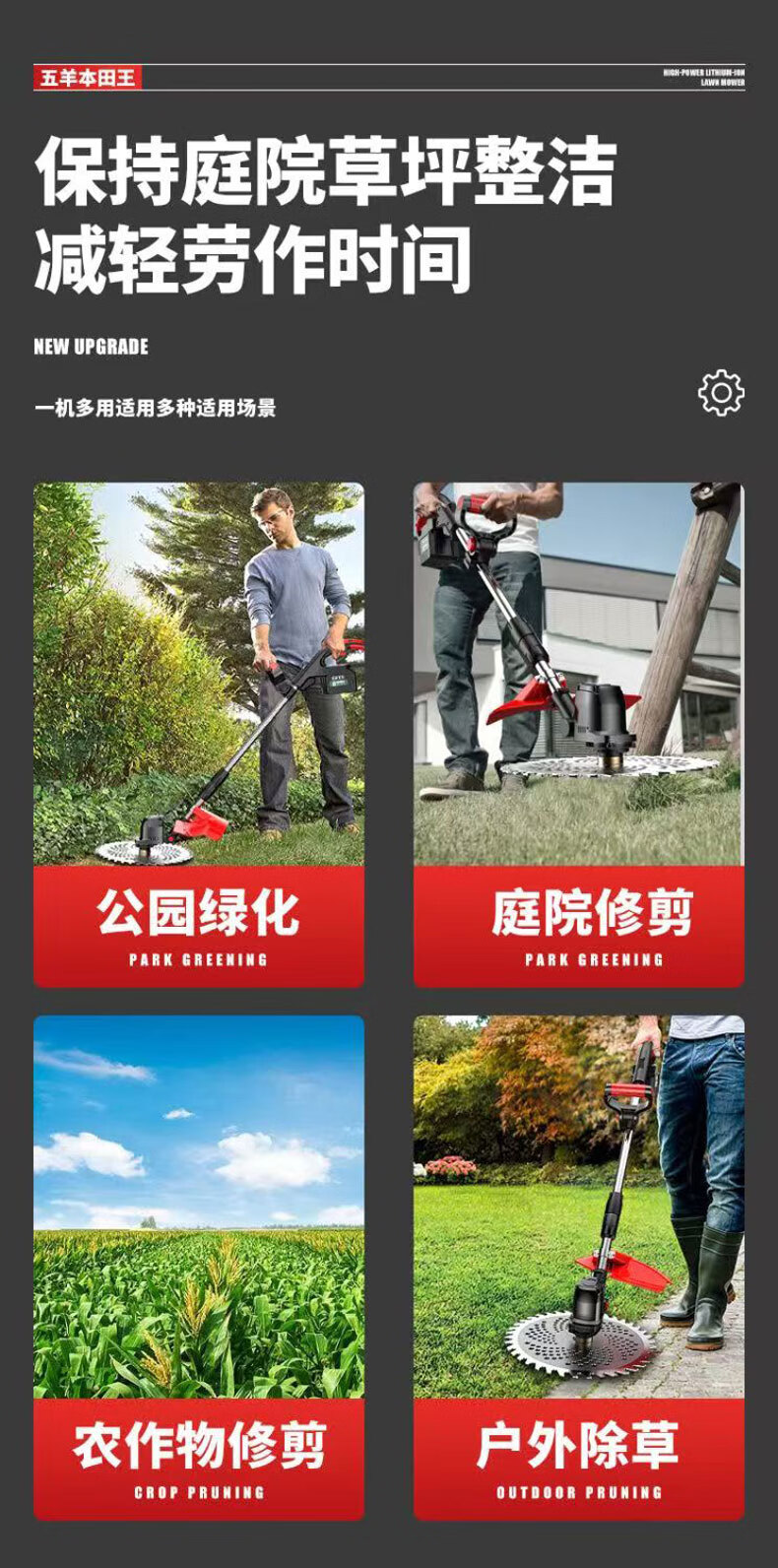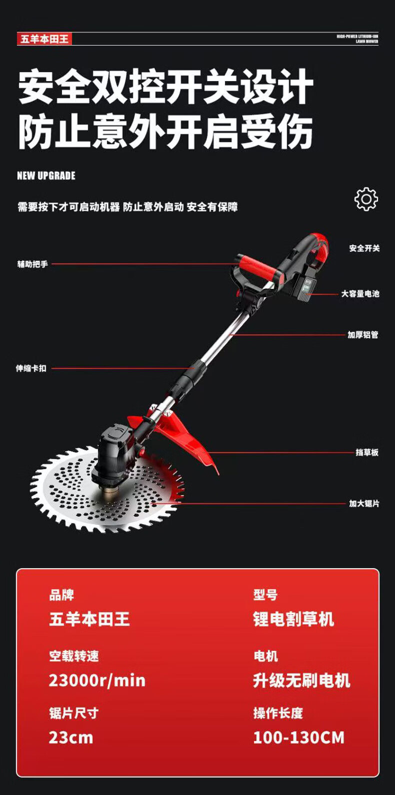 Wuyang Honda Electric Lawn Mower Rechargeable Weeder Handheld Lawn Mower Lithium-Based Weeding Tool Magic Electric Lawn Trimmer 30 Batteries 2 9-inch Blade Retractable Model Includes Gift Pack