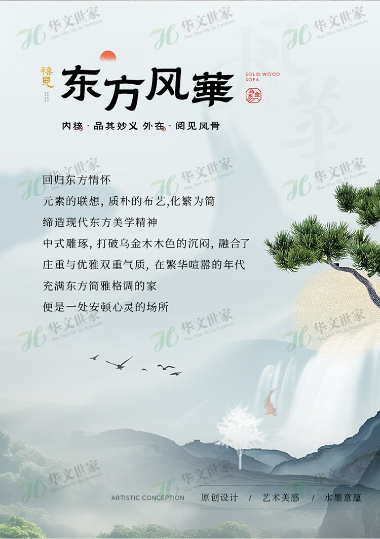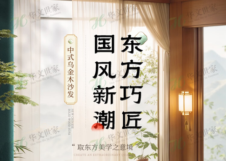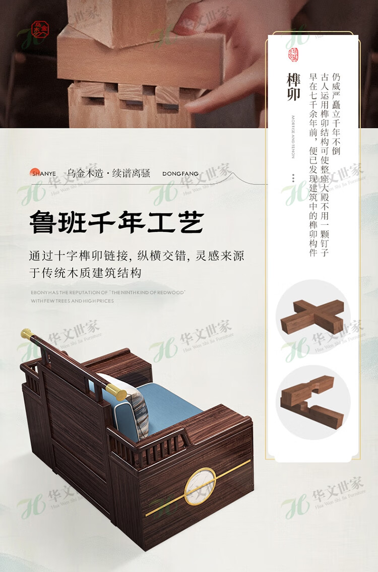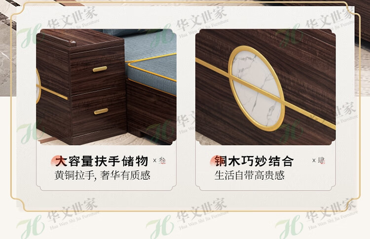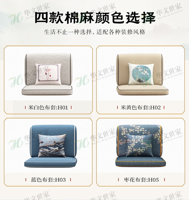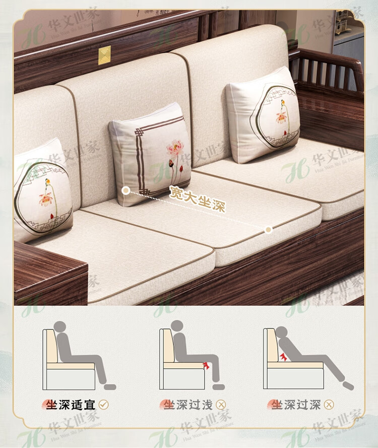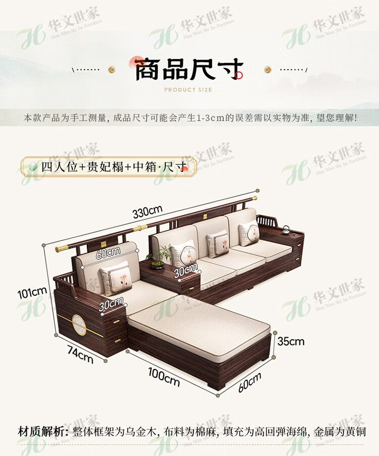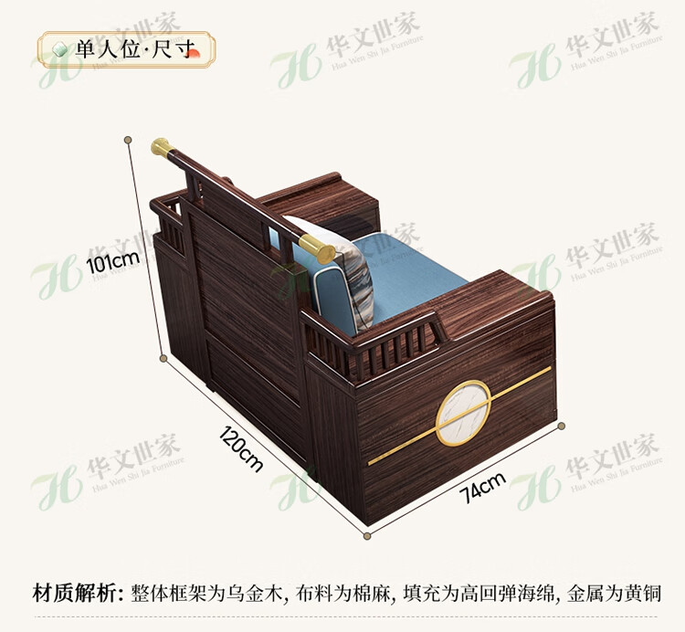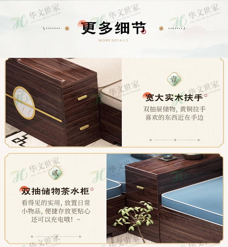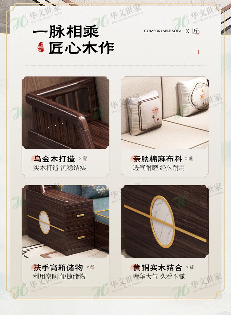 Huiwangfu solid wood sofa New Chinese style ebony wood sofa living room all solid wood modern simple winter and summer storage sofa 1+2+3+long coffee table+square table+TV cabinet