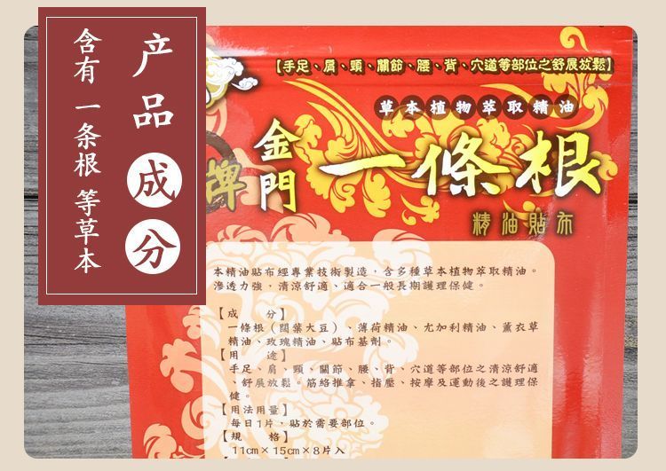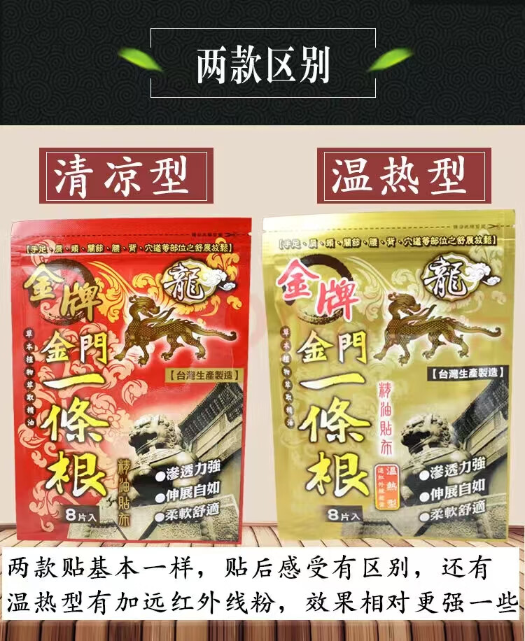 Gold Medal One Root Taiwan One Root Original Authentic Kinmen Dragon Gold Medal One Strip Essential Oil Patch Tape Plaster Body Care Enhanced Warming Type 8 Tablets*1 Pack Trial Pack