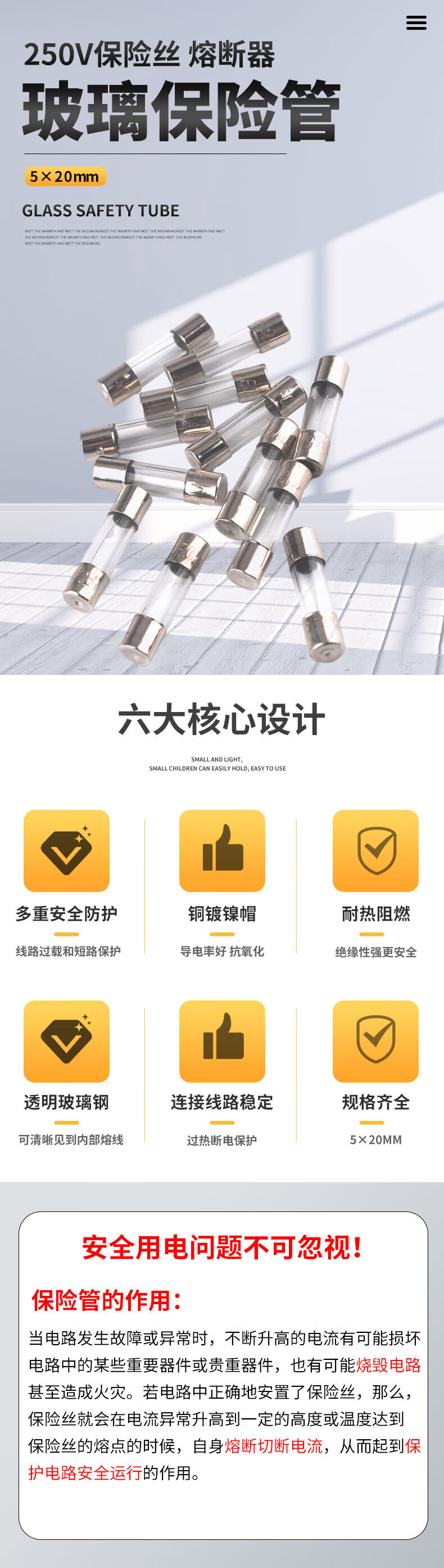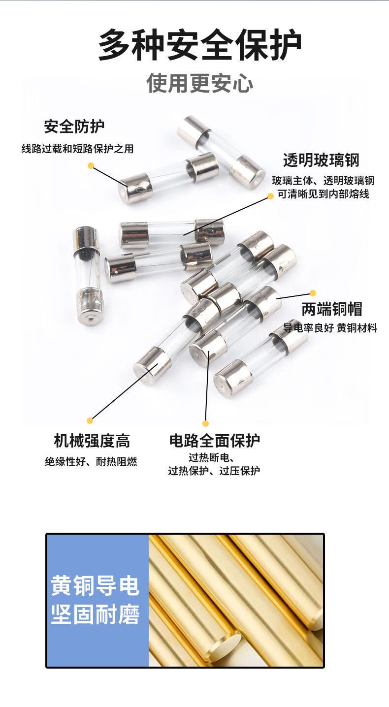 Fuse 5*20mm glass fuse tube fuse 6x30 250V 0.5A 1A 2A 3 5*20mm 0.5A (100 pieces/box)