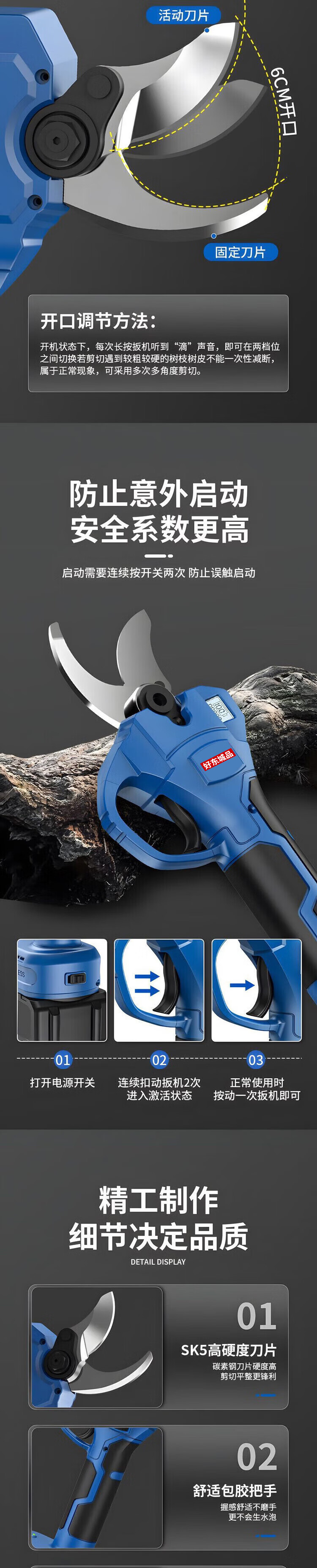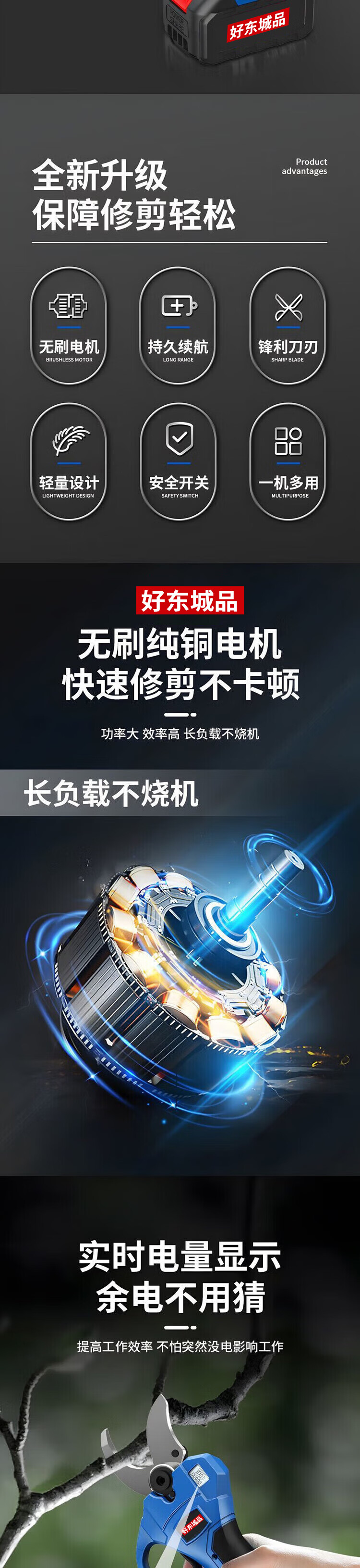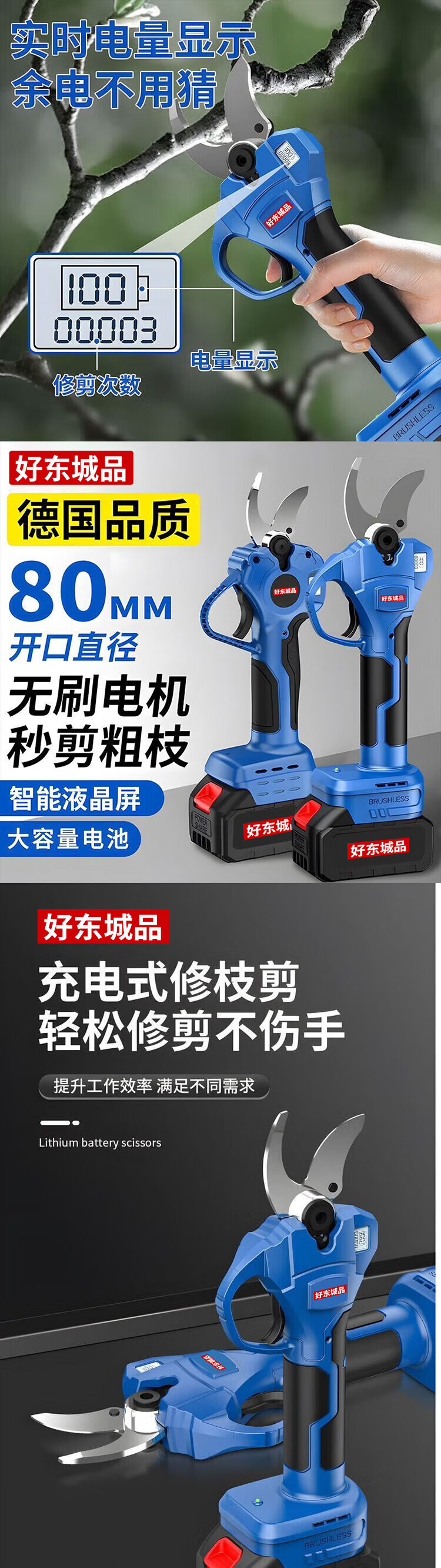 Dongcheng Haodongcheng brand electric scissors, powerful garden fruit tree pruning shears, tree lithium battery pruning branches, electric scissors for pruning, digital display 7.5 cm, dual power - free luxury plastic box gift bag