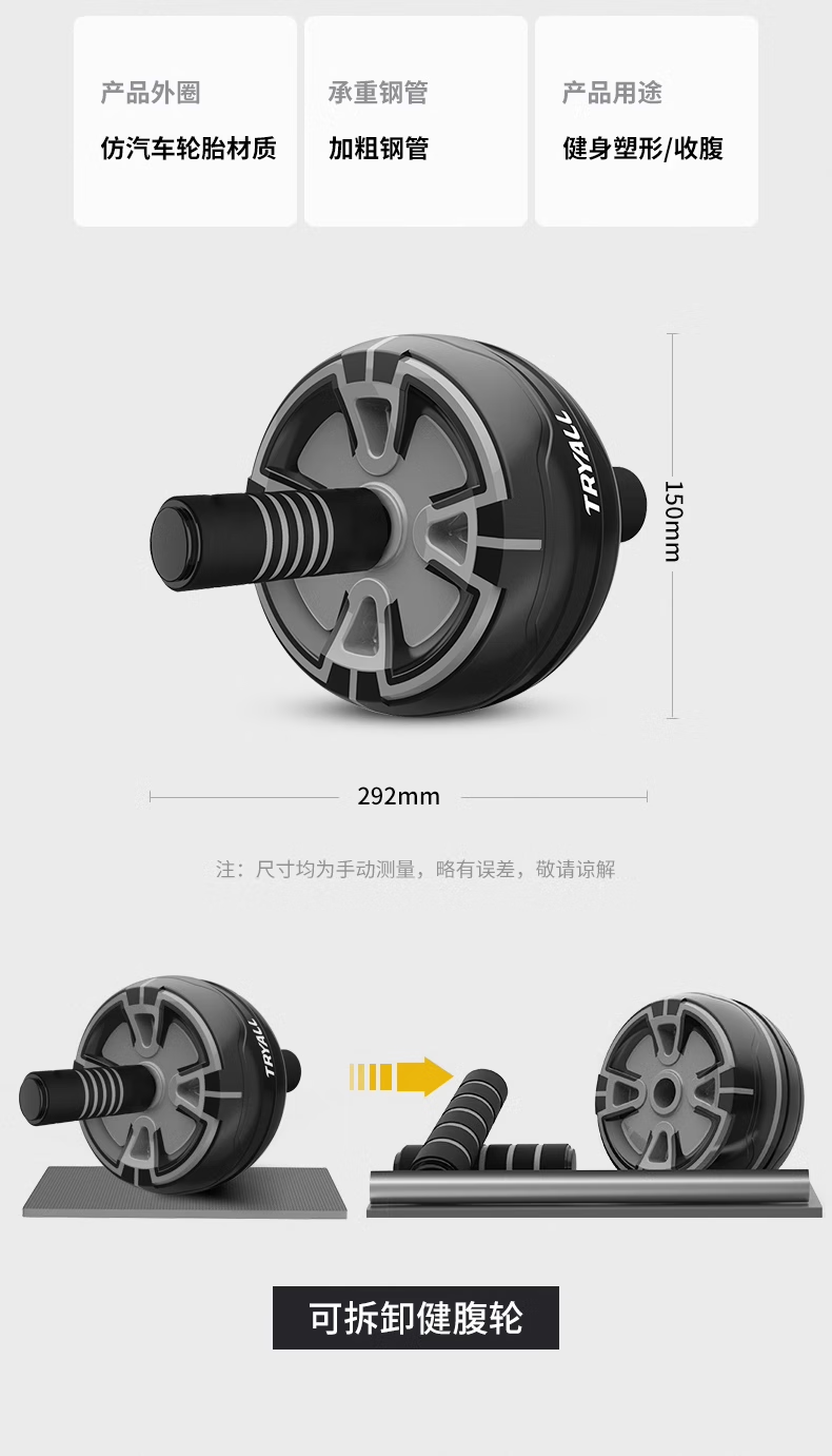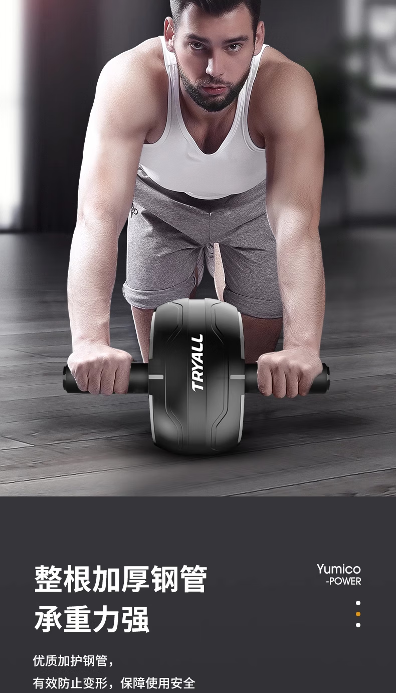 German Abdominal Wheel Abdominal Muscle Men's Abdominal Roll Abdomen Abdominal Abdominal Fitness Equipment Home Beginner Women's Slim Belly Slimming Supreme Edition - Black Gray Abdominal Wheel + Professional Kneeling Mat