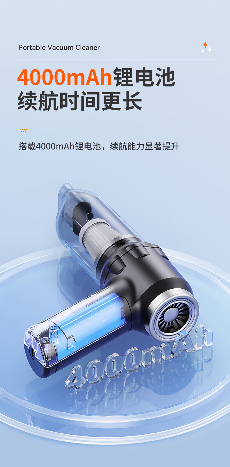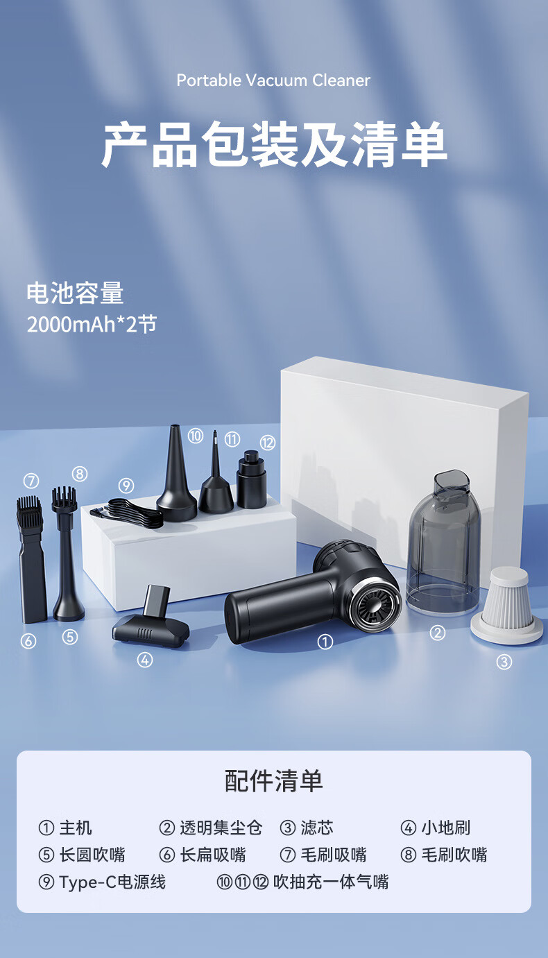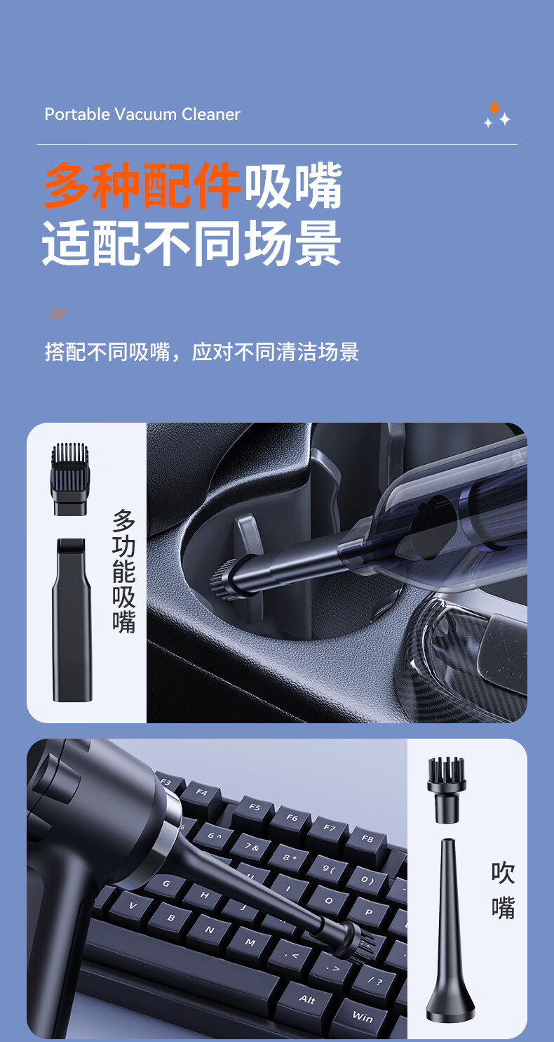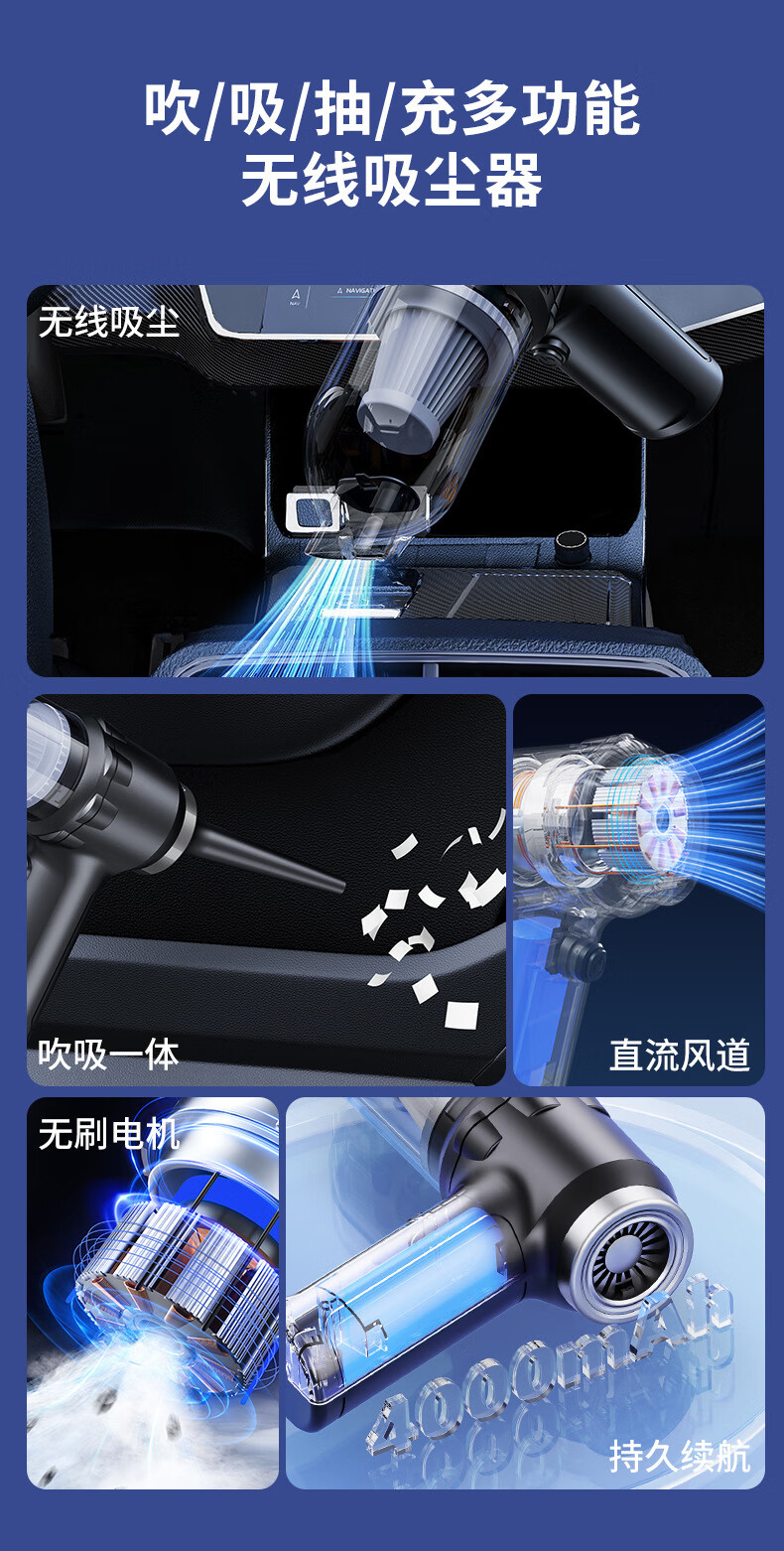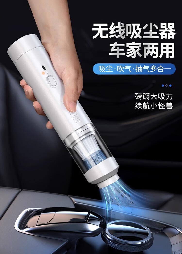Car vacuum cleaner, high suction power, wireless car handheld vacuum cleaner, in-car home mini all-in-one suction and blowing machine, desktop window cleaning and dust removal set, wireless top version - white