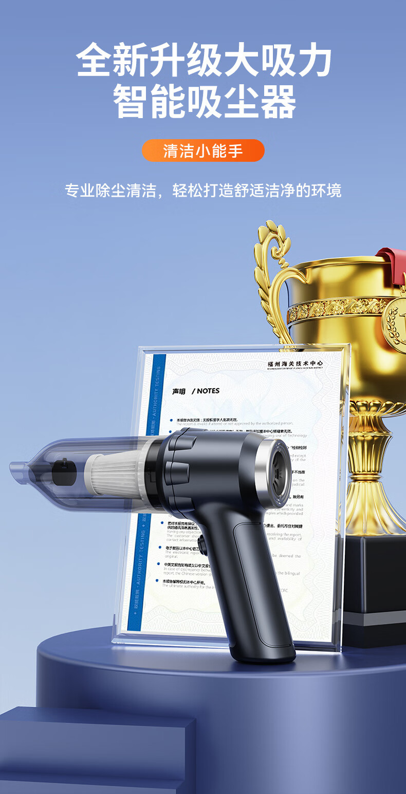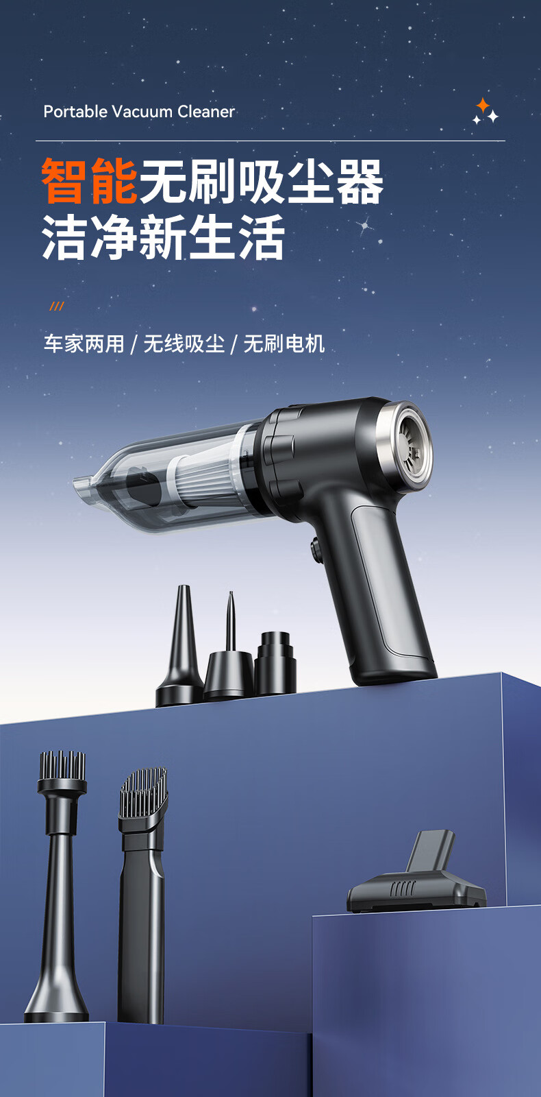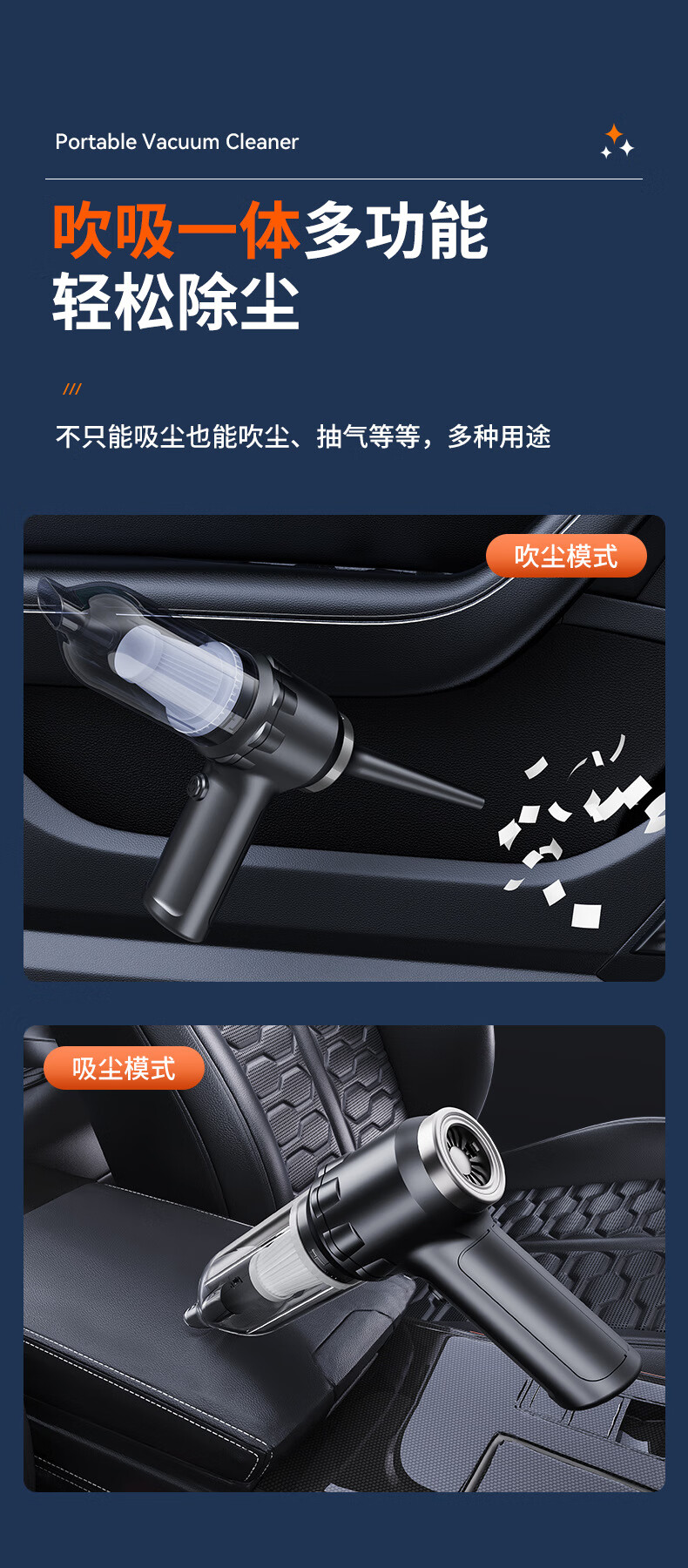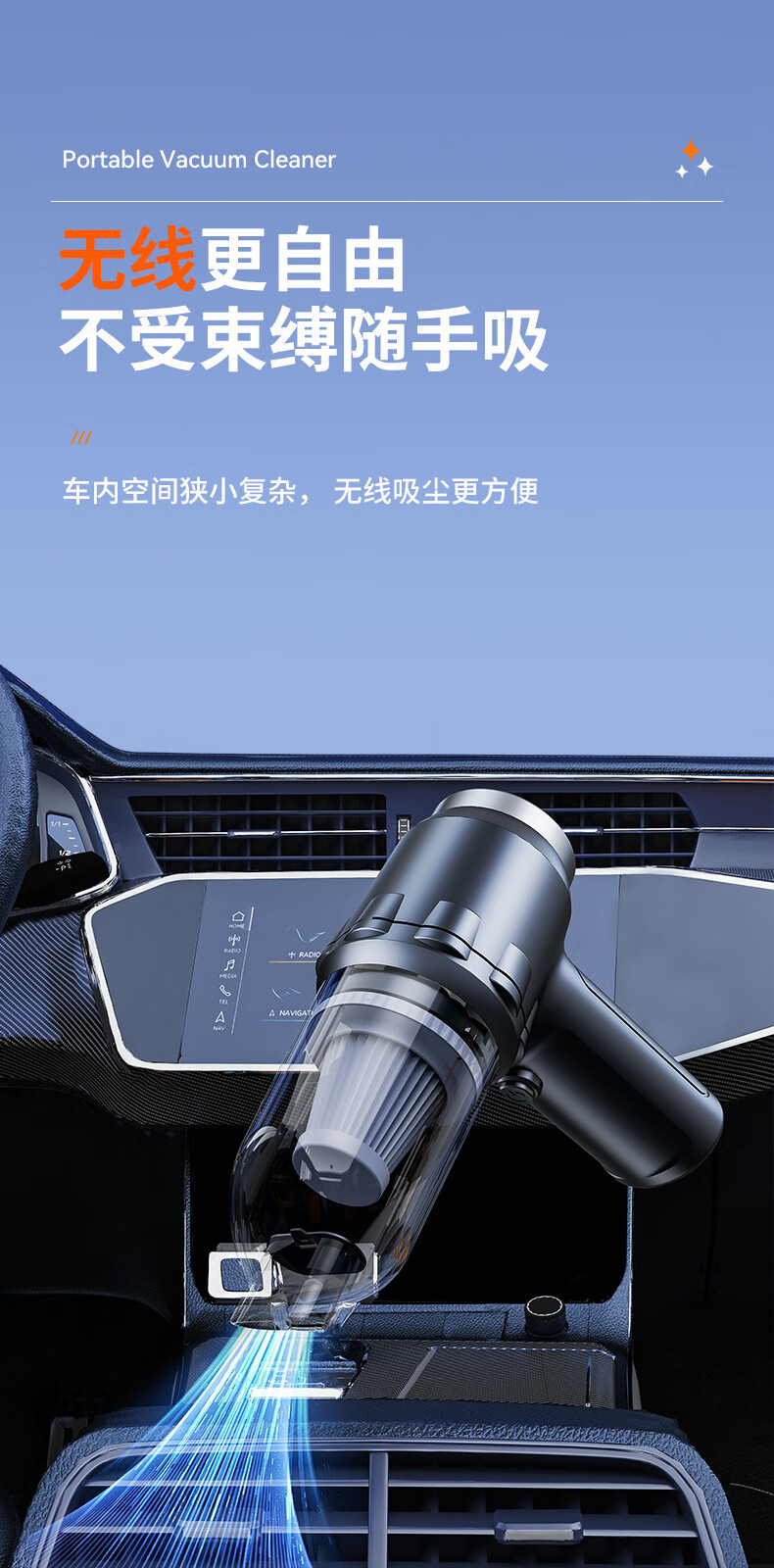 Car vacuum cleaner, high suction power, wireless car handheld vacuum cleaner, in-car home mini all-in-one suction and blowing machine, desktop window cleaning and dust removal set, wireless top version - white