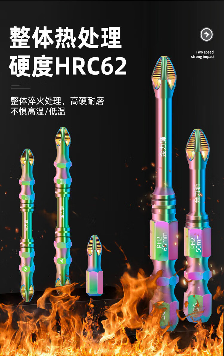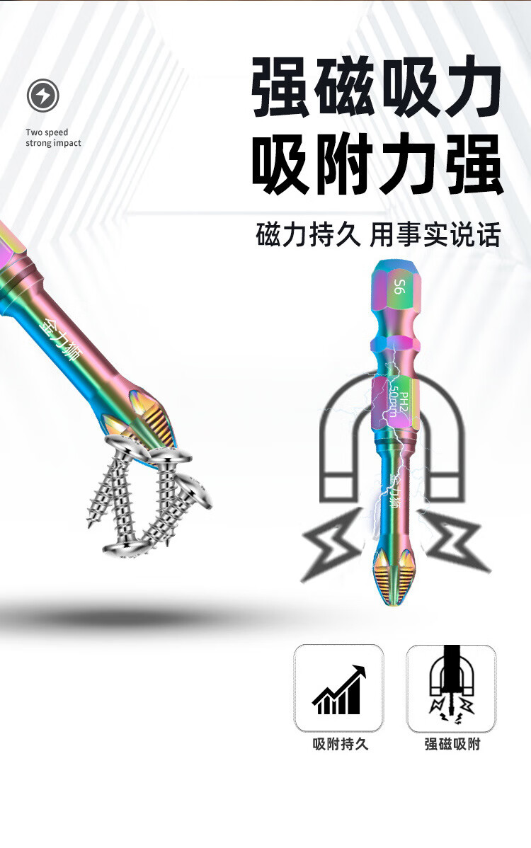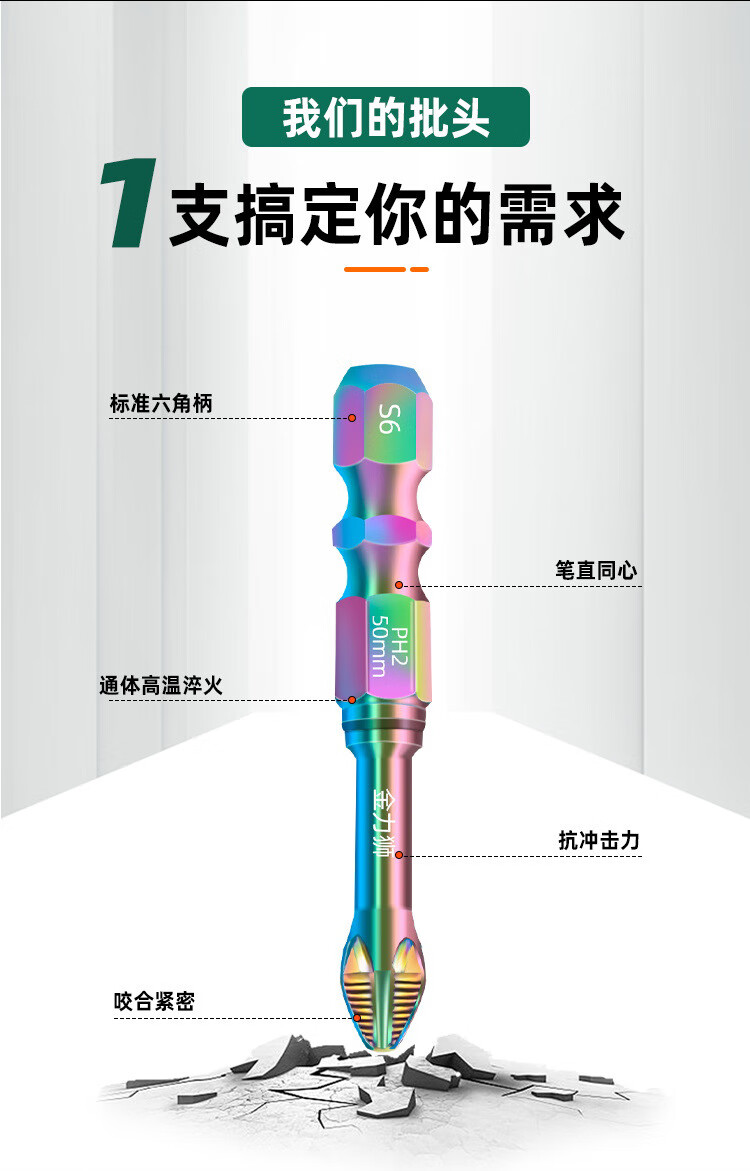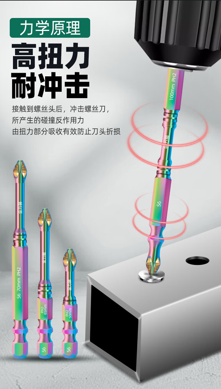 Jaynes color titanium impact anti-slip cross bit super hard strong magnetic electric screwdriver hand drill driver head super hard anti-slip color titanium anti-slip bit 50mm 1 piece