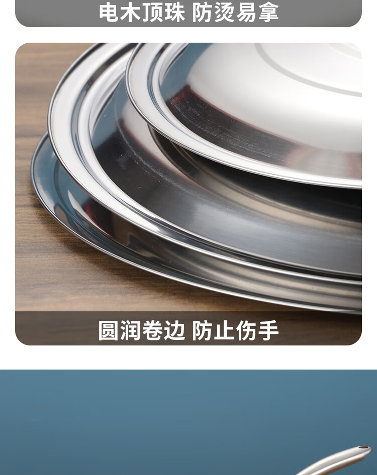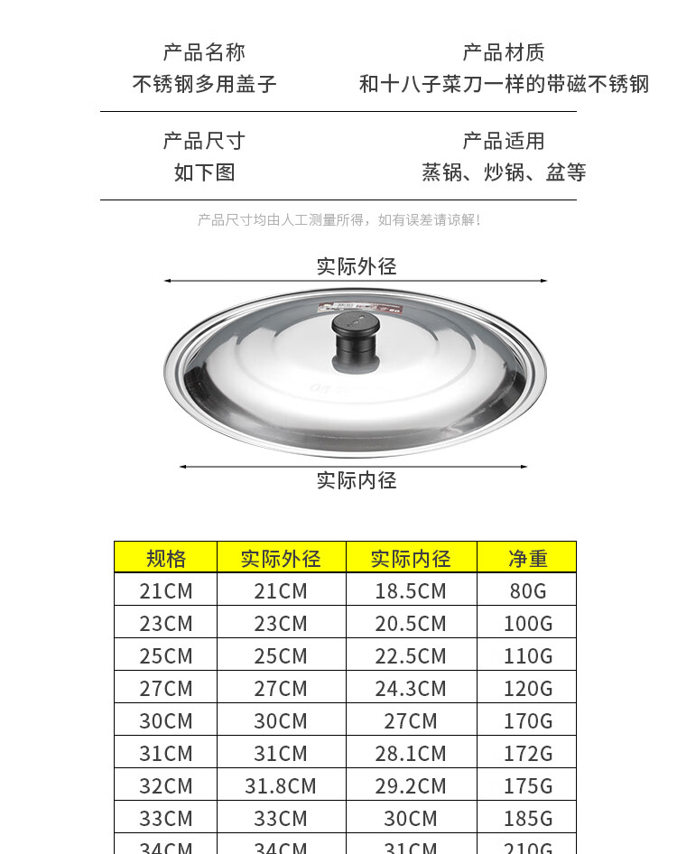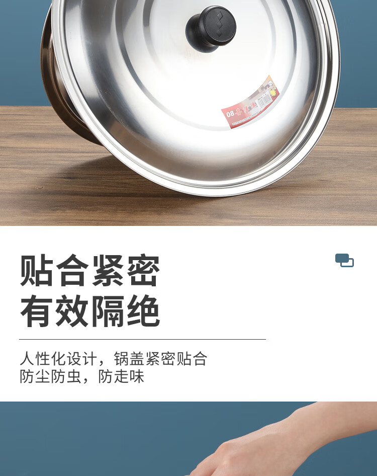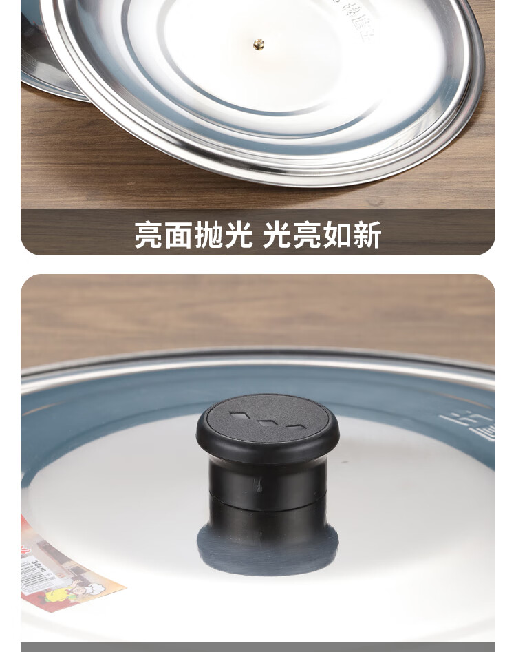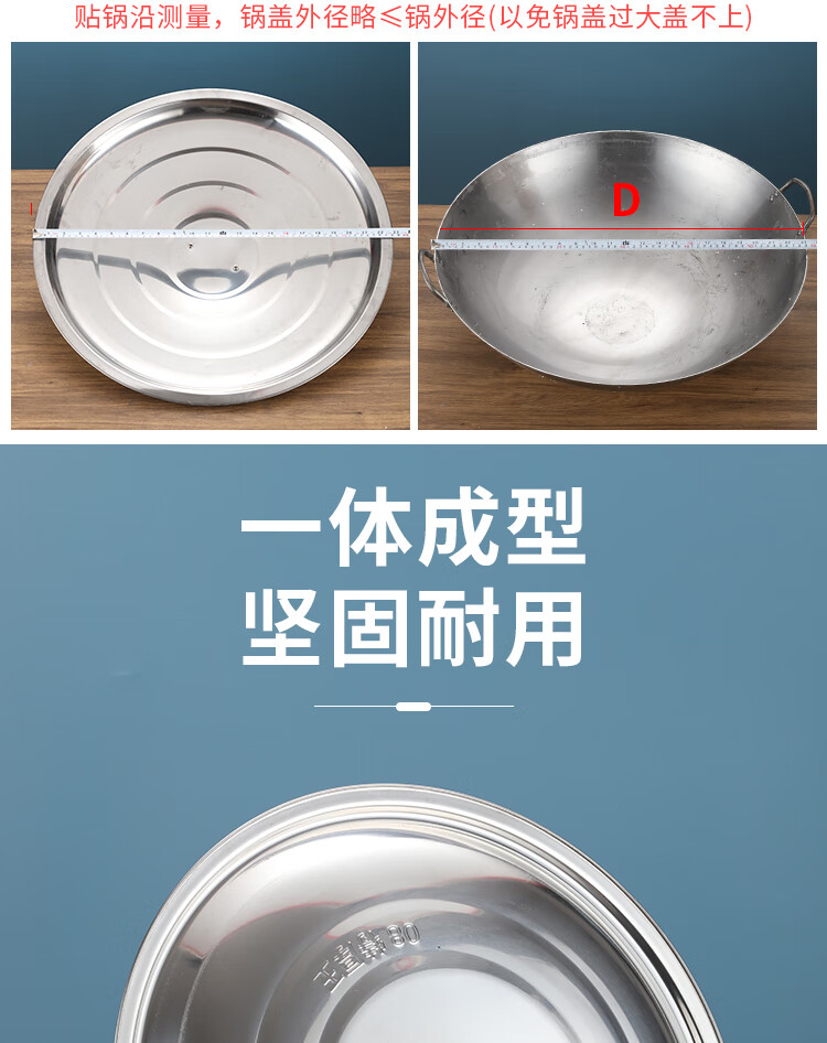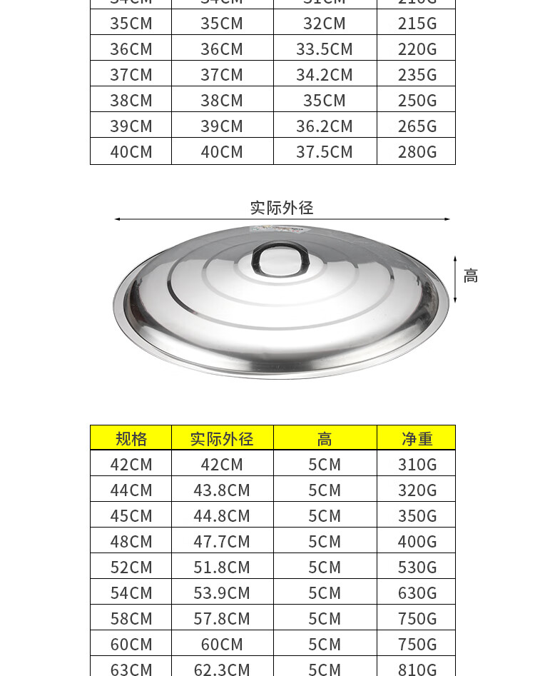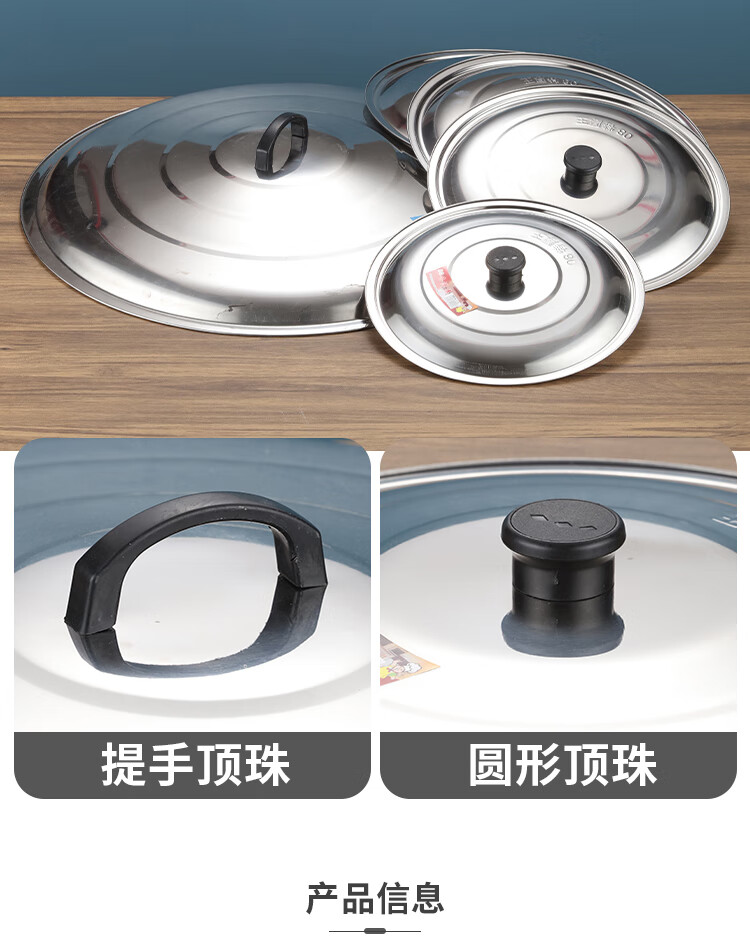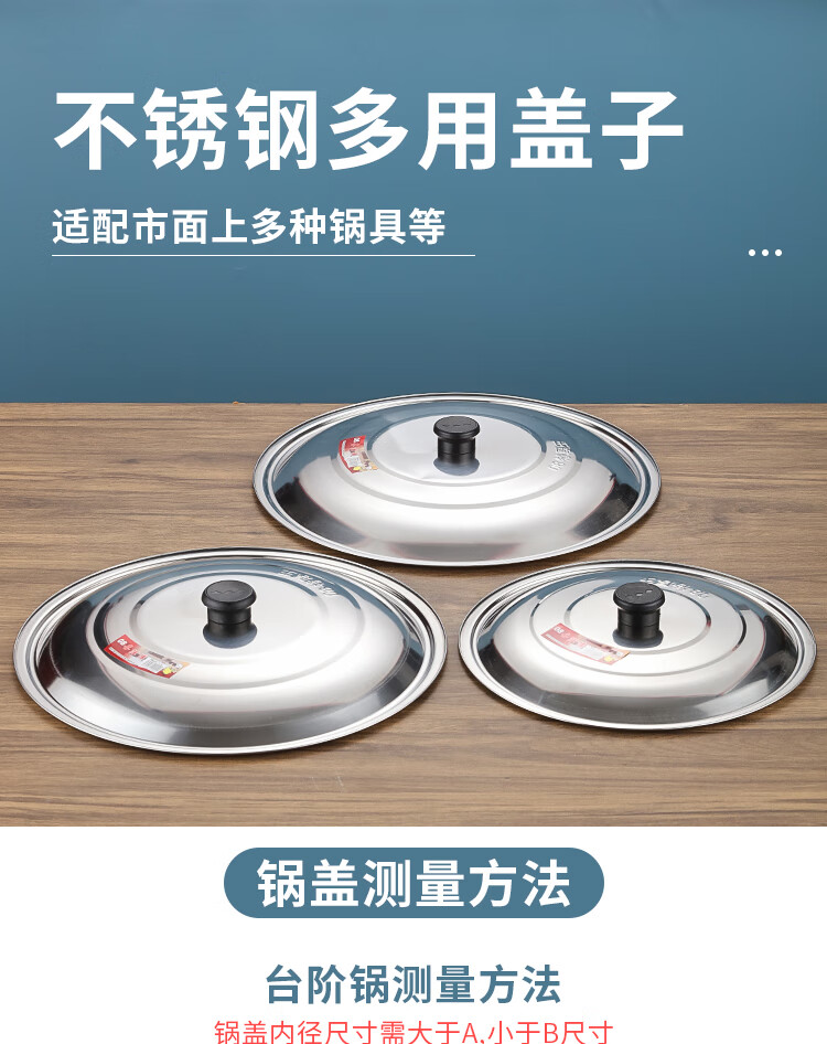 UOSO stainless steel pot lid round thickened household commercial wok old-fashioned wood stove extra large iron pot lid bucket lid outer diameter inner diameter 21.5cm 23cm