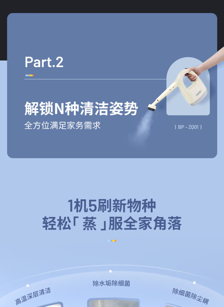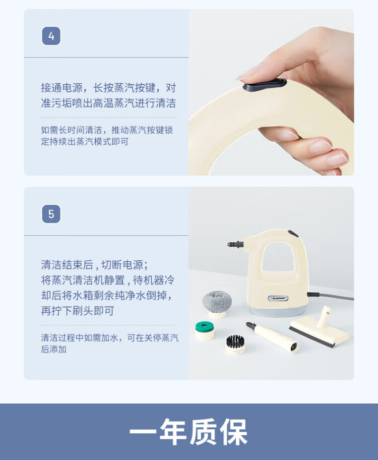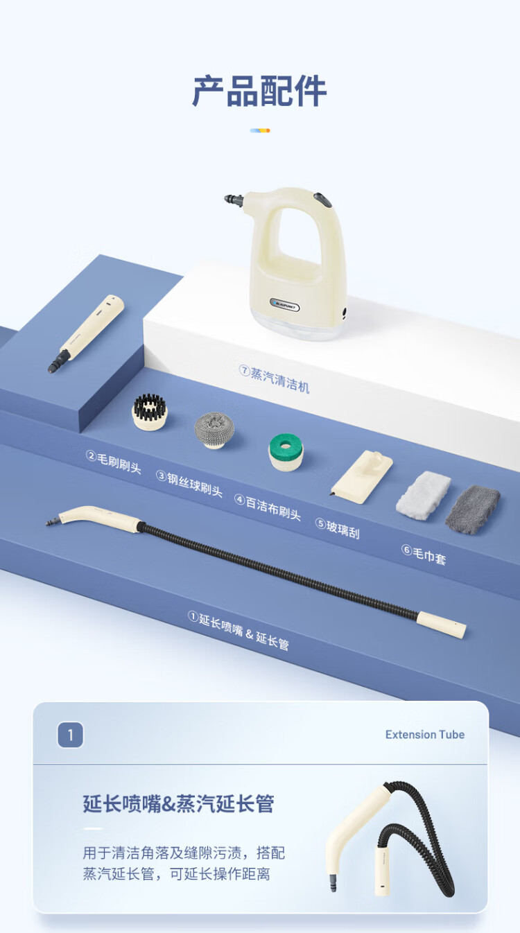 BLAUPUNKT steam cleaner, home kitchen range hood, air conditioner, fabric sterilization and mite removal, high temperature and high pressure steam cleaning machine, portable multi-functional all-in-one cleaner, high temperature steam decontamination, sterilization and mite removal, whole house cleaning 12-piece gift pack