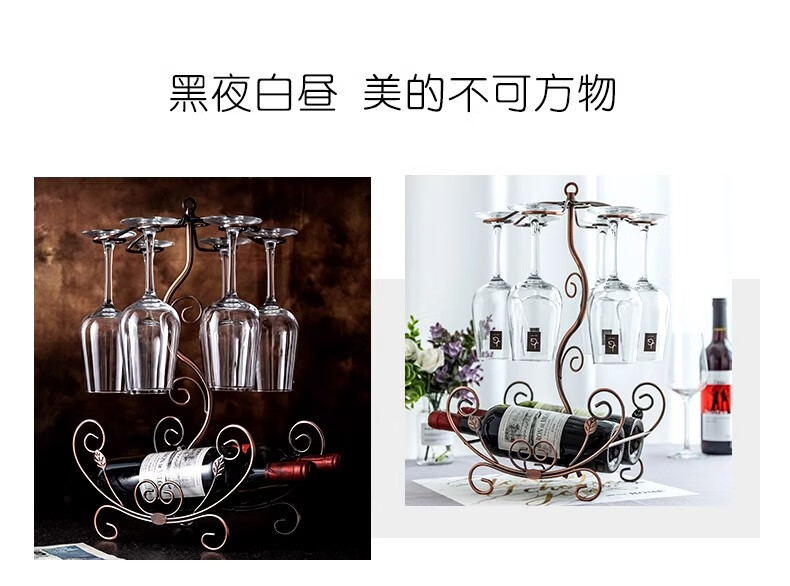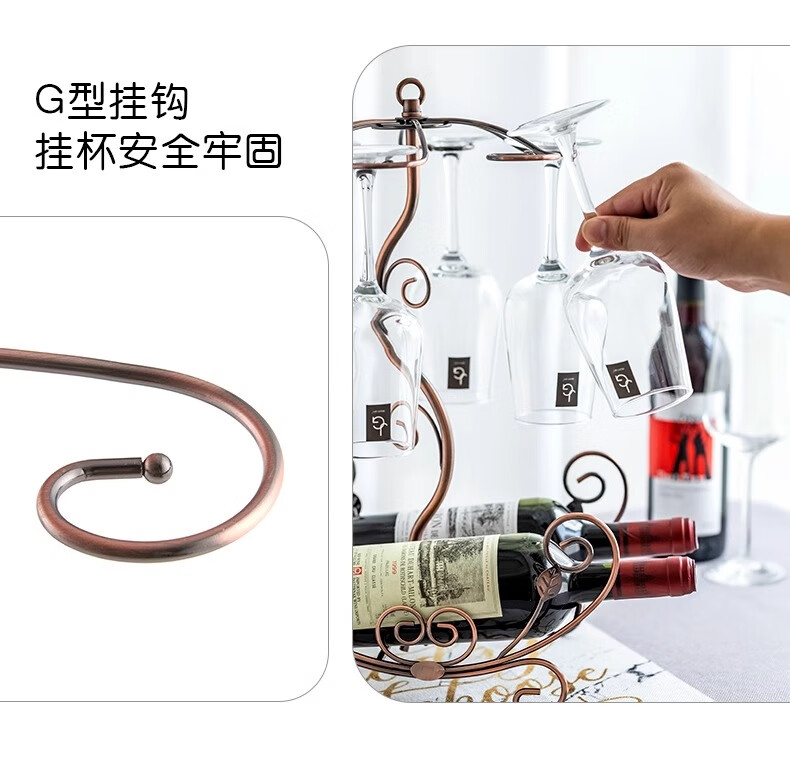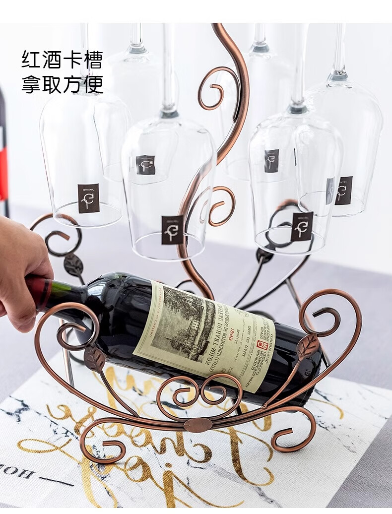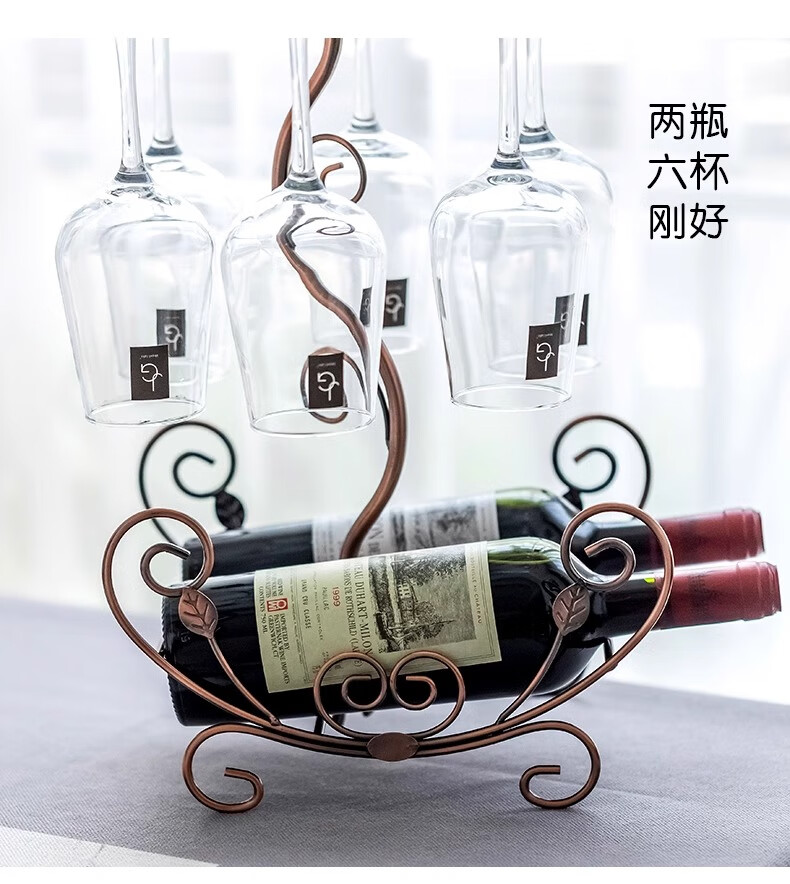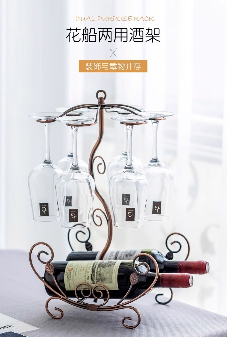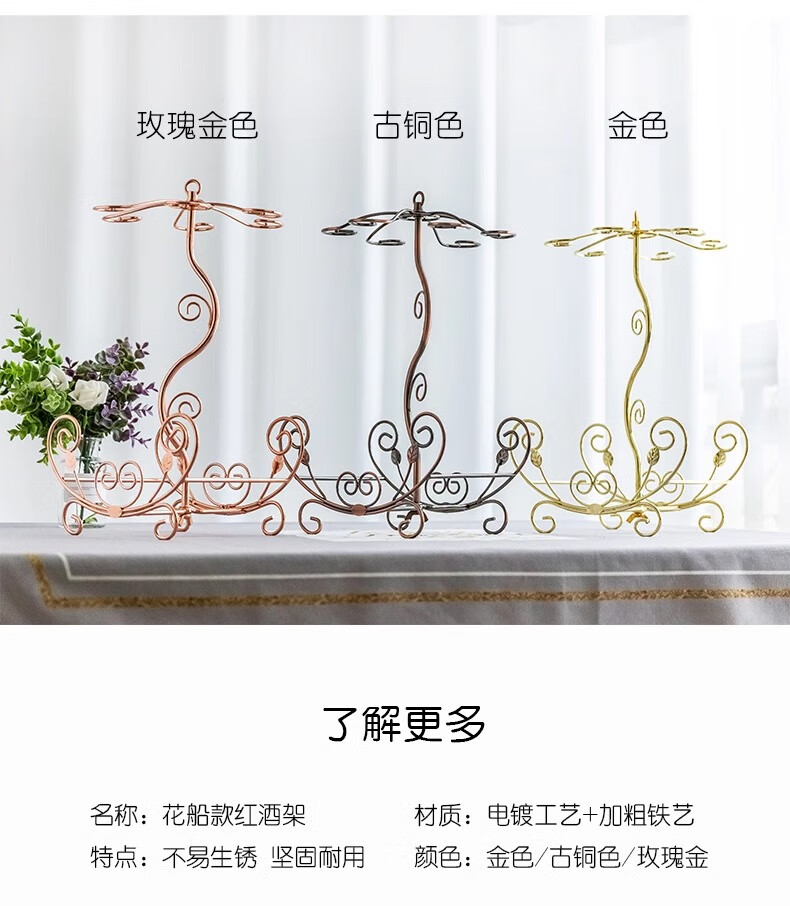 Creative red wine rack, household wine bottle rack, upside-down red wine glass rack, European-style wine cabinet ornaments, wine rack, flower boat wine rack - Tuhao Gold (40 high without cup)