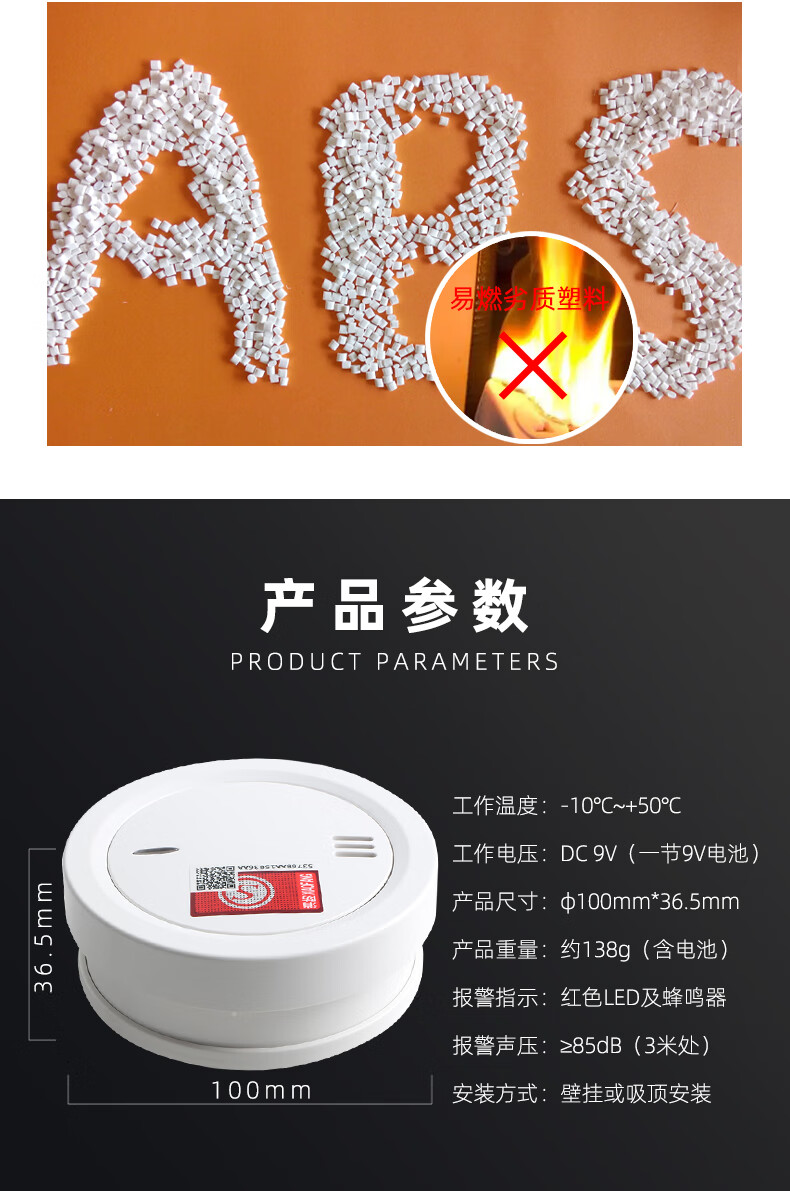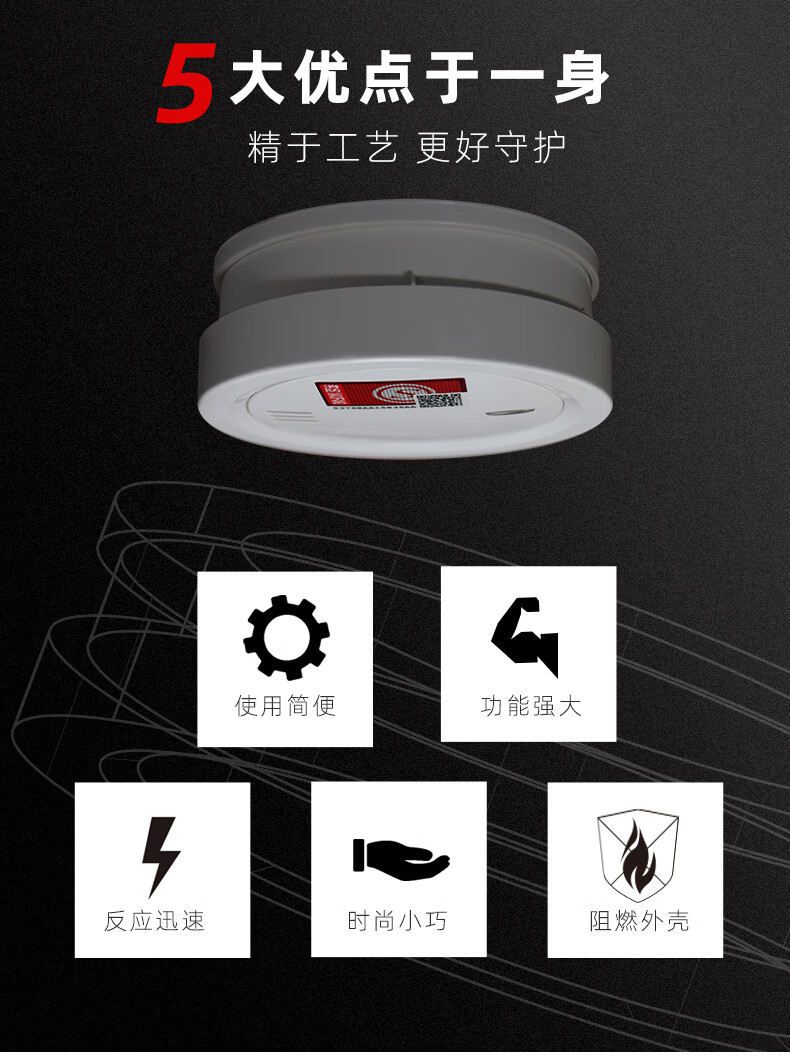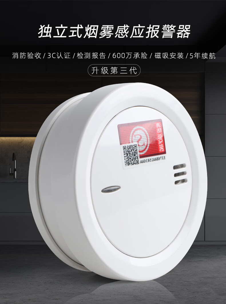 Zhongjia Woan smoke alarm household and commercial 3C certified fire and fire smoke detector 5-year standby, a must-have for families